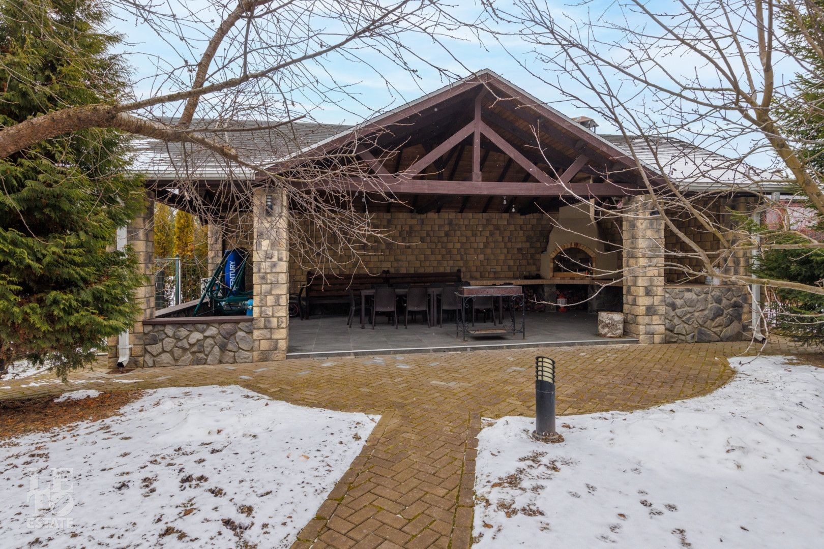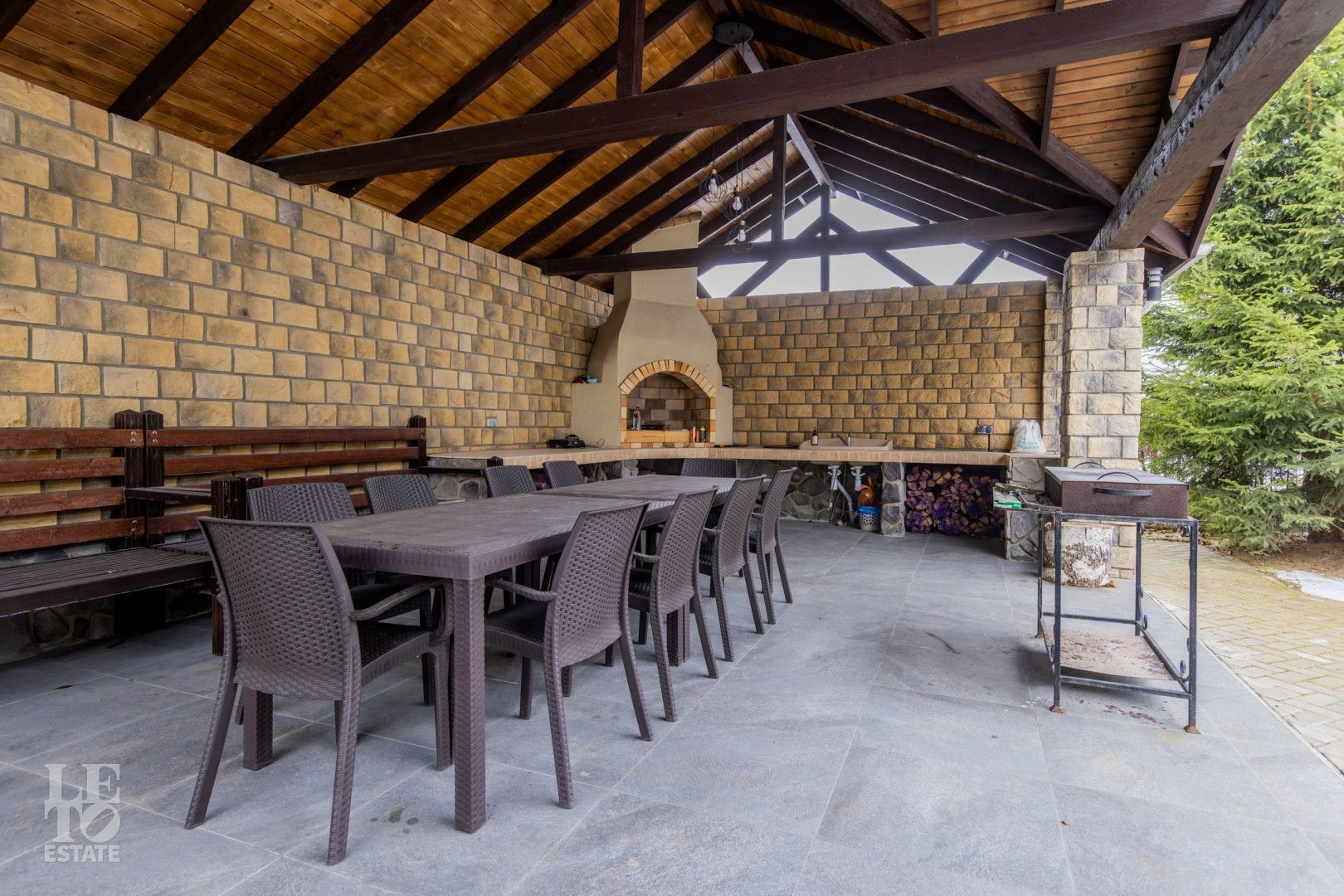 На участке также расположена каменная беседка с просторной зоной для барбекю на 25 человек.