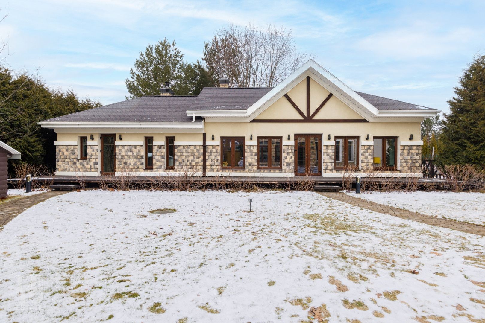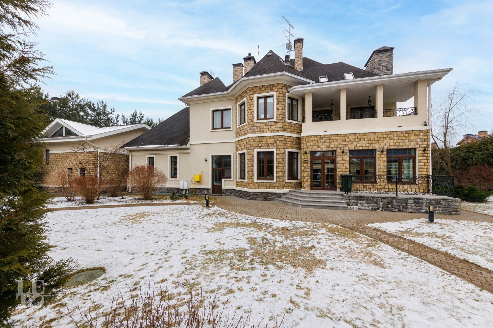 Дом площадью 700м2 + отдельно стоящий бассейн с зоной SPA площадью 120 м2, расположены на большом участке 22 сотки с живописным ландшафтным дизайном и взрослыми хвойными и плодовыми деревьями.