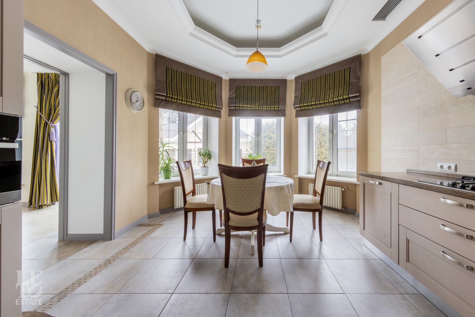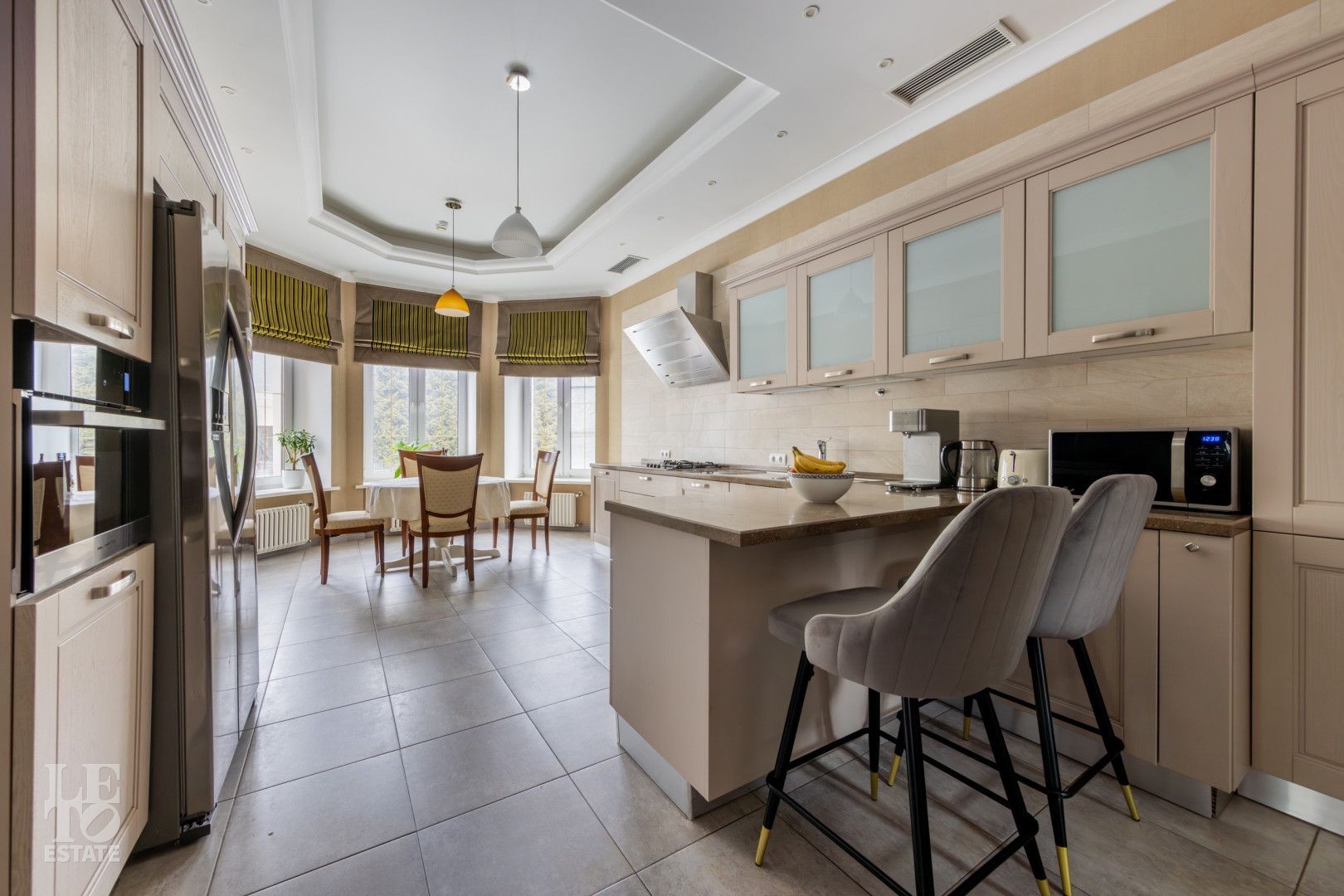 Большая площадь остекления и высокие потолки делают внутреннее пространство объемным, светлым и уютным. Функциональная планировка позволяет с комфортом разместиться большой семье и гостям. В доме установлена сантехника и бытовая техника ведущих производителей.