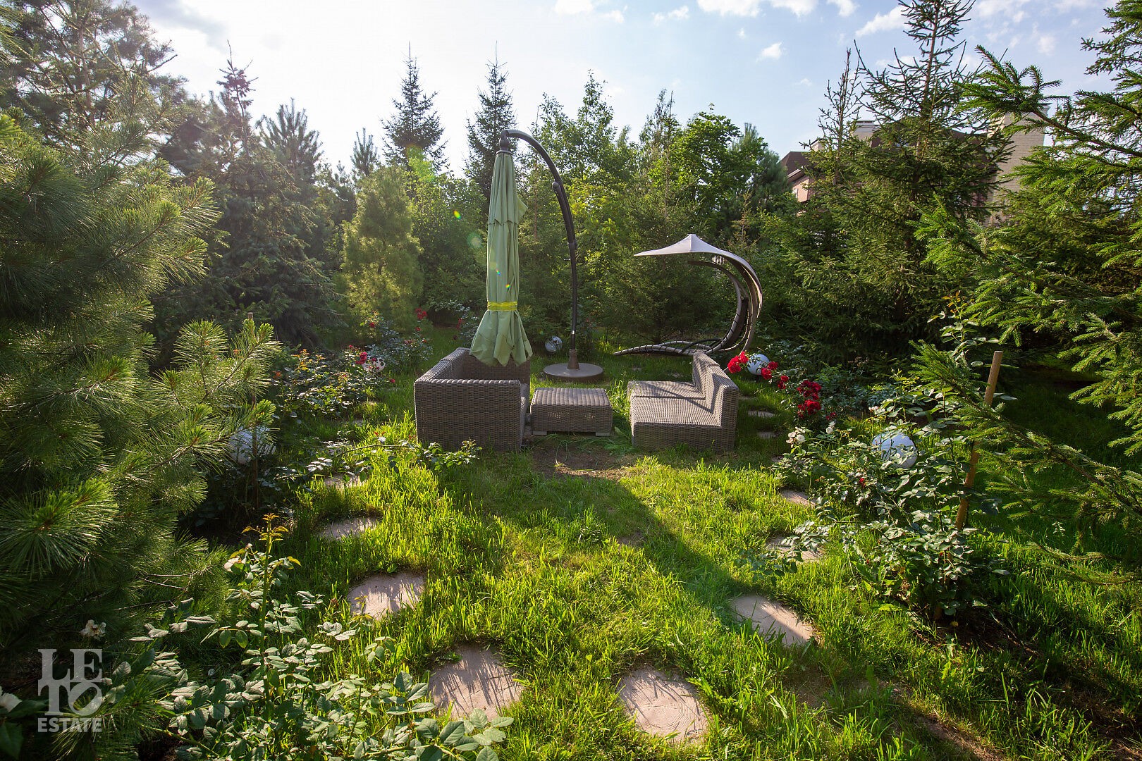 На участке 18 соток расположены баня, дом для персонала и гараж на три машины.