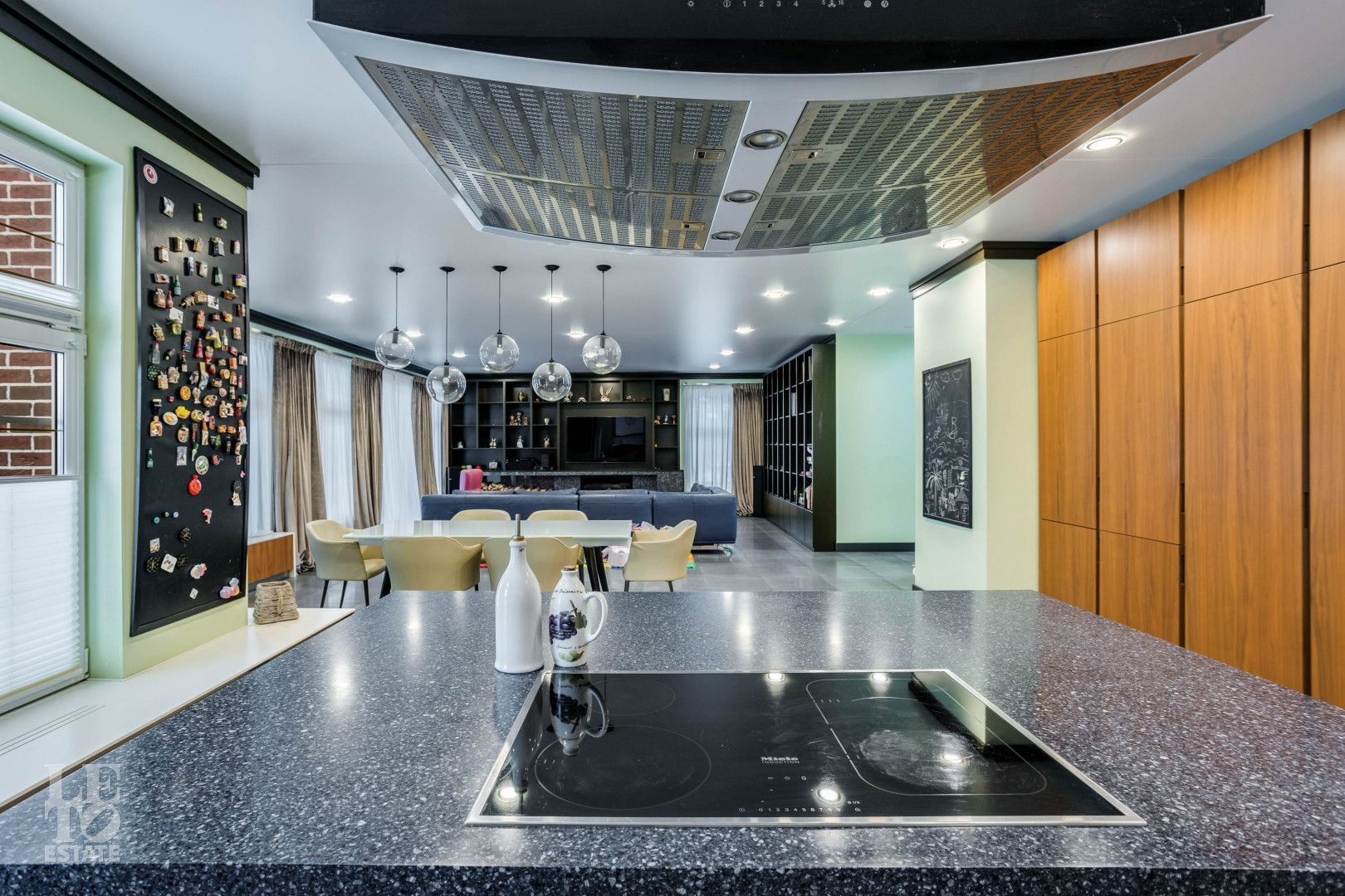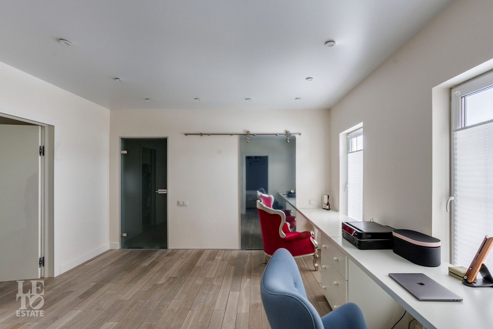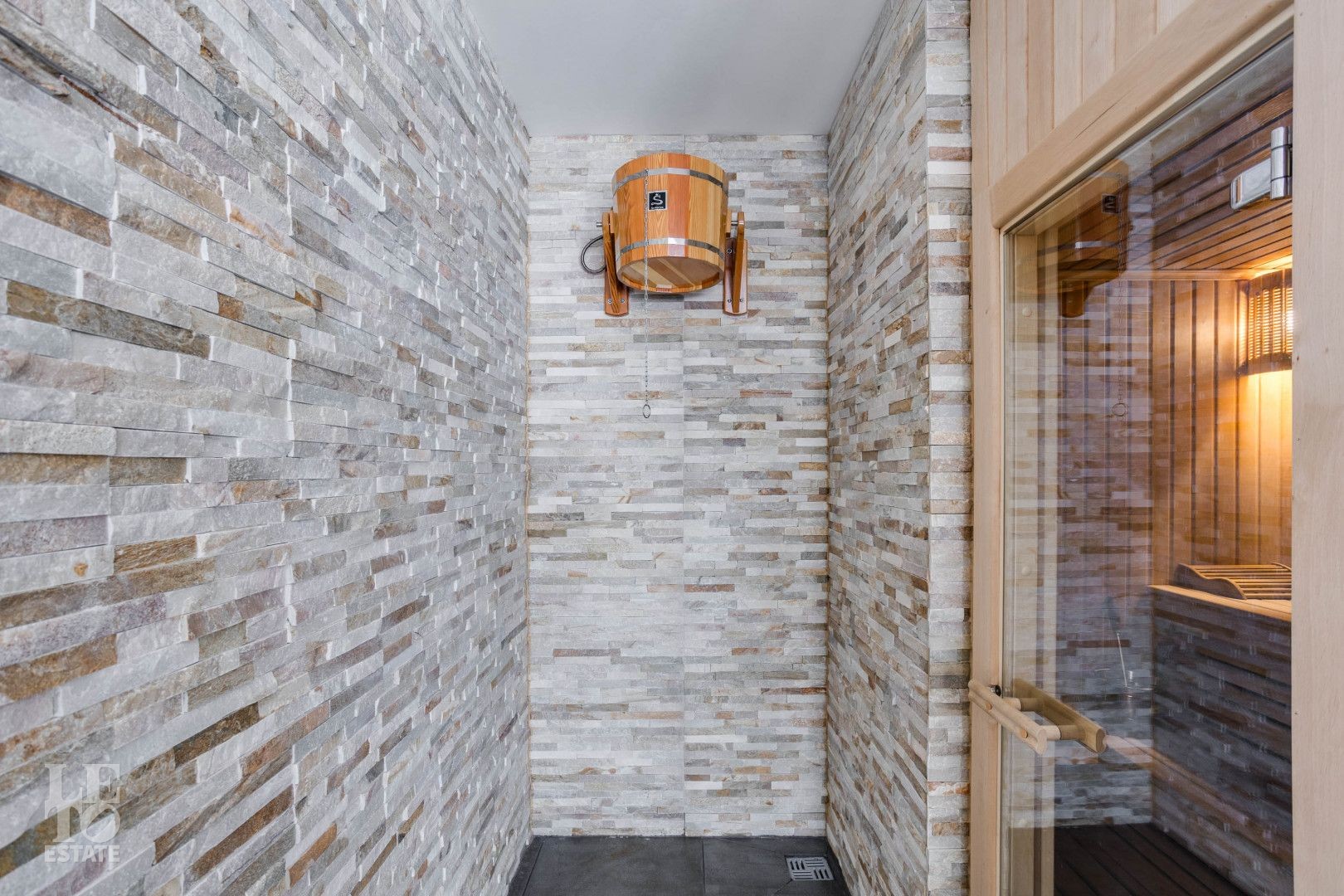 Светлая гостиная, кухня-столовая, приватные комнаты, пять санузлов и четыре спальни создают атмосферу уюта и продуманного ритма жизни. SPA-комплекс позволяет устраивать личные ритуалы отдыха: здесь можно расслабиться после насыщенного дня, восстановить силы и провести время с семьёй. Терраса открывает вид на участок и становится естественным продолжением жилого пространства.