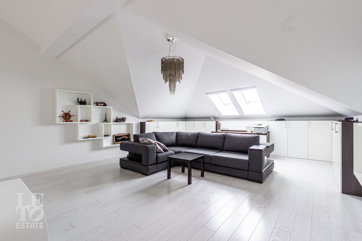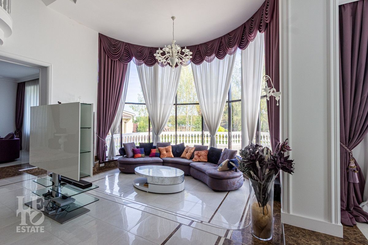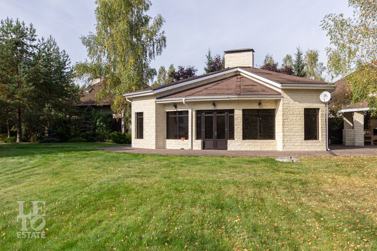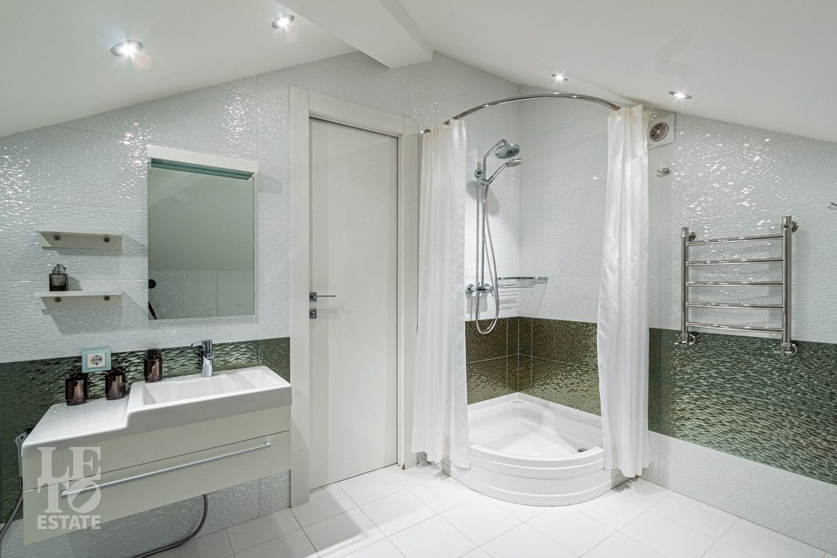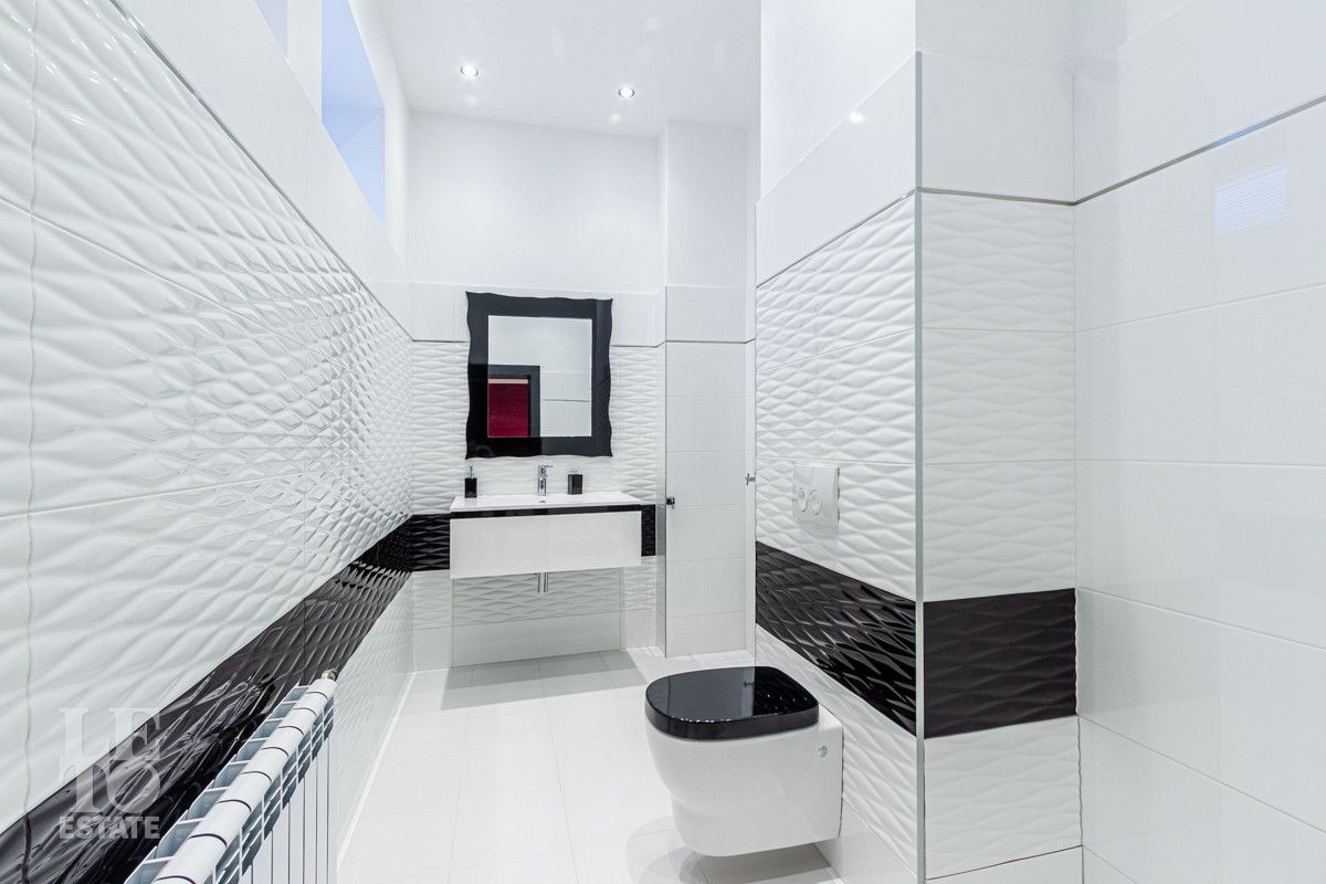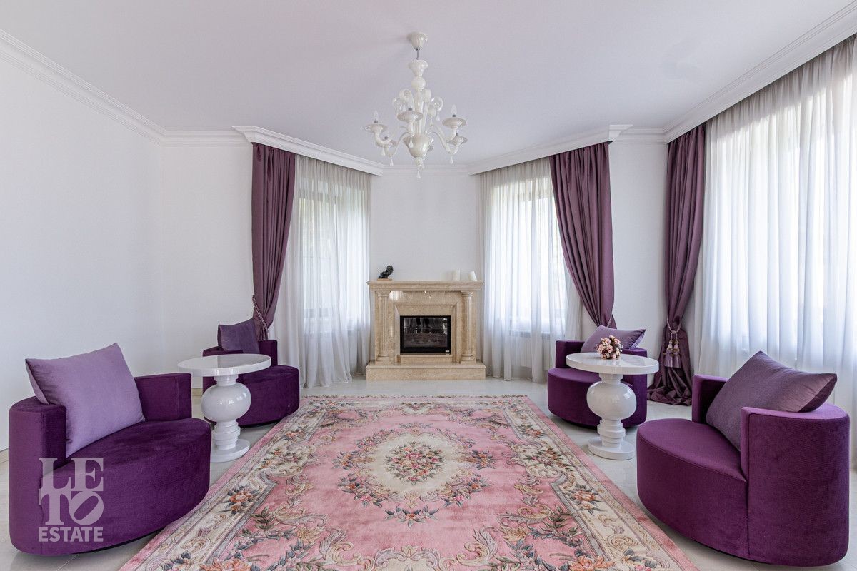 Основной дом (568.4 кв.м.) — это просторное и светлое родовое гнездо для большой семьи. Он выполнен из кирпича в классическом стиле с панорамным остеклением, наполняющим интерьеры светом, и оформлен в элегантной светлой палитре. Ключевые фишки: второй свет в гостиной, создающий ощущение простора, теплые полы для комфорта в любое время года. Сюда заведены все коммуникации (газ, электричество, септик, скважина), что гарантирует автономность и отсутствие хлопот.