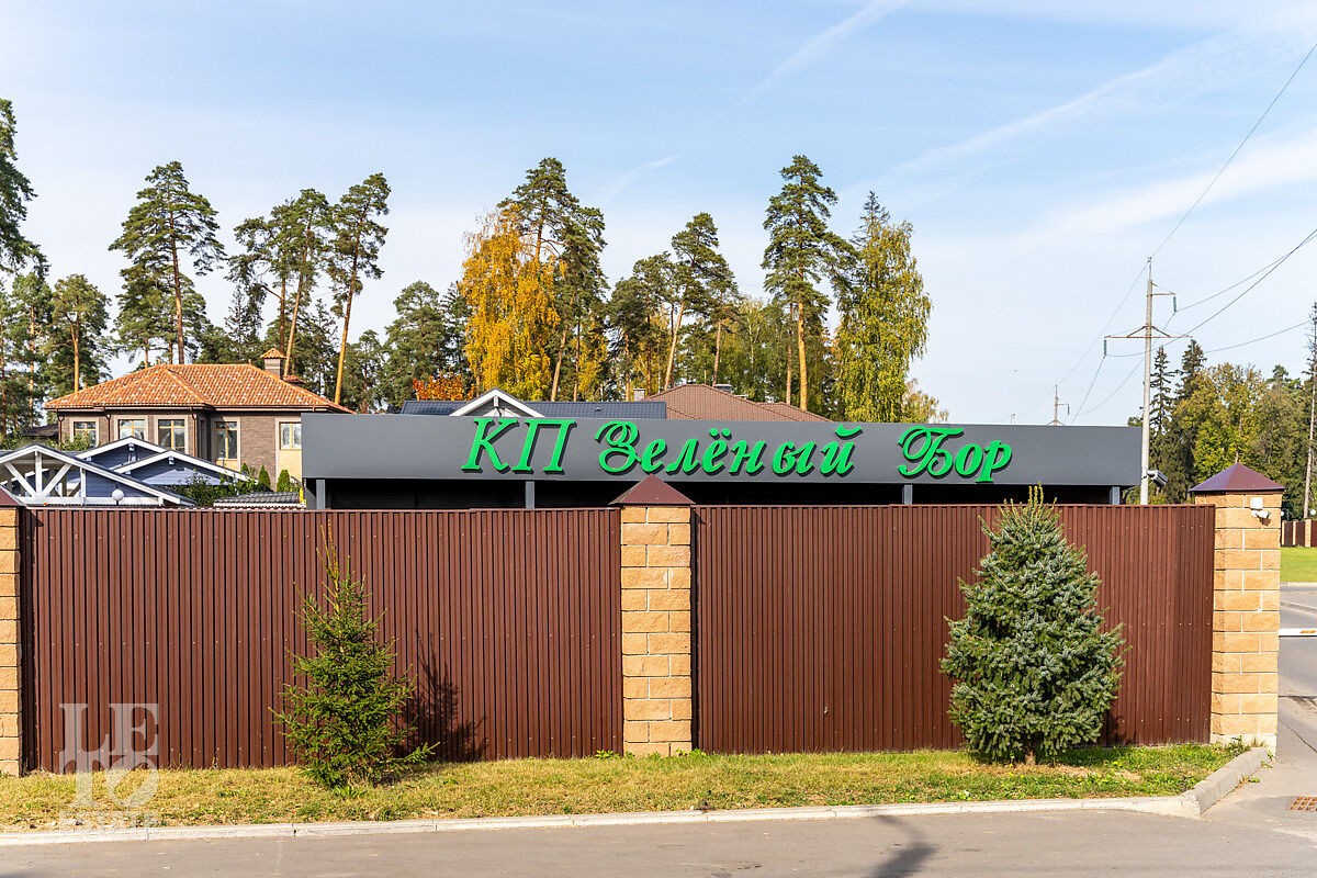 КП Зеленый Бор обнесен сплошным забором. Профессиональная охрана регулярно совершает обходы и следит за порядком на территории. При въезде стоит КПП, поэтому попасть в поселок можно только при наличии пропуска.