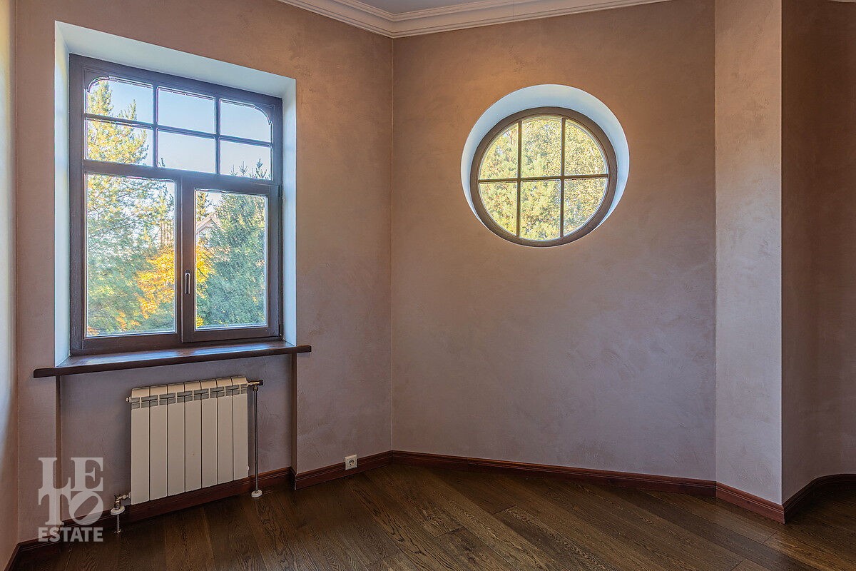 Дом кирпичный, построен в 2010 году. Произведена внутренняя отделка премиальными материалами (дерево, кованное железо, керамическая плитка). Установлены деревянные стеклопакеты. В гостиной установлен дровяной камин. На участке есть баня с комнатой отдыха. В доме достаточно комнат для большой семьи, в каждой есть индивидуальный санузел.