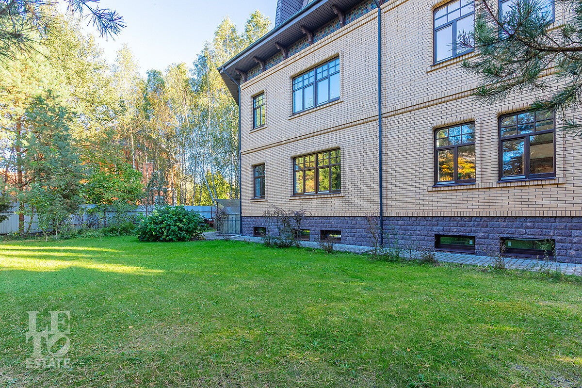 Участок ровный, площадью 6 соток, дополнительные 5 соток в аренде. Выполнены работы по благоустройству (вымощены дорожки, уложен газон, есть дренаж по периметру дома). На участке есть баня с комнатой отдыха.