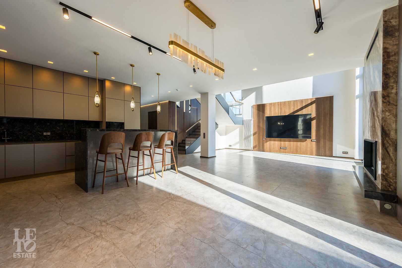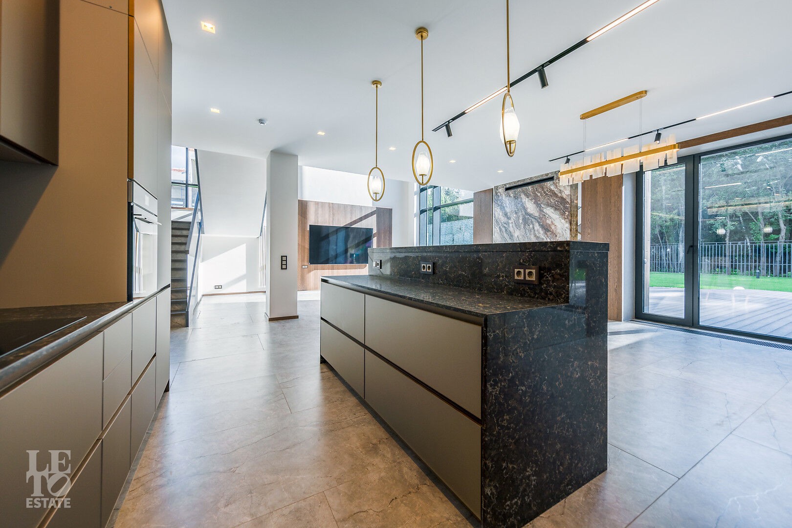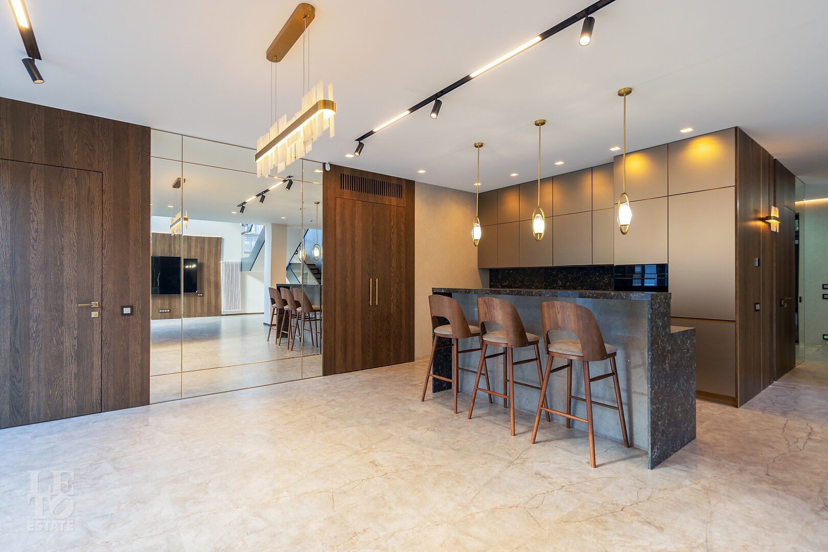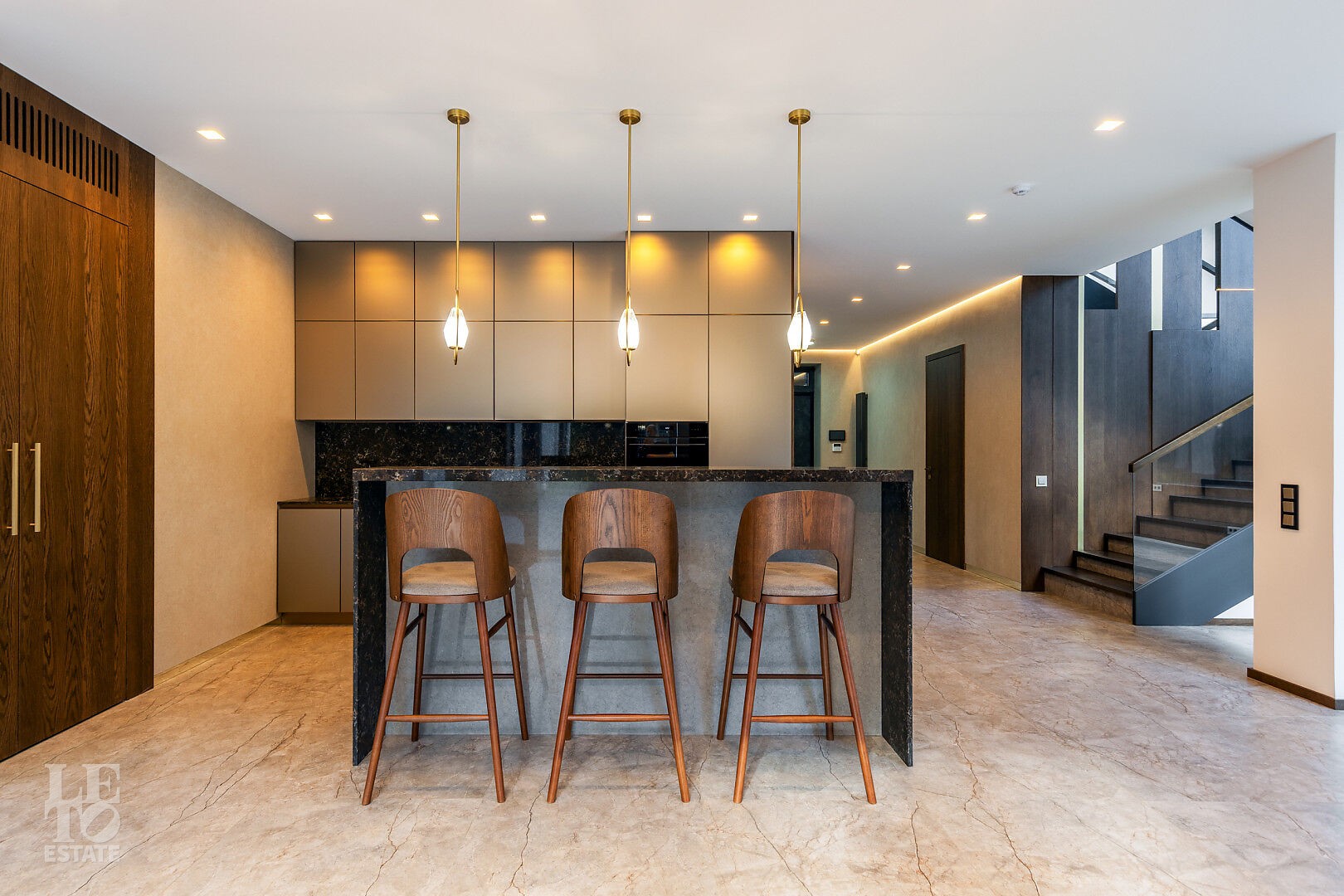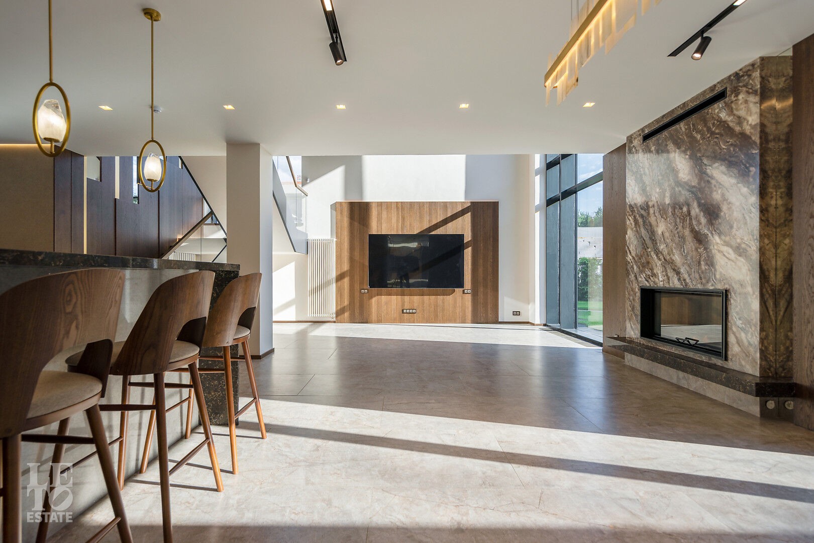 В доме имеется спа-зона, включающая в себя сауну и бассейн 7*4 с противотоком и подсветкой. Бассейн оснащен инновационной системой очистки NECON. Кристально чистая вода без хлора и химических запахов обеспечивает максимальную безопасность для всей семьи, а технология ионов