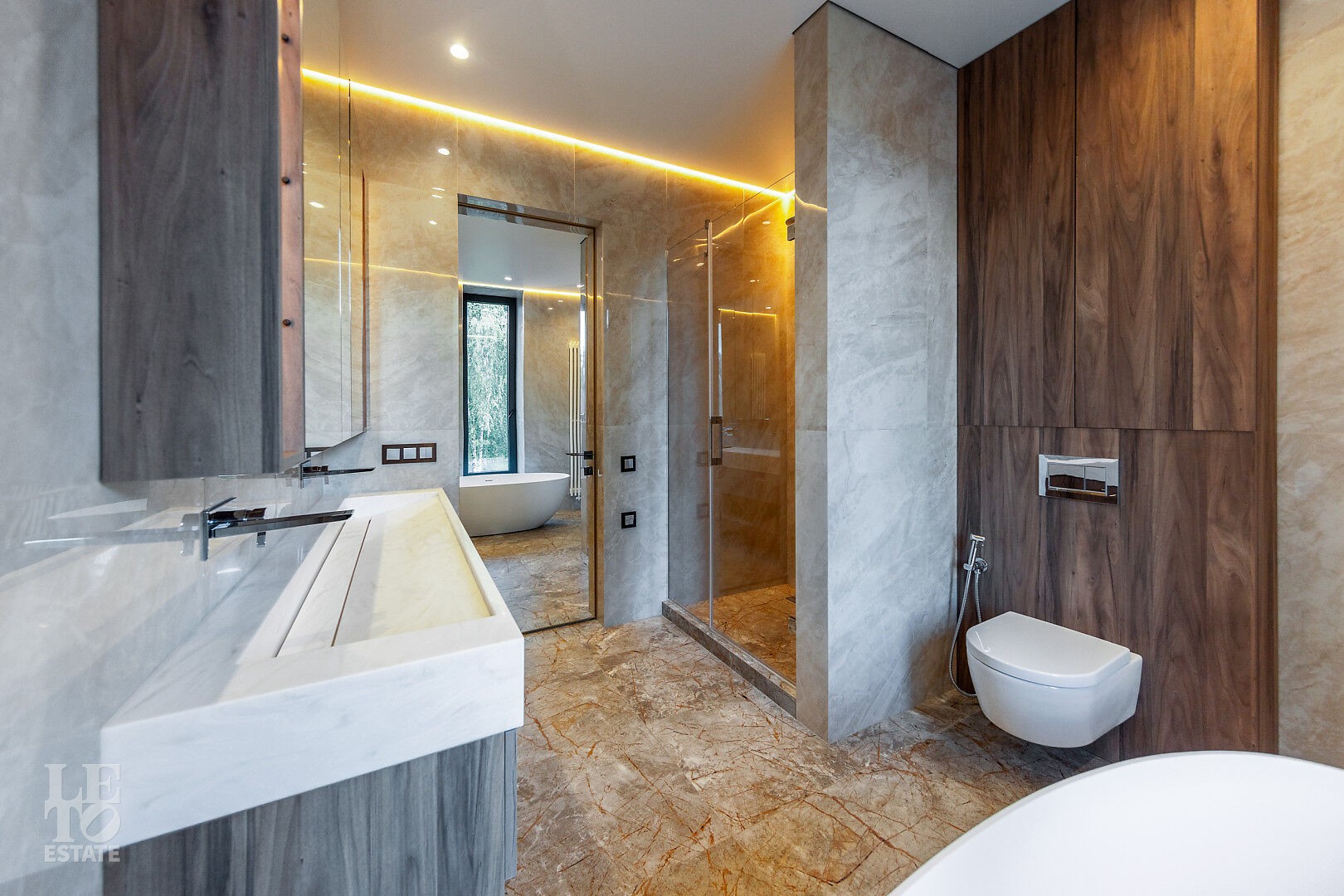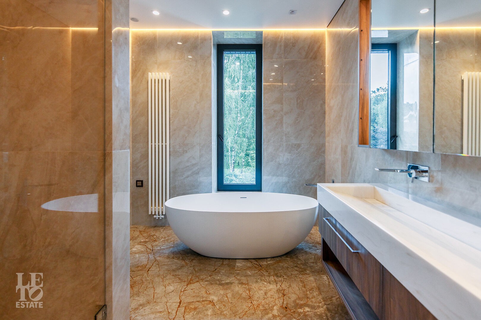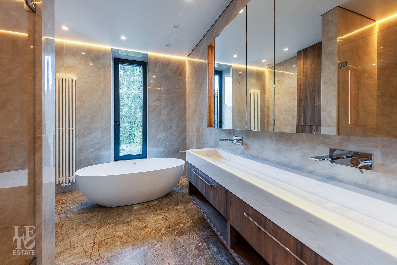 В доме установлена сантехника из Италии и Испании премиальных марок. Бытовая техника SMEG и Liebherr.