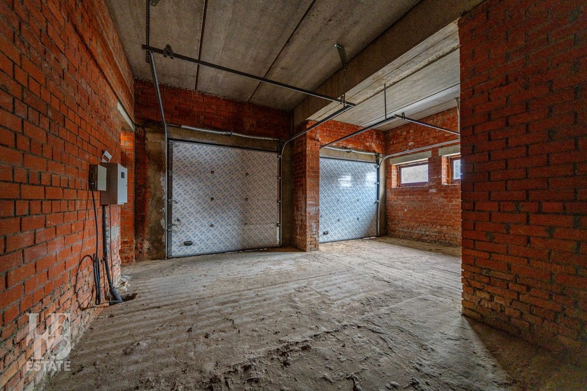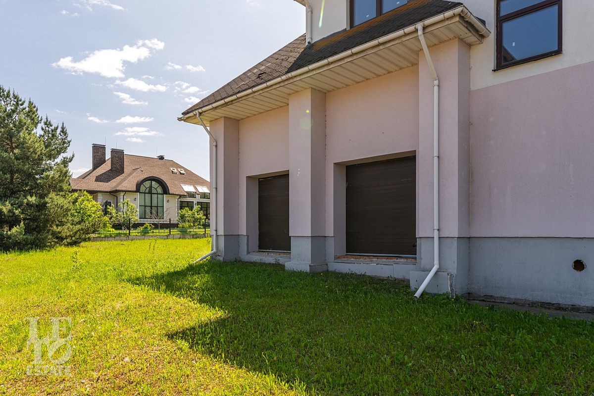 Все центральные коммуникации: газ и электричество проходят по границе участка, вода и канализация заведены на цокольный этаж. К дому пристроен гараж для автомобилей.