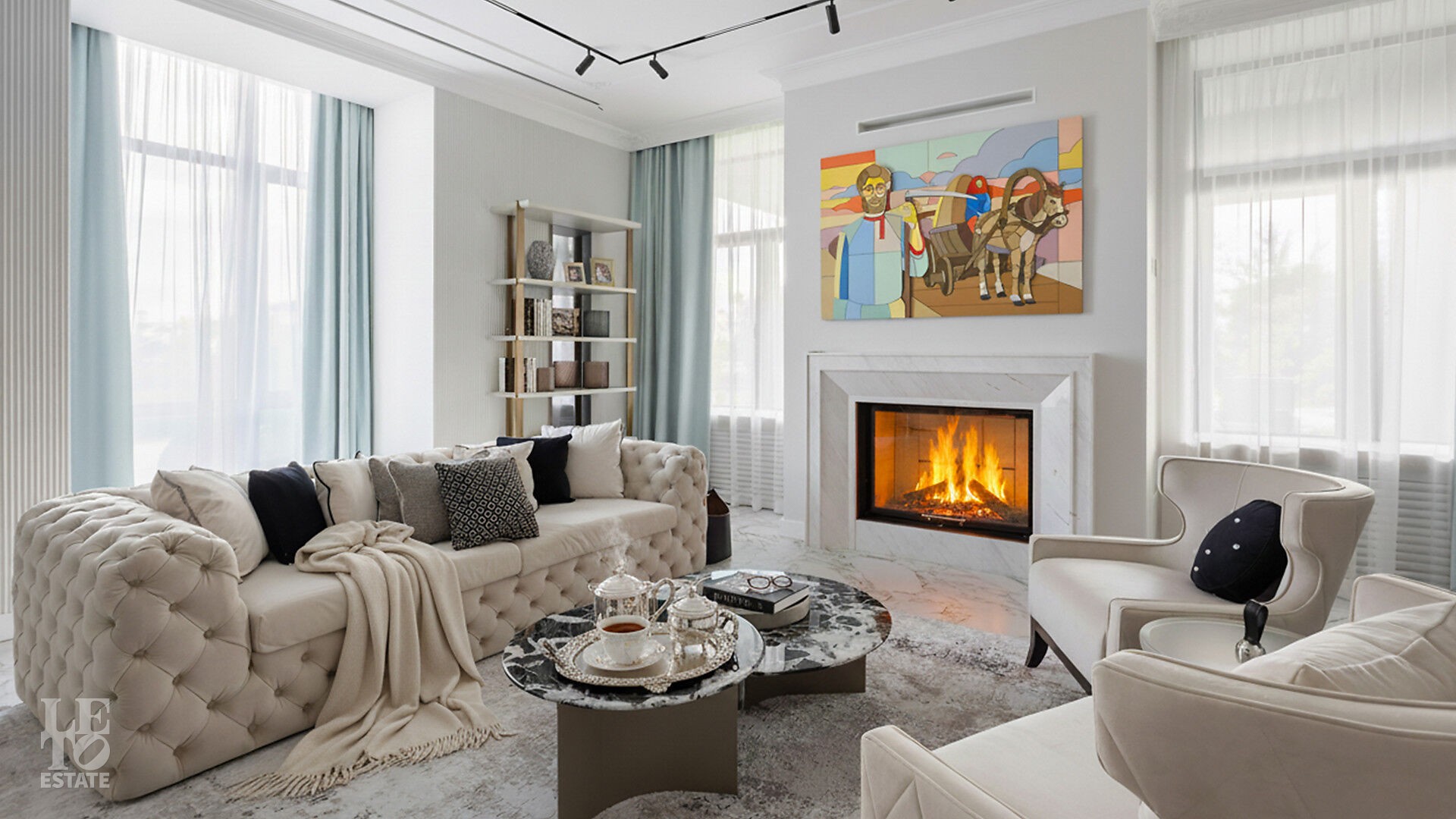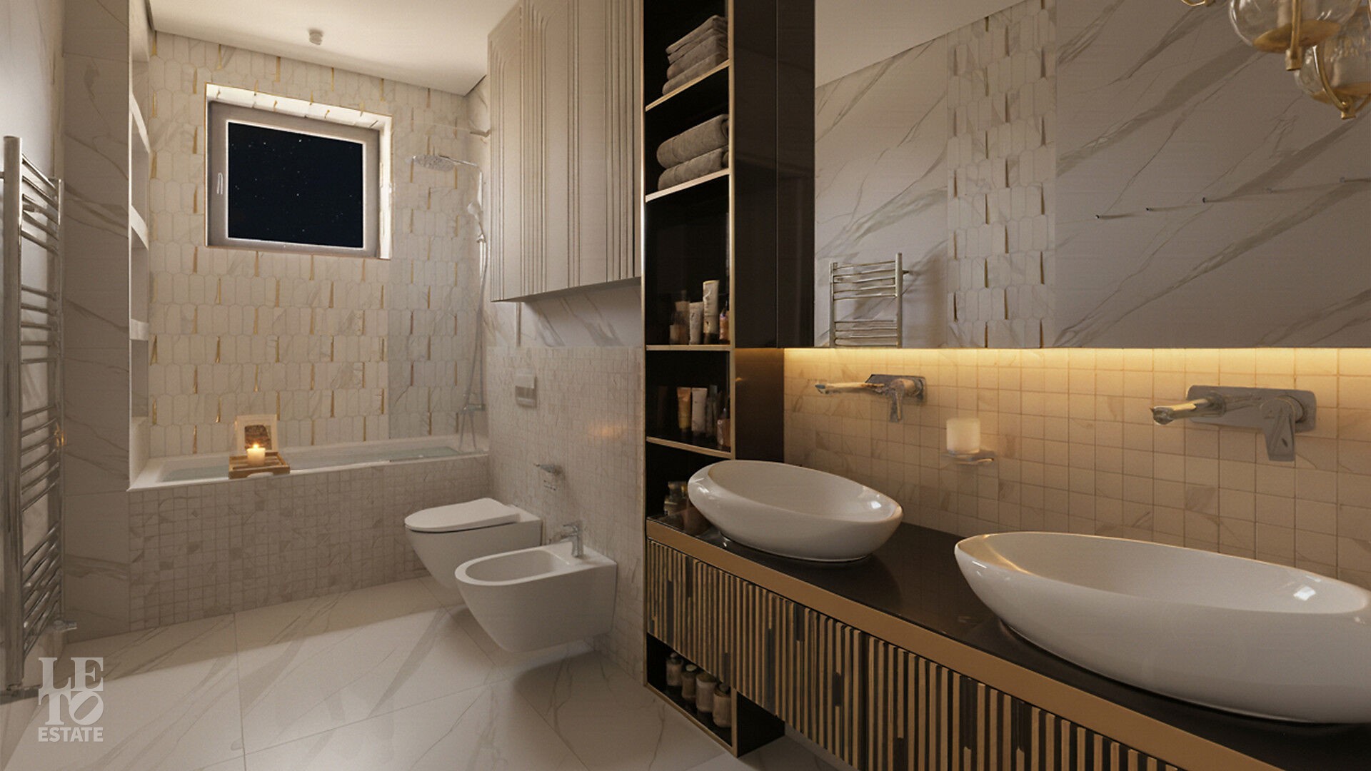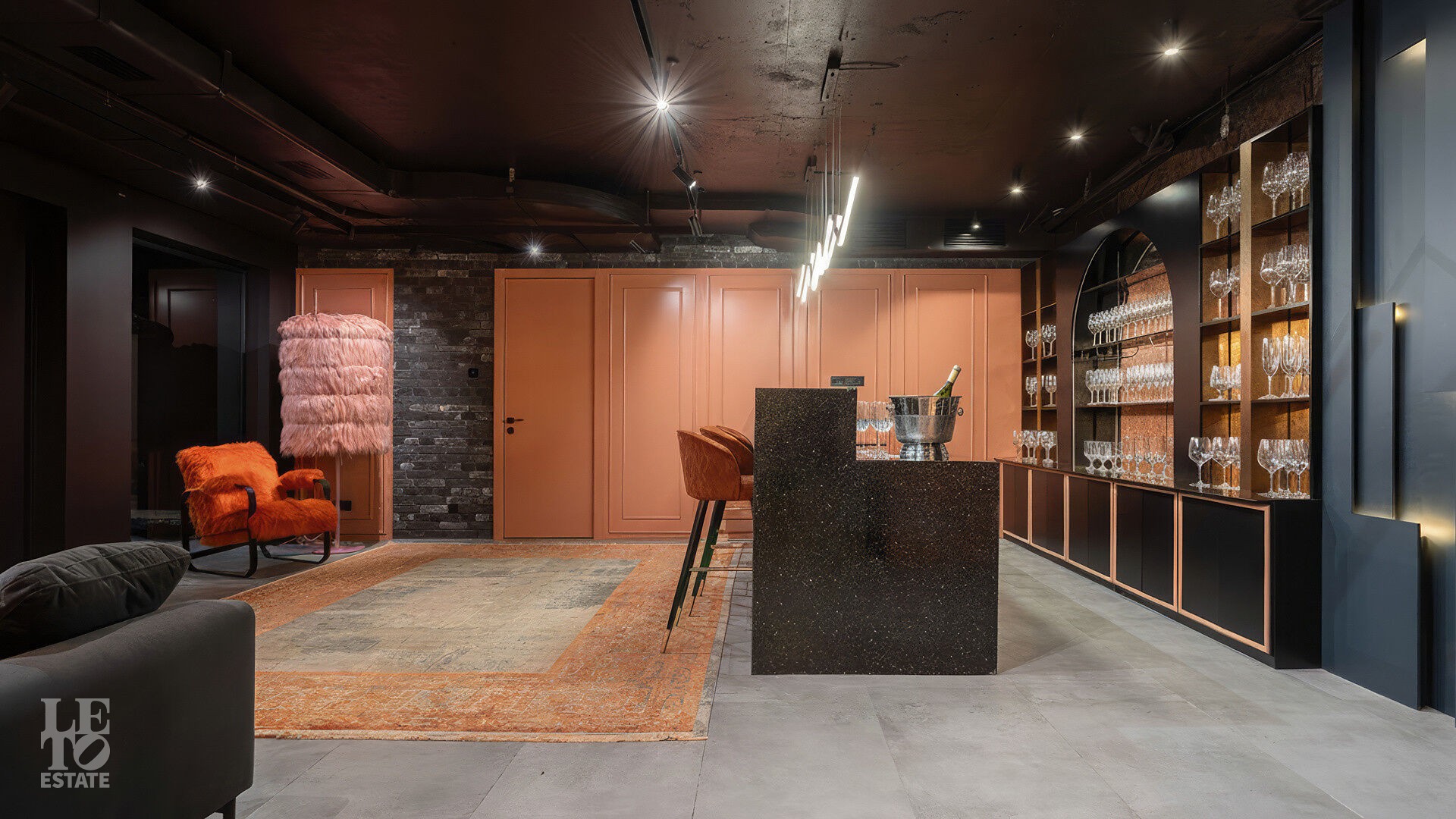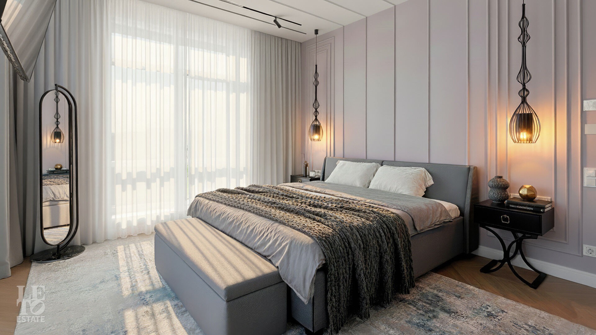 Интерьеры, выдержанные преимущественно в светлых тонах, отделаны с использованием керамогранита Atlas Concorde и инженерной доски Greenline 402, выложенной французской ёлочкой, а стены украшены изящными молдингами.