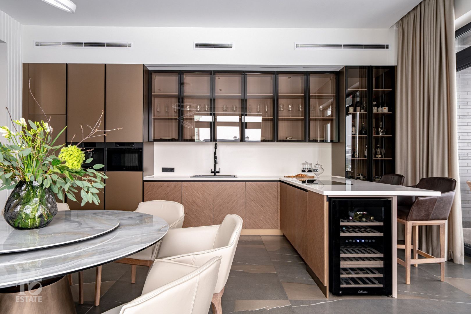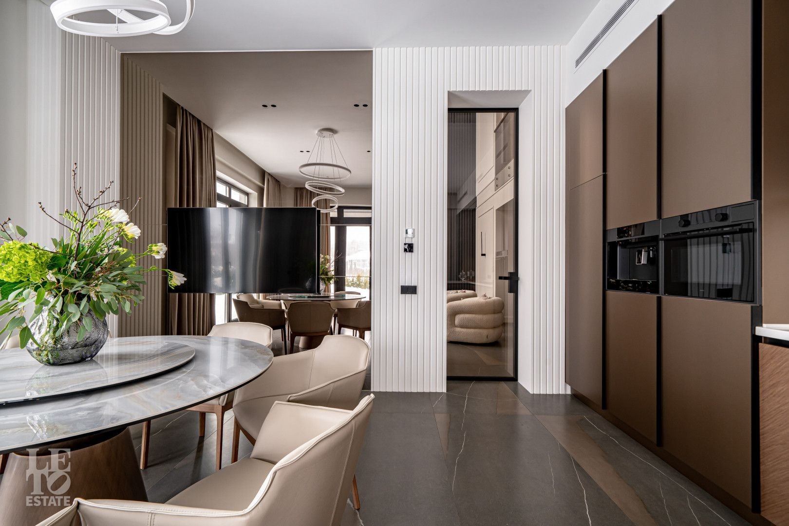 натуральных материалов. Фасад из клинкерного кирпича ручной формовки, второй свет высотой 6,6 метра и шесть полноценных спален — здесь каждый квадратныйл метр подчеркивает статус и вкус владельца.