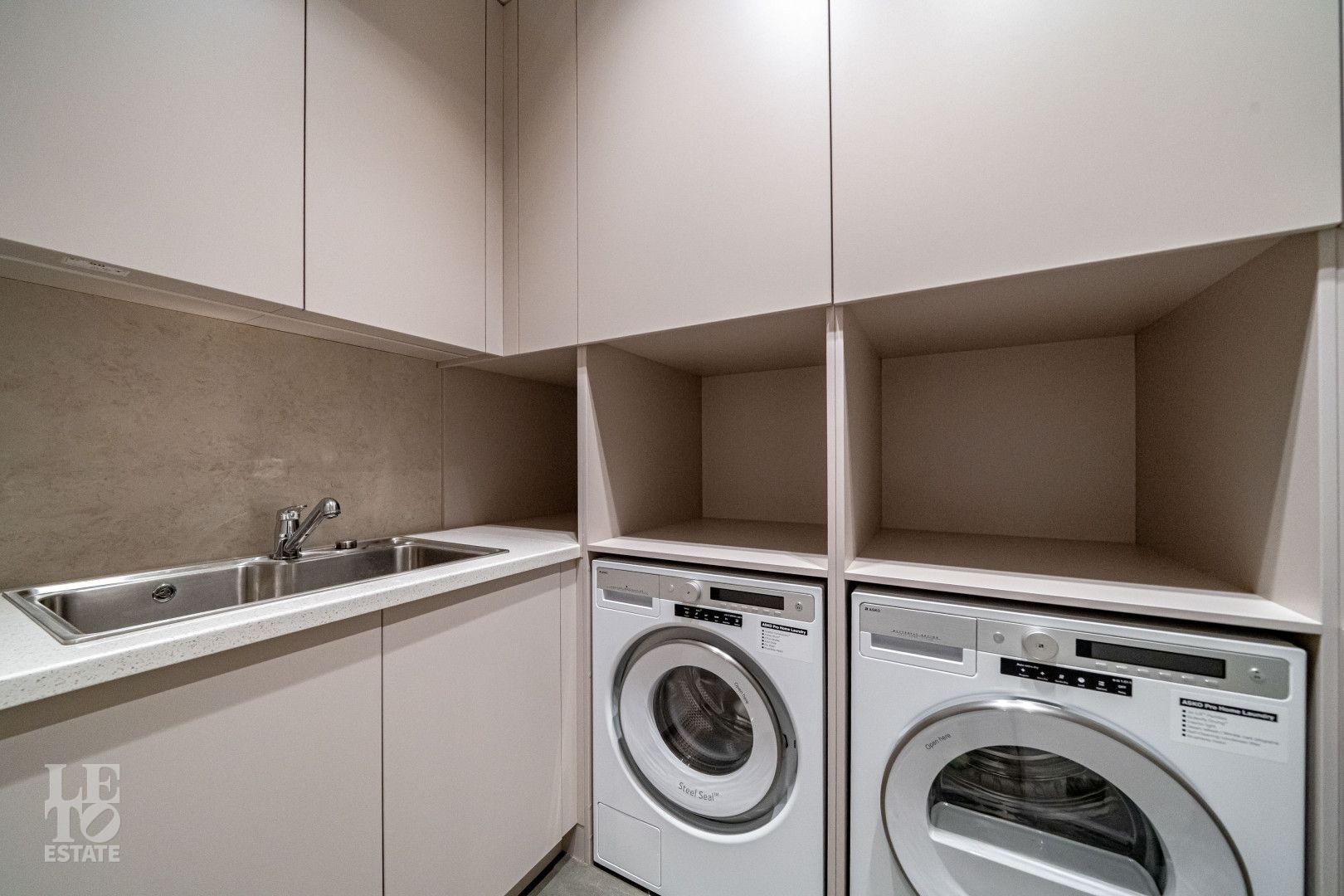 Первый этаж: гостиная, кухня-столовая, мастер-спальня с санузлом и гардеробной, спальня с санузлом, холл, постирочная, санузел, гараж на 2 м/м;