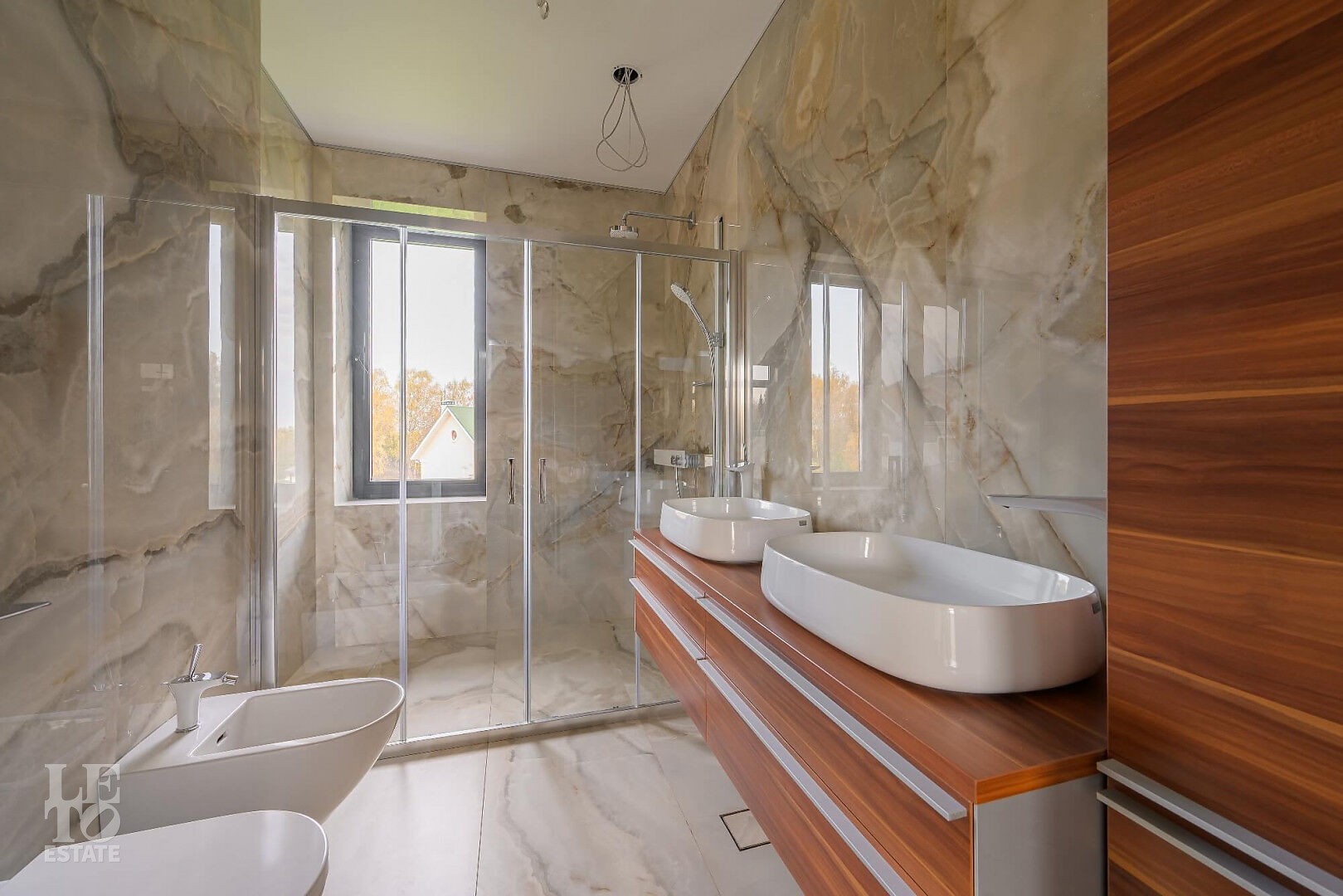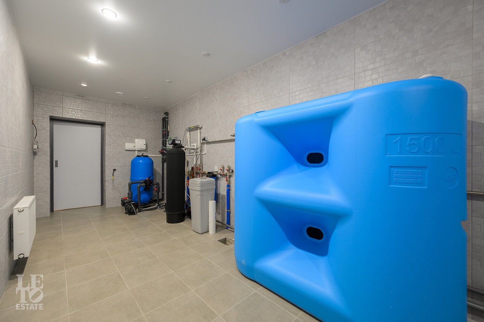 В доме: 5 спален, 7 с/у, гостиная, кухня-столовая с выходом на террасу, бассейн, спа-зона, кинотеатр с баром, кабинет, лестничный холл, котельная, постирочная, гардеробная для сезонных вещей, гараж на 2 м/м, подсобные и технические помещения.