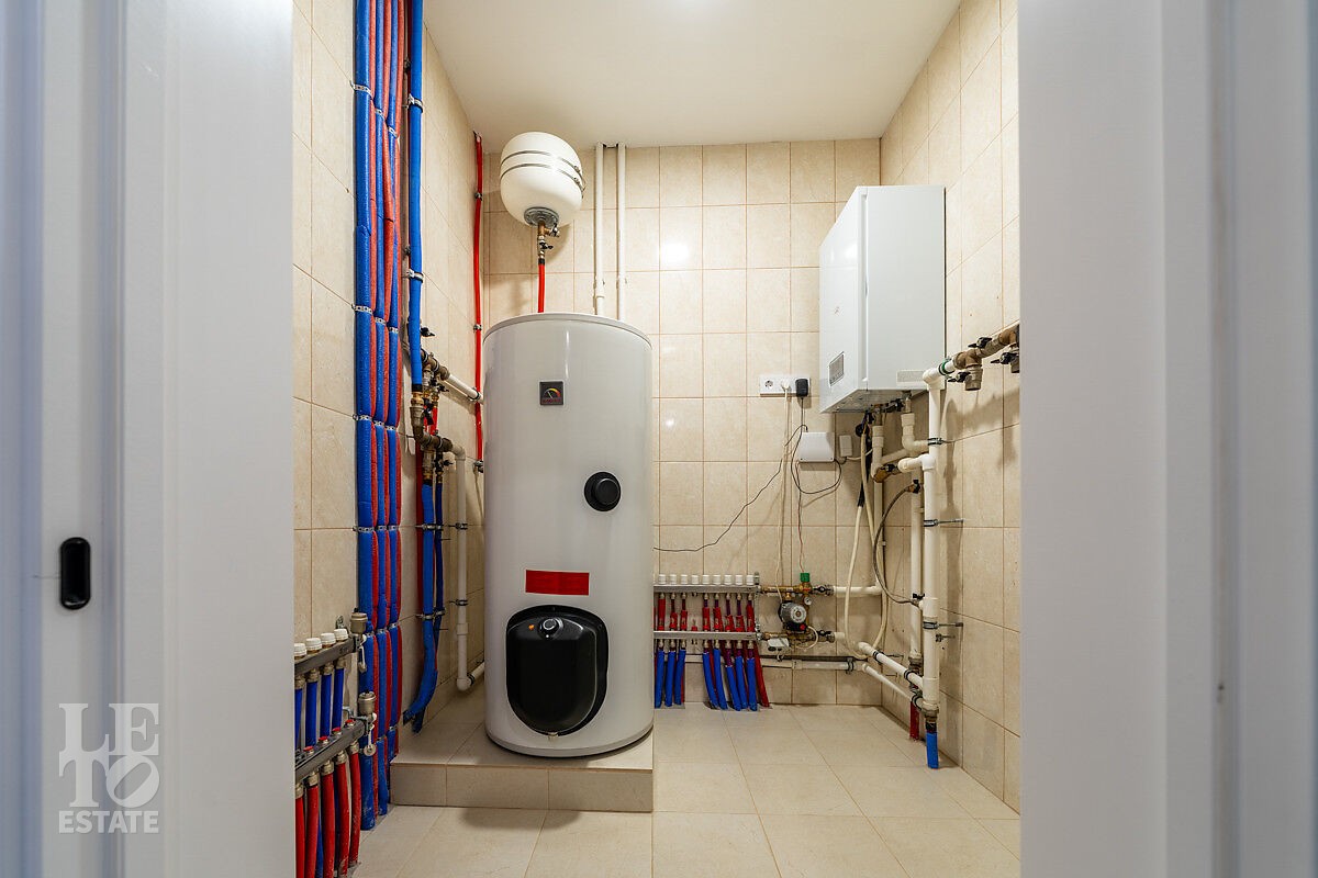 Техническая часть продумана до мелочей: организована современная котельная с полным циклом автоматизации и возможностью удаленного управления всеми системами. Въездная группа оборудована гаражными воротами с электроприводом HORMANN ProMatic, а просторный участок открывает безграничные возможности для ландшафтного дизайна и создания дополнительных зон отдыха.