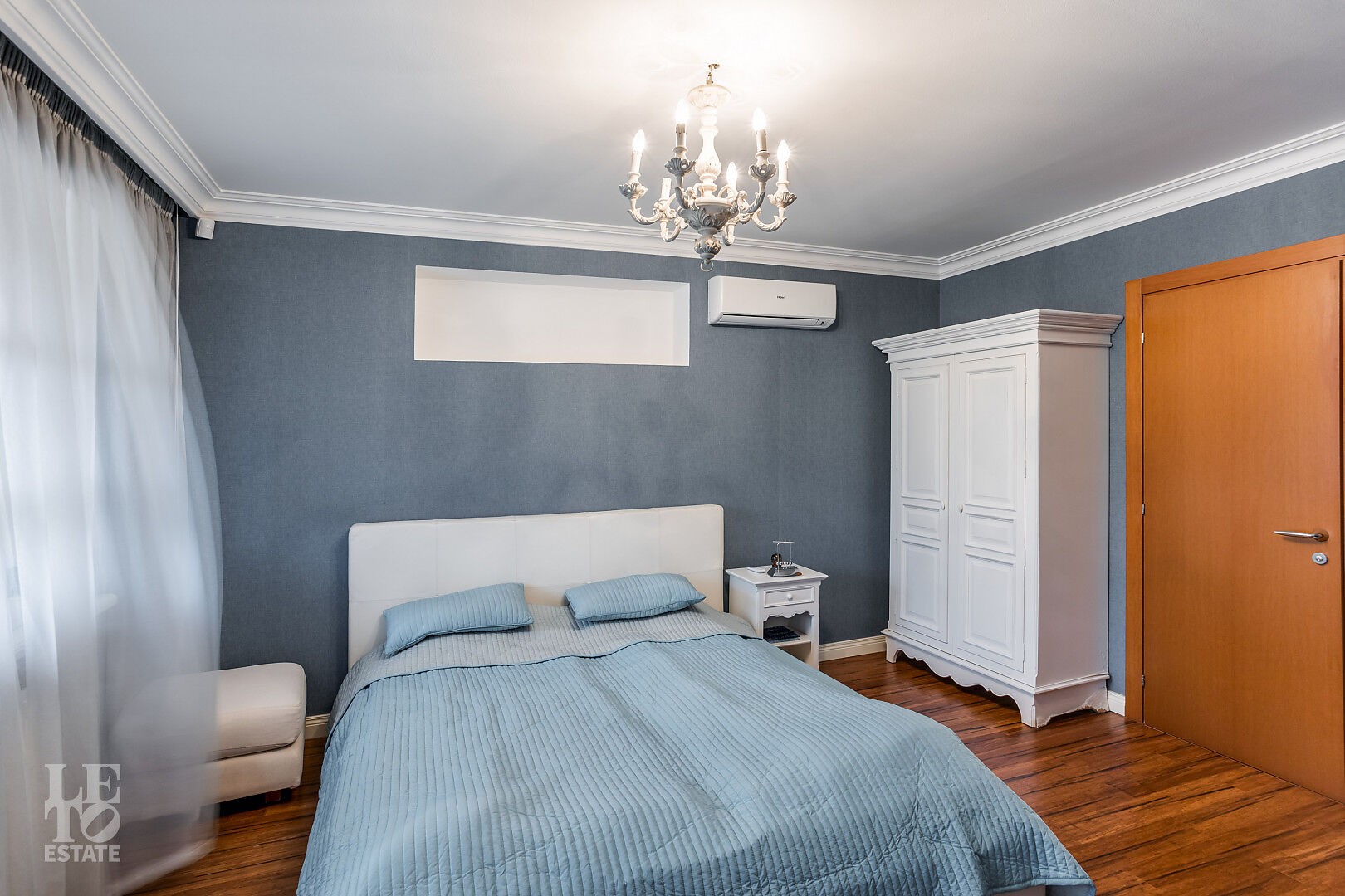 На втором этаже расположена главная спальня с собственной гардеробной и ванной комнатами, а также три дополнительные спальни, каждая из которых оборудована индивидуальной ванной комнатой.