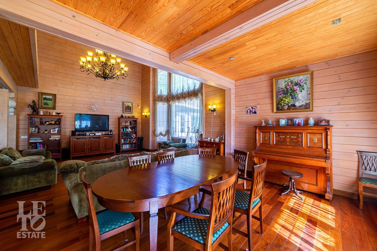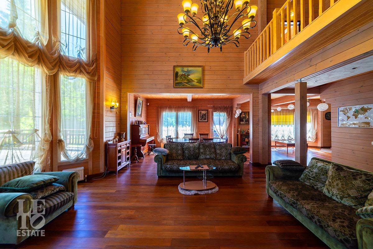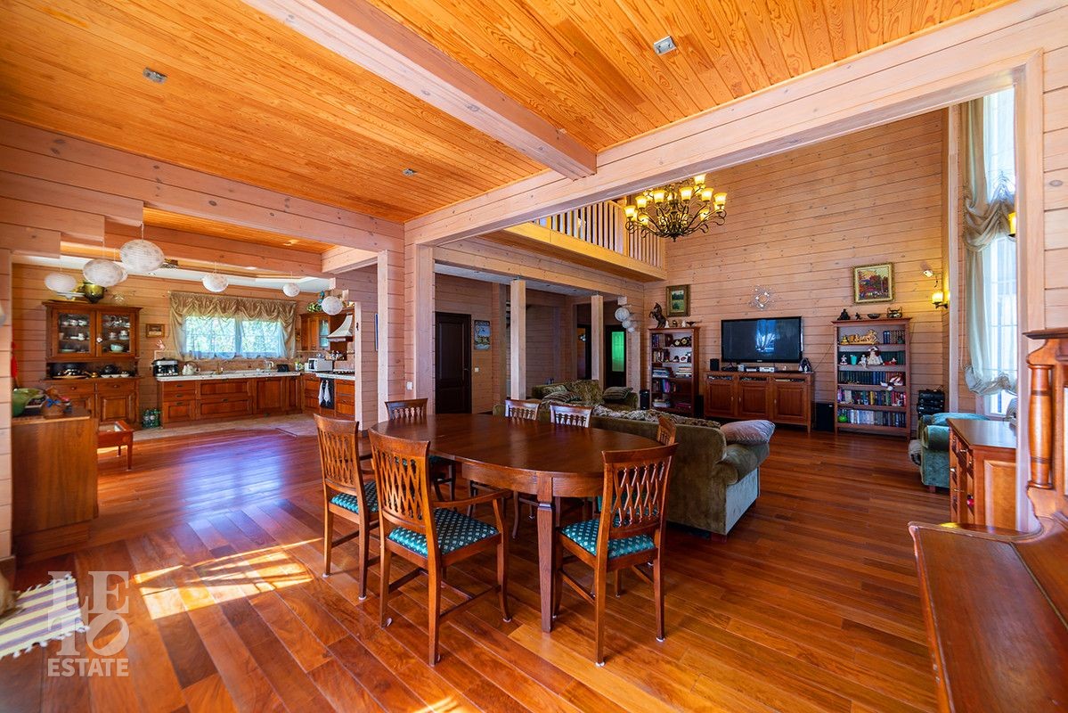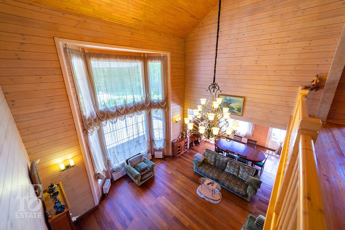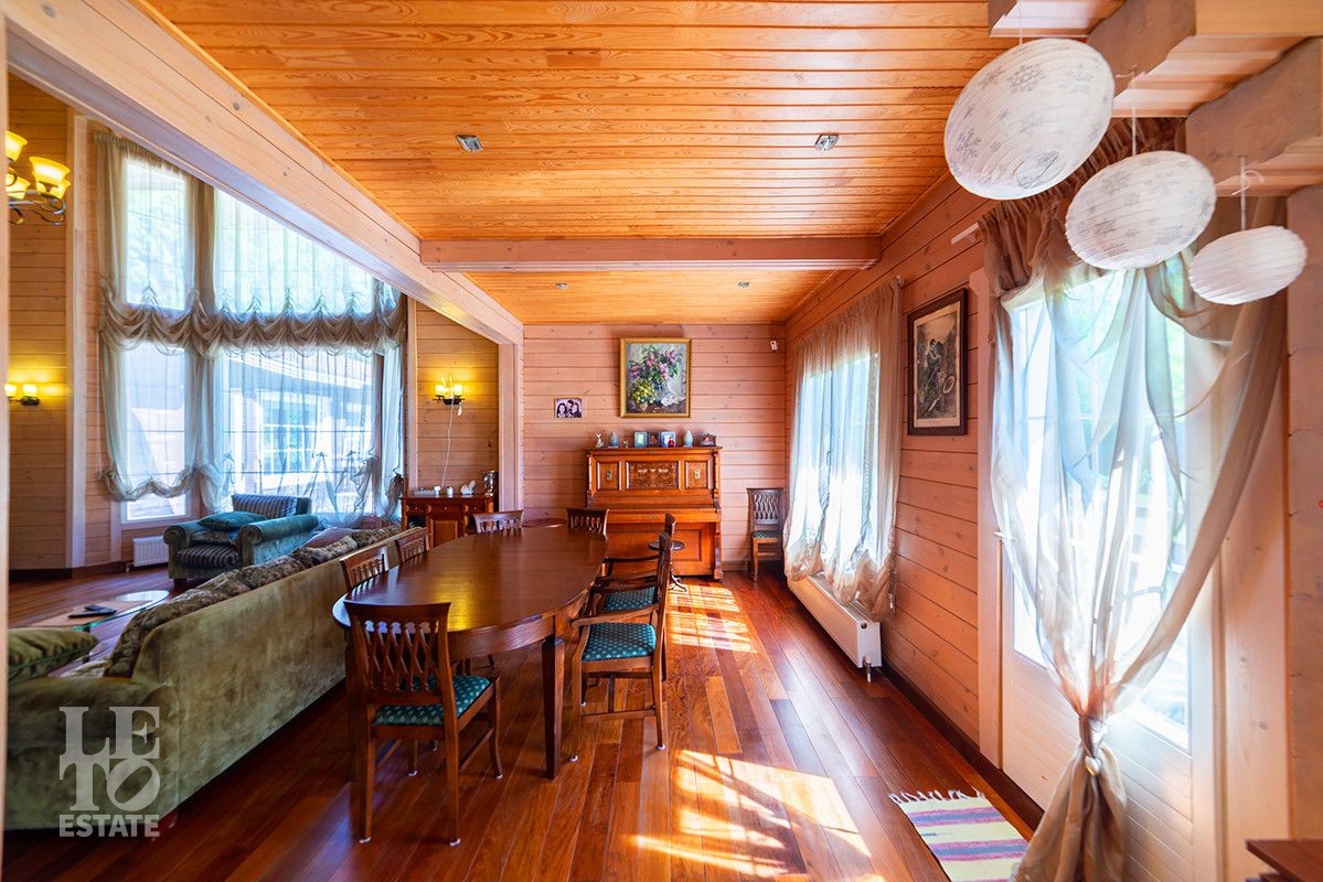 Дом полностью готов для круглогодичного проживания. Центром притяжения дома является просторная гостиная-столовая со вторым светом и панорамными окнами с красивыми видами на благоустроенный внутренний двор и лес.