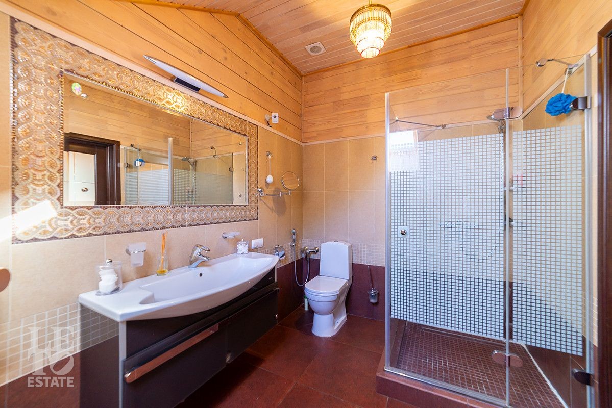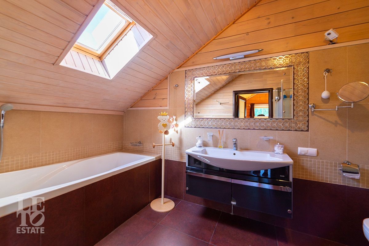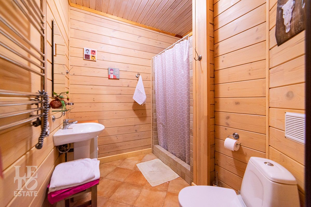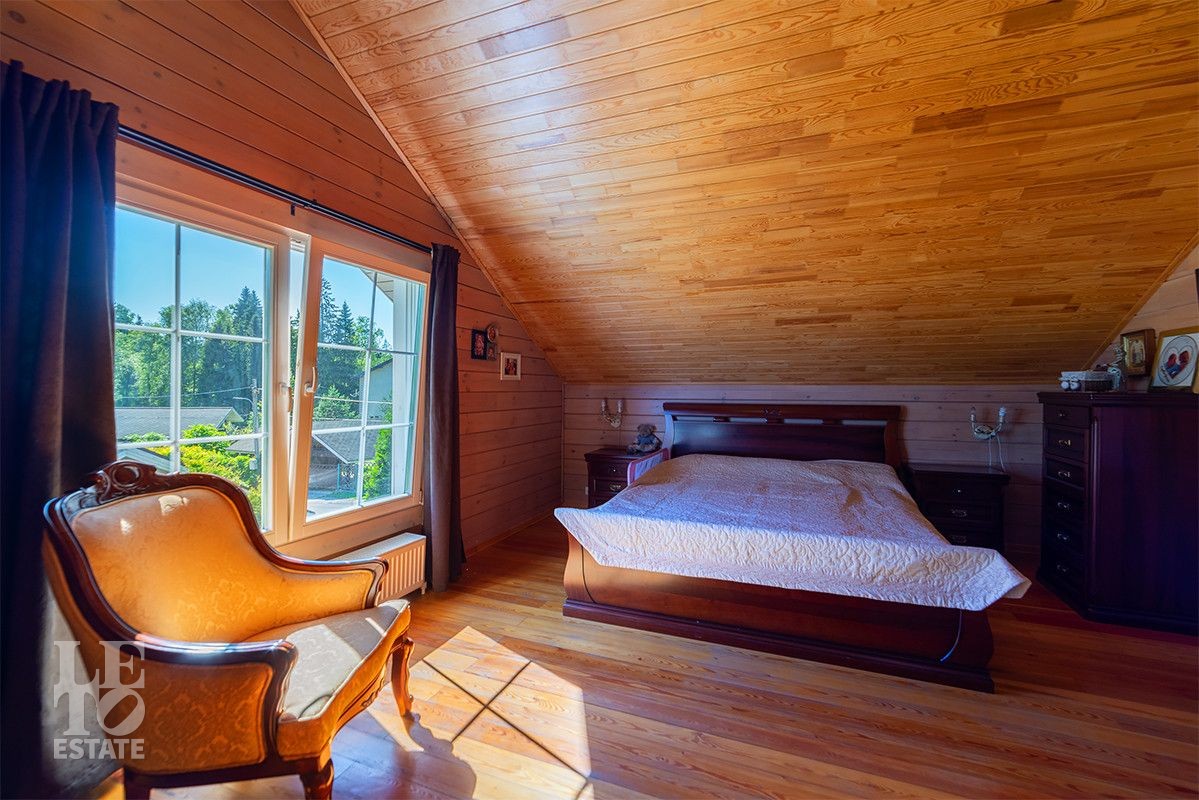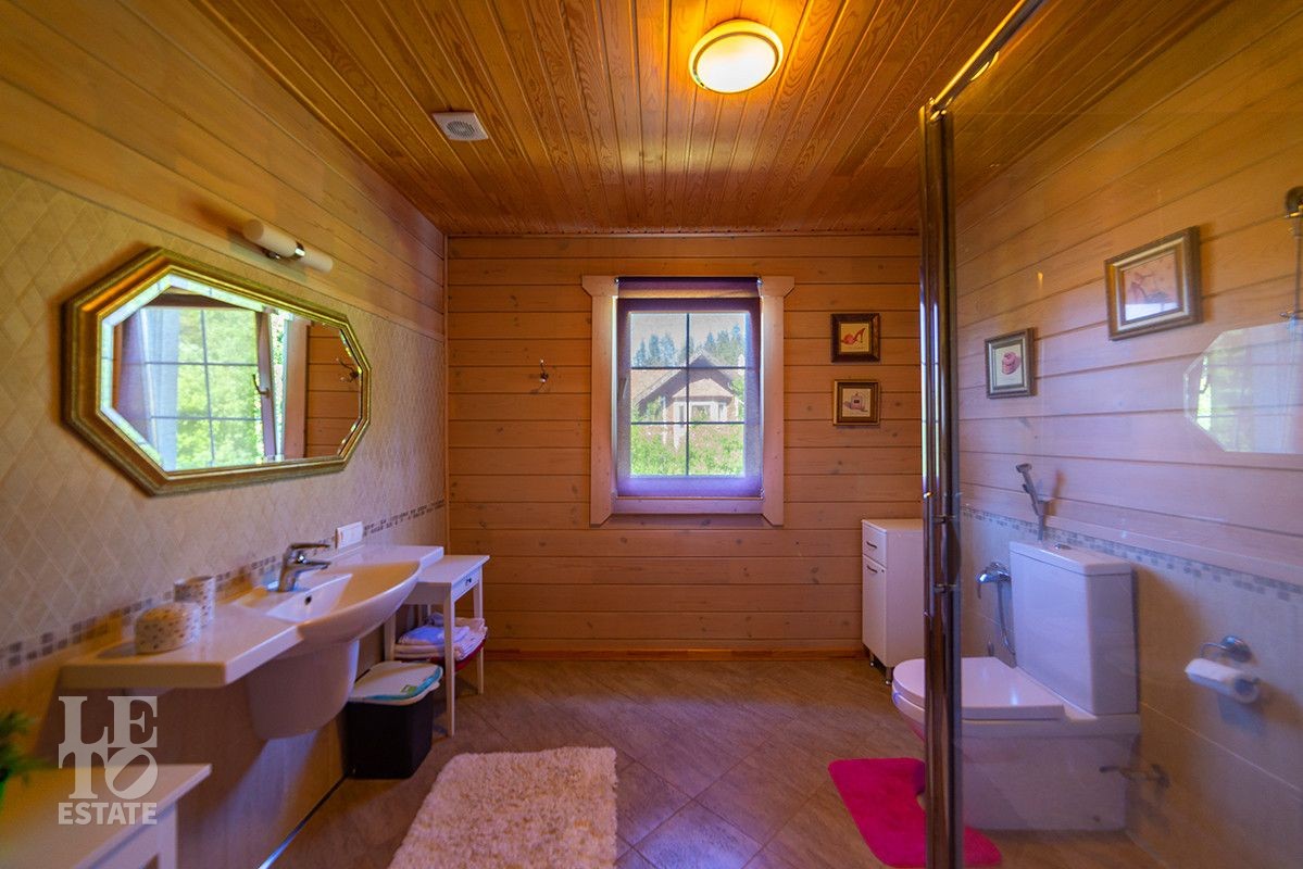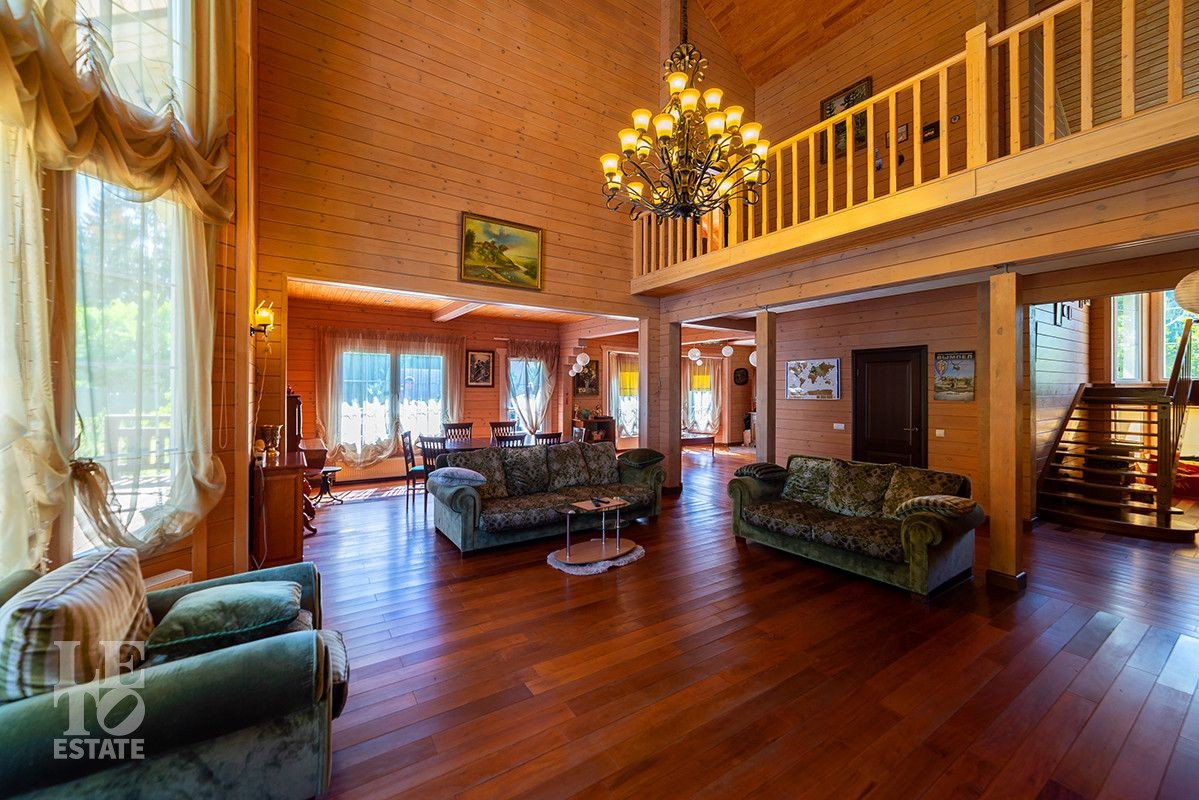Дом полностью готов для круглогодичного проживания. Центром притяжения дома является просторная гостиная-столовая со вторым светом и панорамными окнами с красивыми видами на благоустроенный внутренний двор и лес.