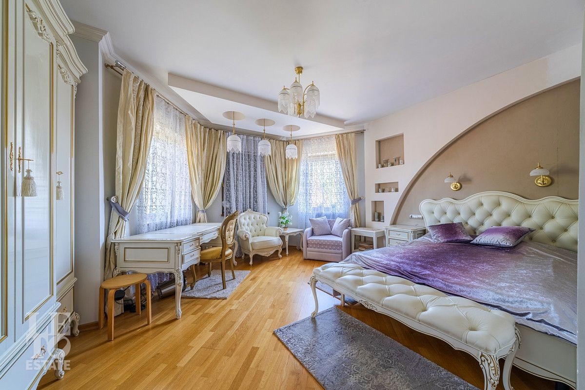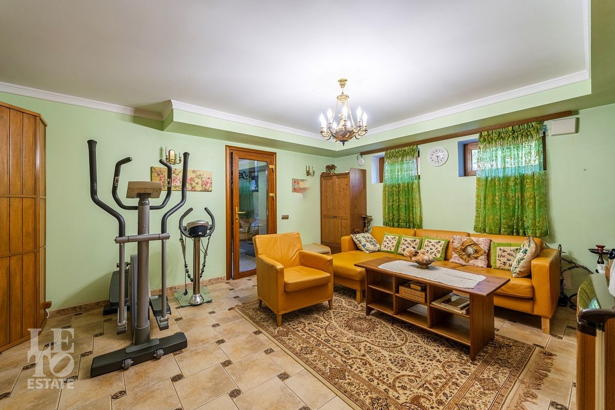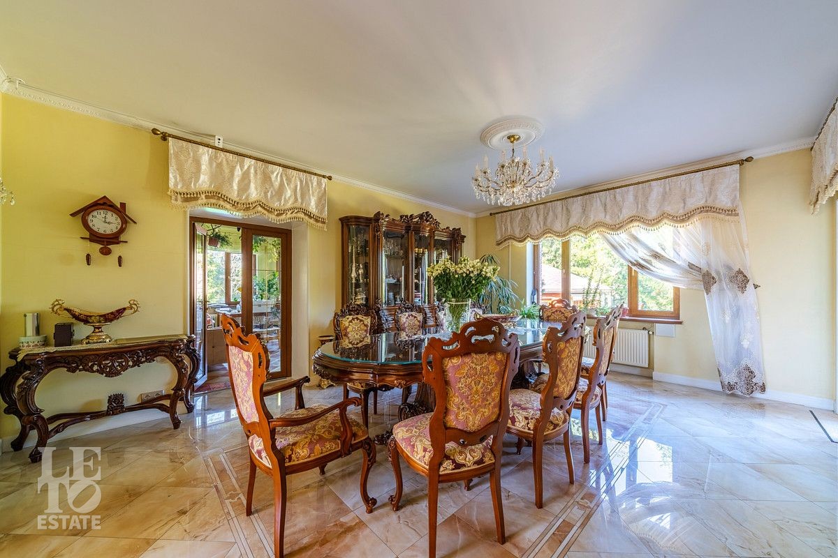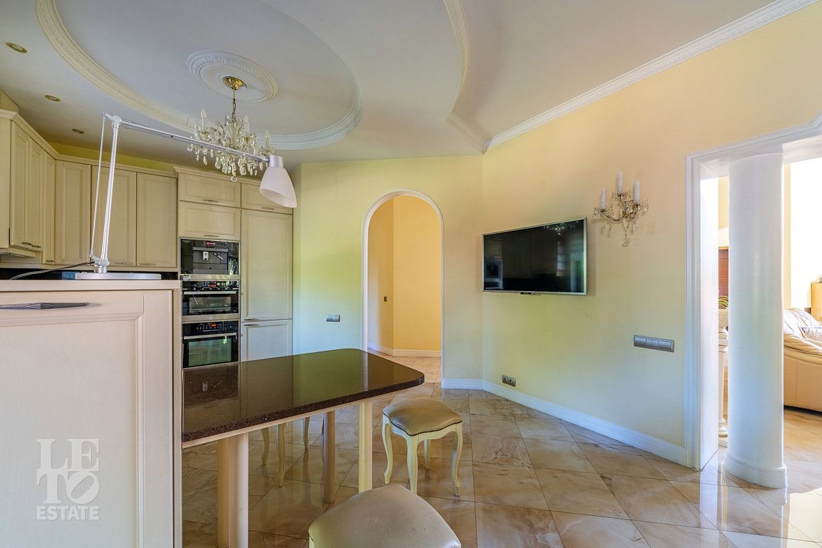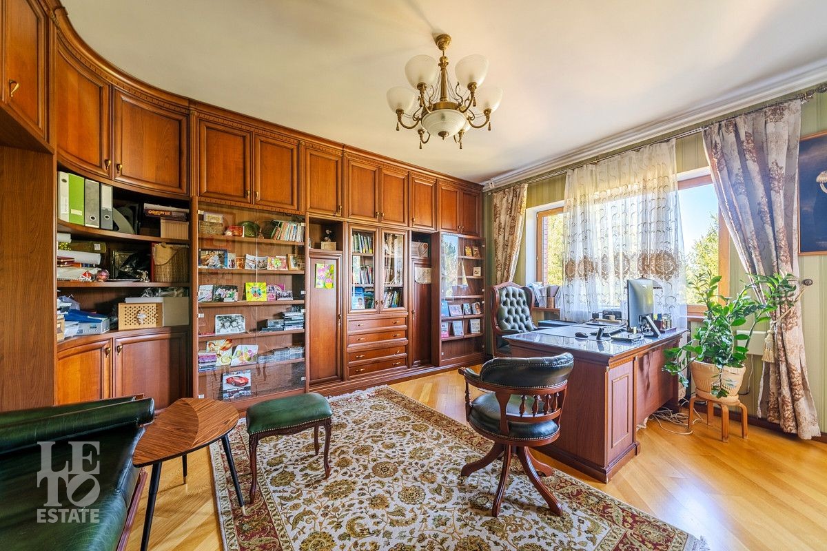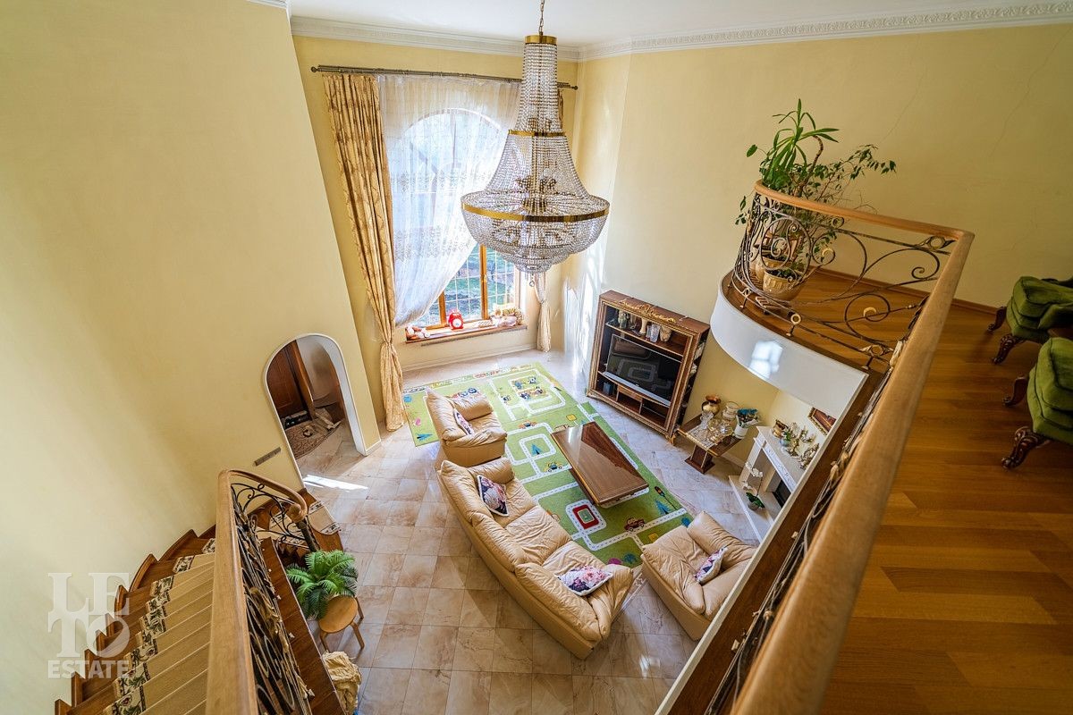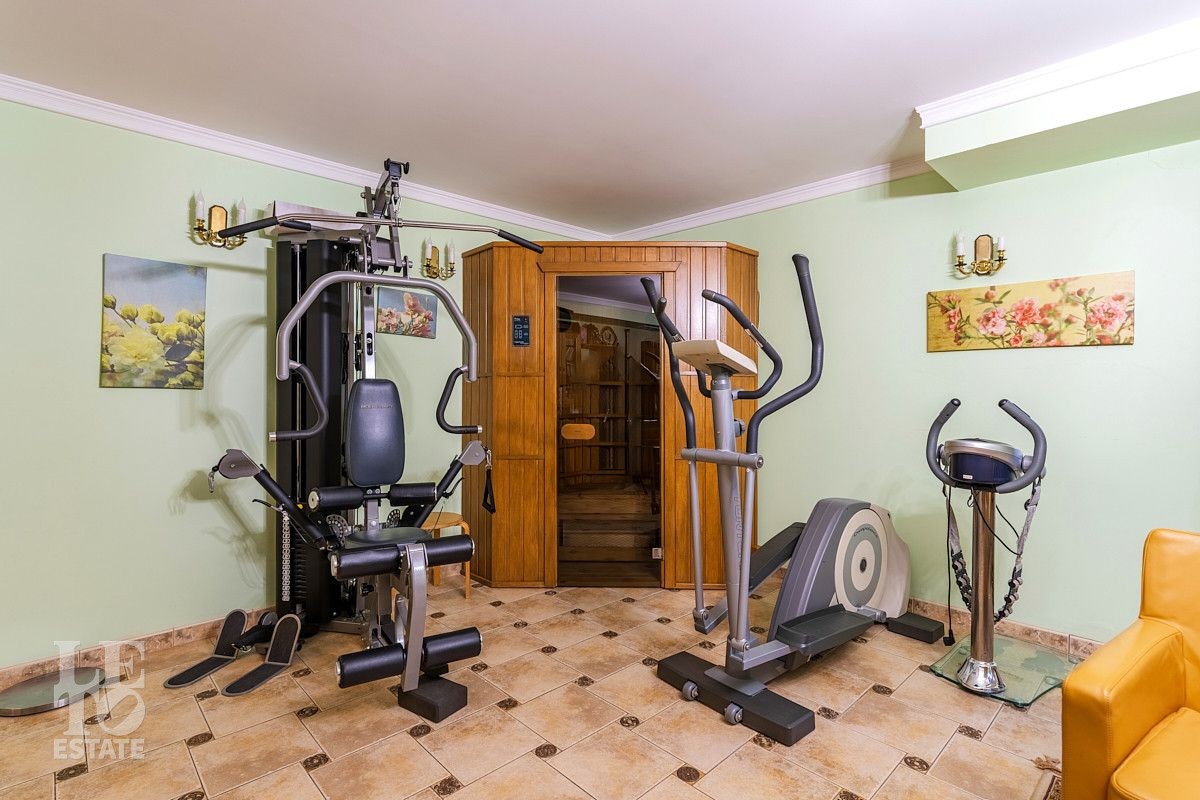 Дизайн этого дома выполнен в классическом стиле, отделка выполнена из качественных европейских материалов. Высокие потолки, второй свет в просторной гостиной, дровяной камин, зимний сад, крытый бассейн - все это создает прекрасное пространство для жизни большой семьи. Хорошо продуманные планировочные решения обеспечивают оптимальную организацию пространства, а роскошный интерьер удовлетворит самый взыскательный запрос . Установленная техника ведущих мировых марок гарантирует эффективность и надежность в использовании. Сантехника ведущих европейских брендов "Villeroy & Boch", Jacuzzi, Albatros известных своим качеством и стилем. Большие окна позволяют максимально использовать естественное освещение, подчеркивая красоту как внутренних, так и внешних видов.