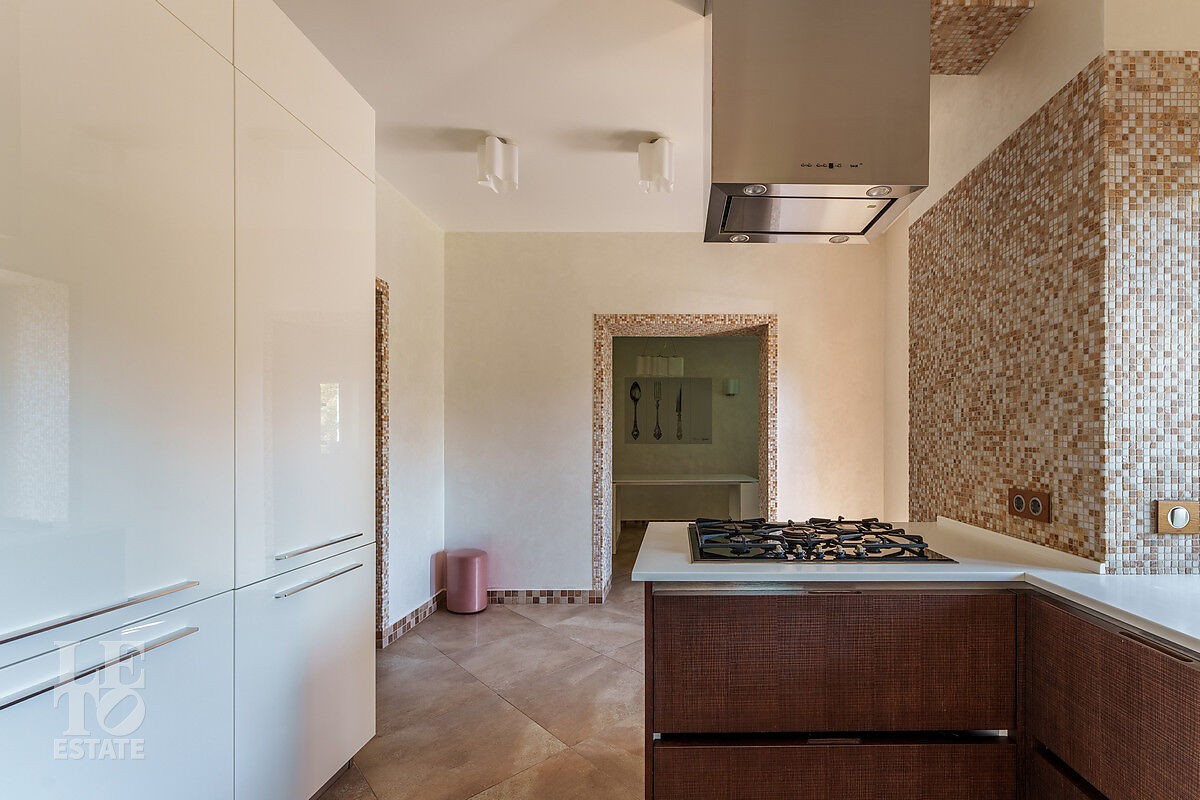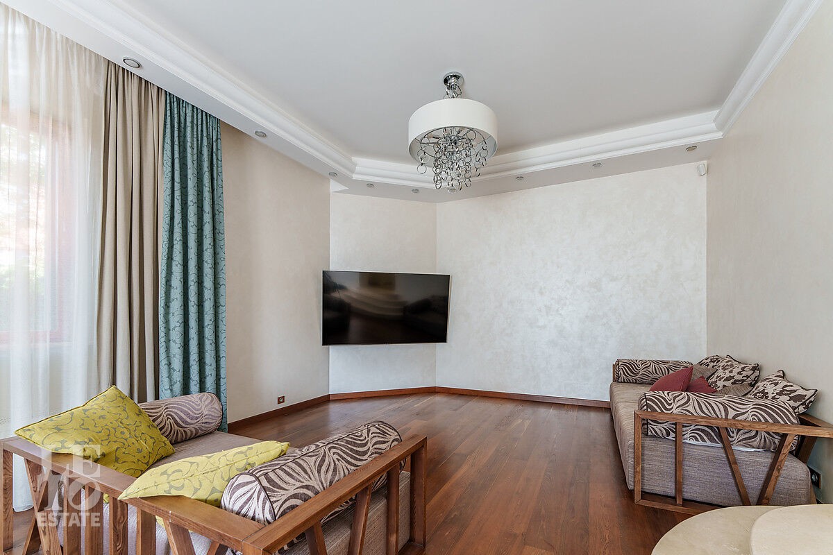 В доме произведена качественная современная отделка с использованием премиум материалов от ведущих европейских производителей: итальянские двери из массива дуба, полы из массивной доски, лестницы отделаны массивом ясеня, подоконники из мрамора, окна деревянные стеклопакеты, сантехника в санузлах и ванных Blanco, Old England, Vileroy&Boch , Duravit. Кухонный гарнитур под единой каменной столешницей оборудован встроенной техникой NEFF, включая плиту на 5 конфорок, духовку и посудомойку, встроенный двустворчатый холодильник Liebherr.