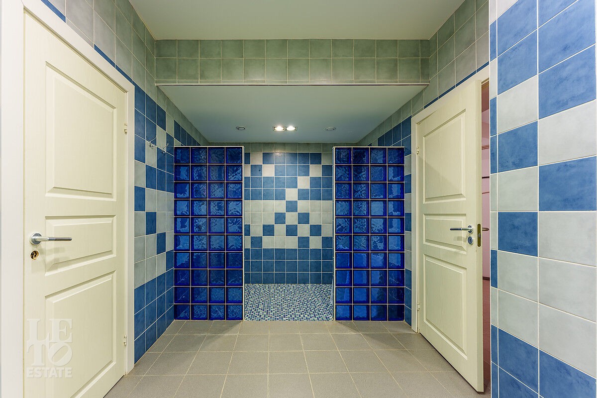 Цокольный этаж: холл, электрощитовая, котельная, техническая зона с оборудованием для бассейна и водоподготовки, постирочная, просторная и полностью оборудованная гардеробная, сауна, комната отдыха, помещение с джакузи и купелью, душевые, санузел.