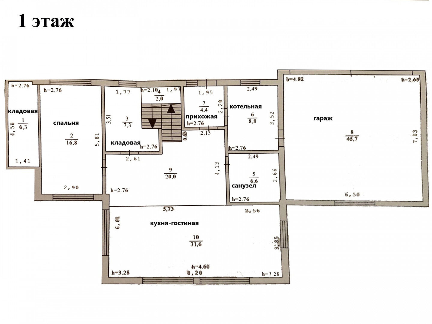 Первый этаж: бойлерная, гараж на два машино-места, кухня-гостиная, спальня, кладовая, санузел;