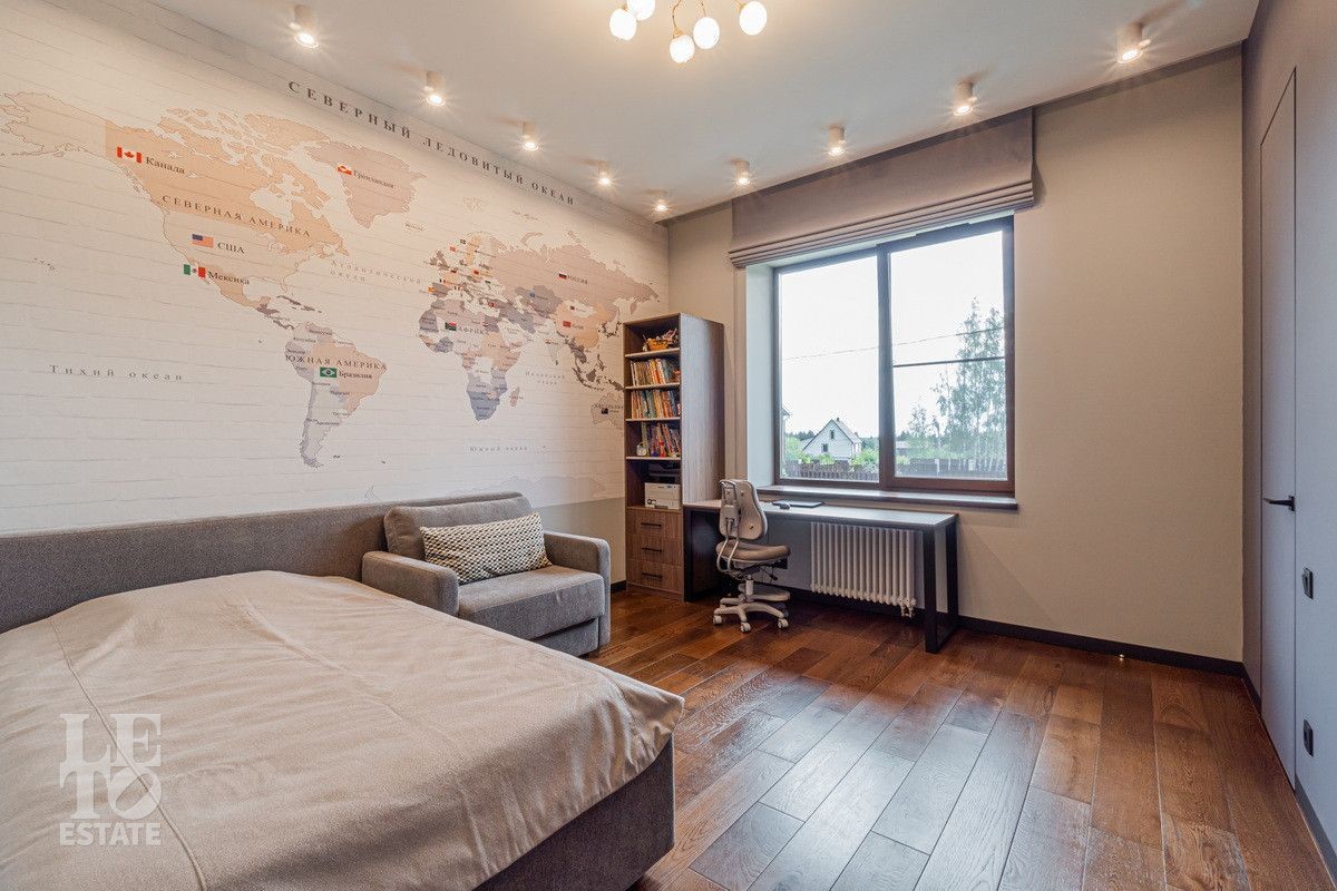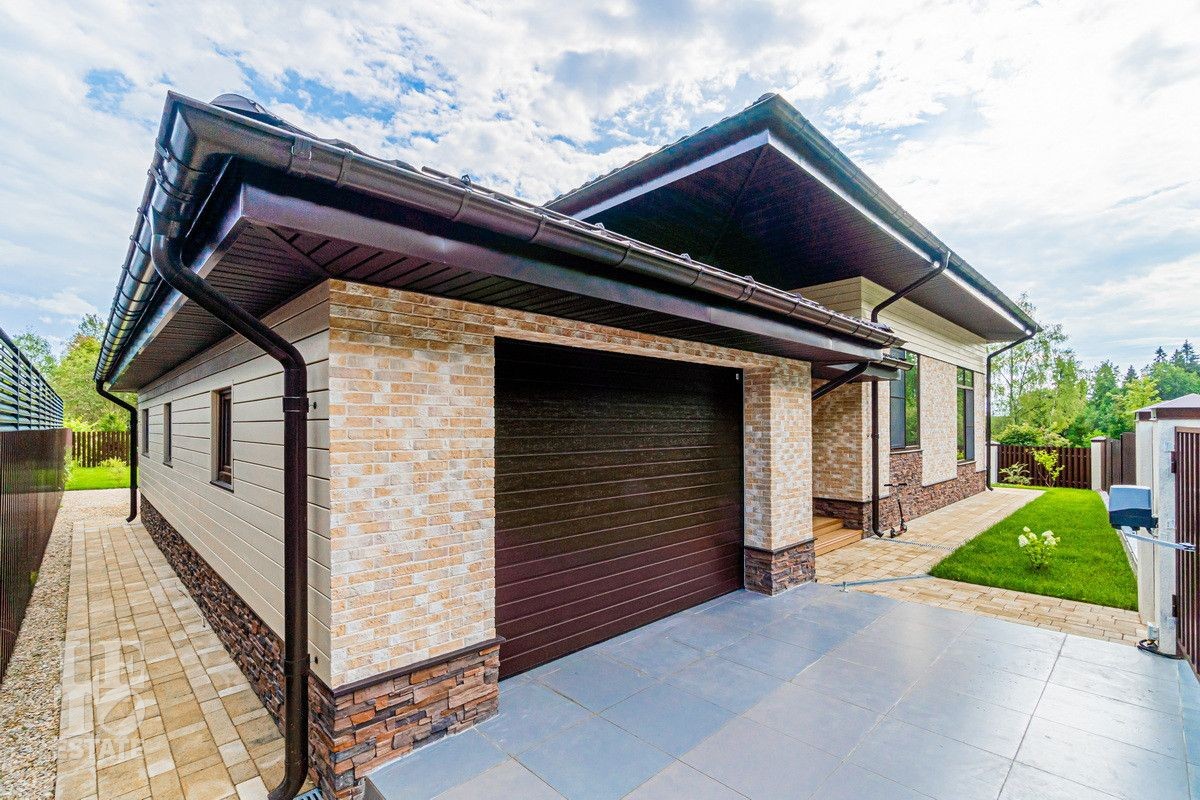 Дом построен в 2022 году по индивидуальному проекту, в котором эстетичная архитектура сочетается с премиальными материалами. Конструктив: газобетонные блоки D500, монолитная фундаментная плита, вентилируемая кровля из металлочерепицы. В отделке фасада использованы планкен из лиственницы, искусственный кирпич и камень.