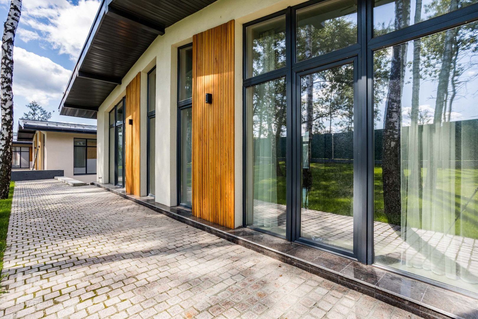 Дом представлен в отделке "white box" В архитектурном решении дом имеет выход во двор из гостиной второго этажа. Панорамные окна интегрируют пространство дома в березовую рощу, создавая единение с природой и неповторимые пейзажи всех времен года.