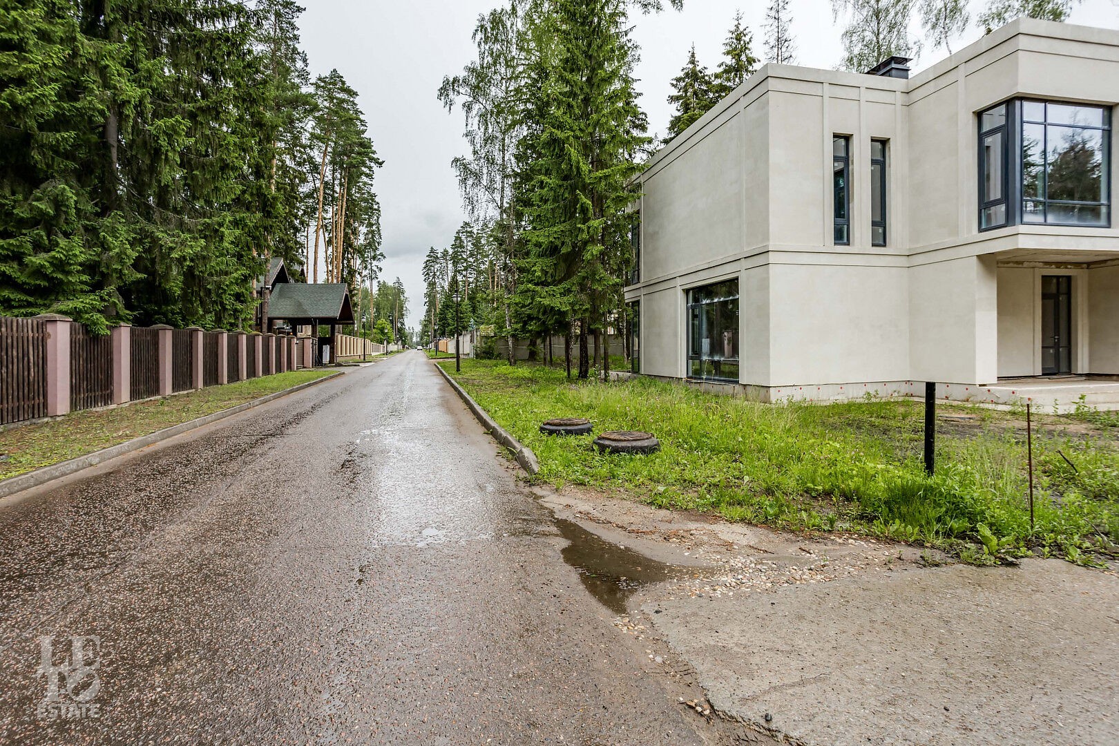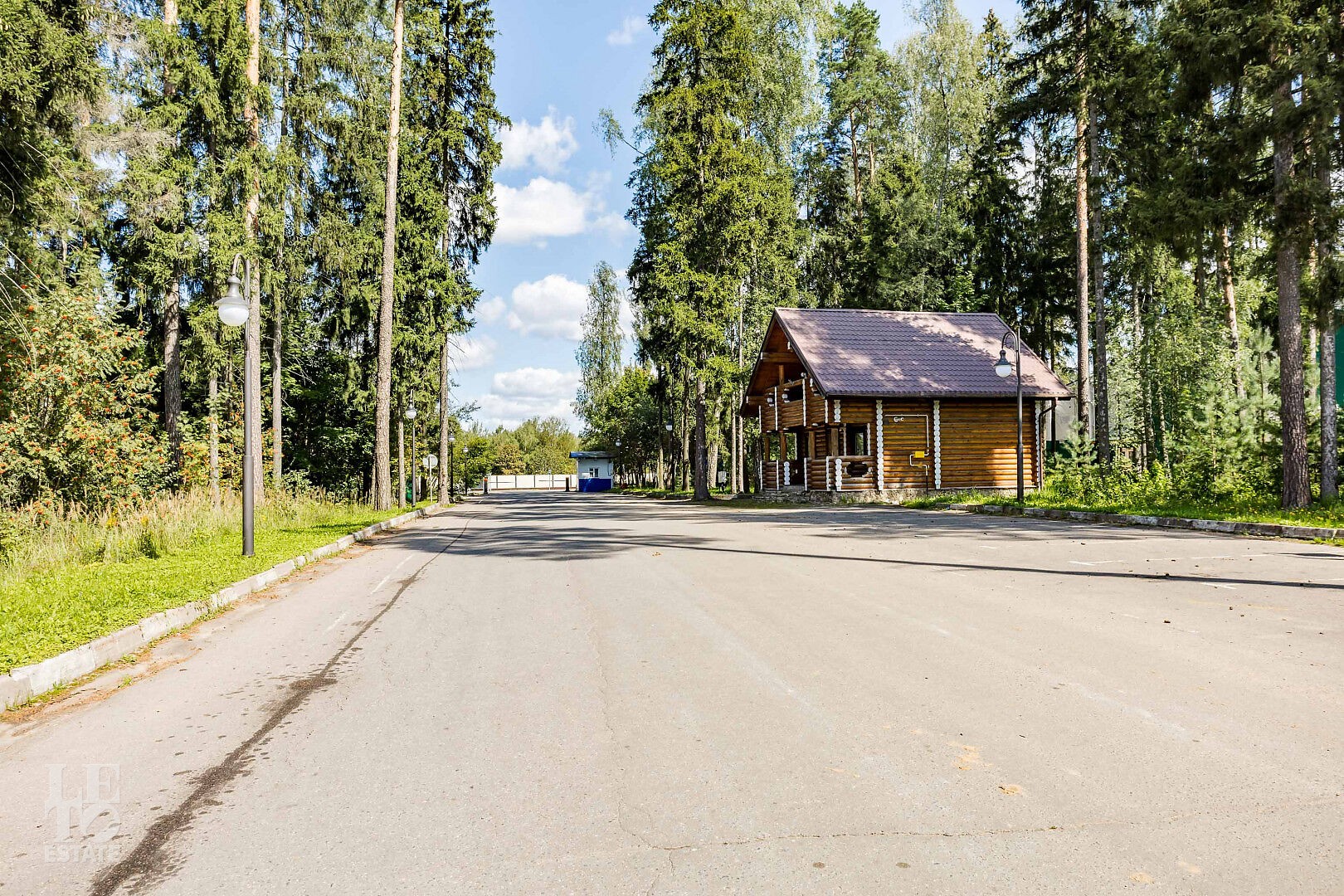 Здесь каждой домовладение находится в сосновом лесу, в поселке асфальтированные дороги с уличным освещением, центральные коммуникации и круглосуточная охрана с видеонаблюдением.