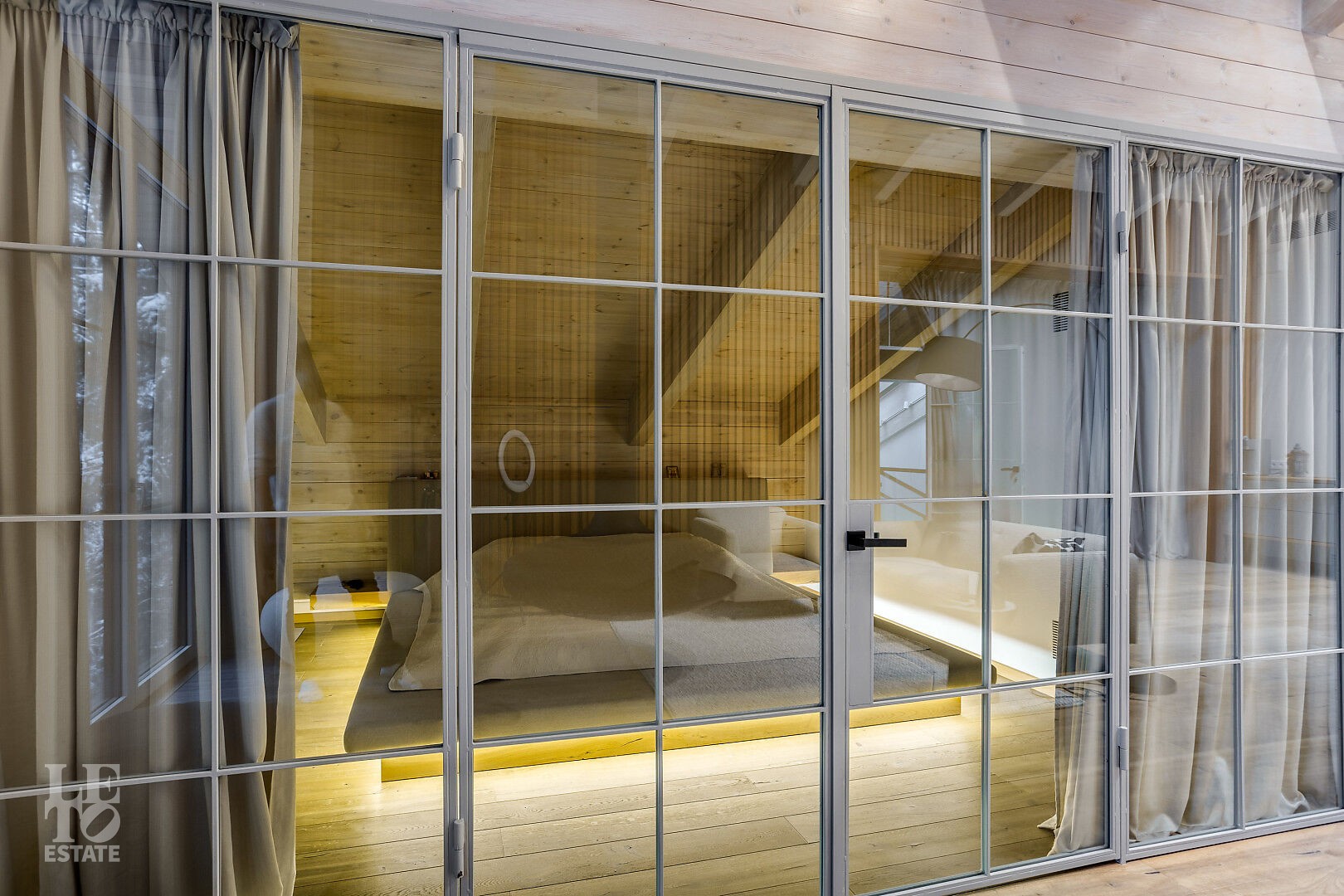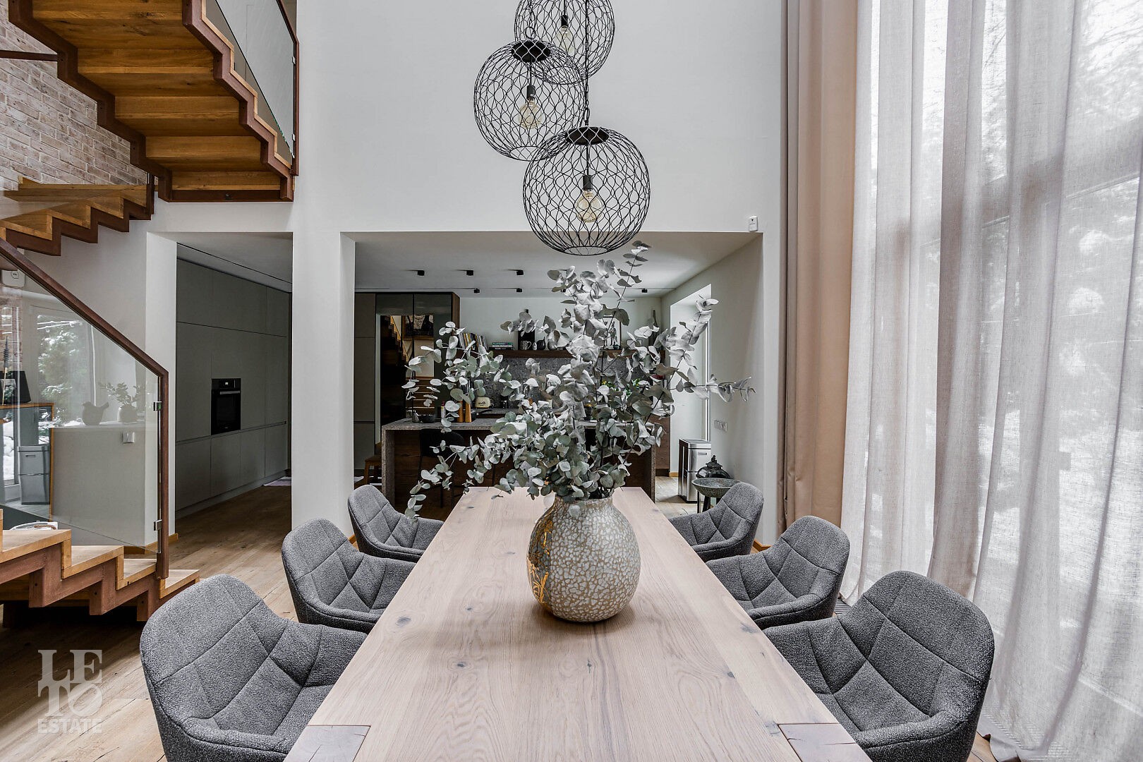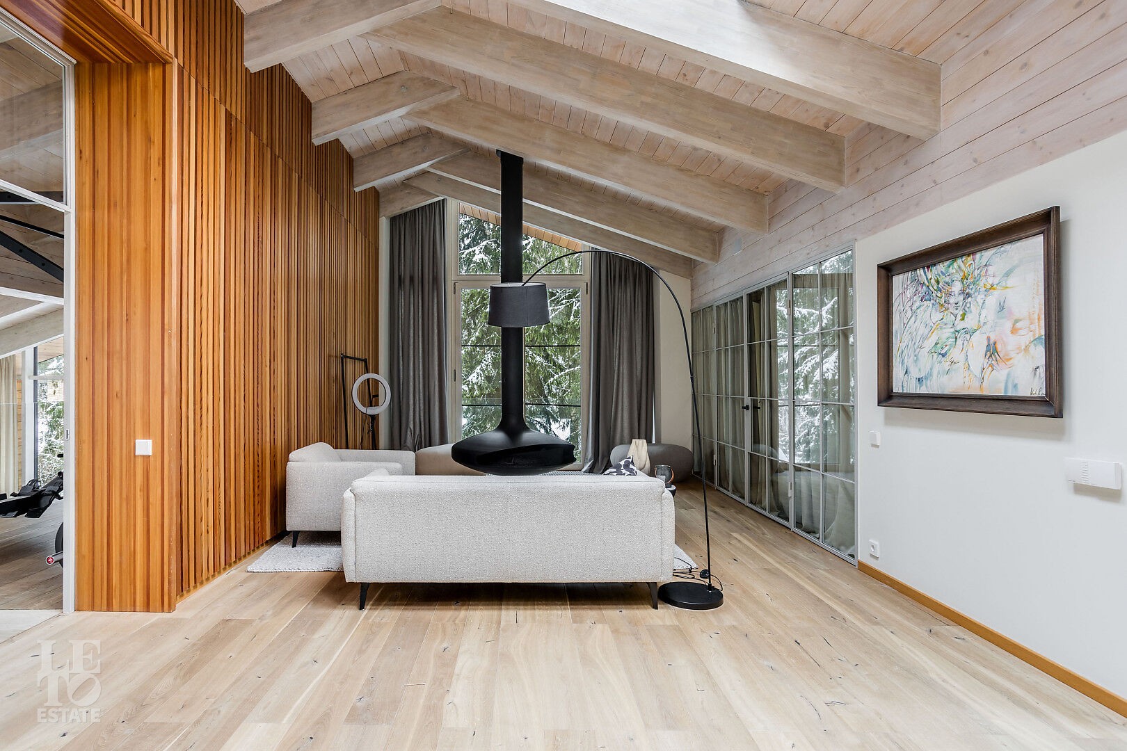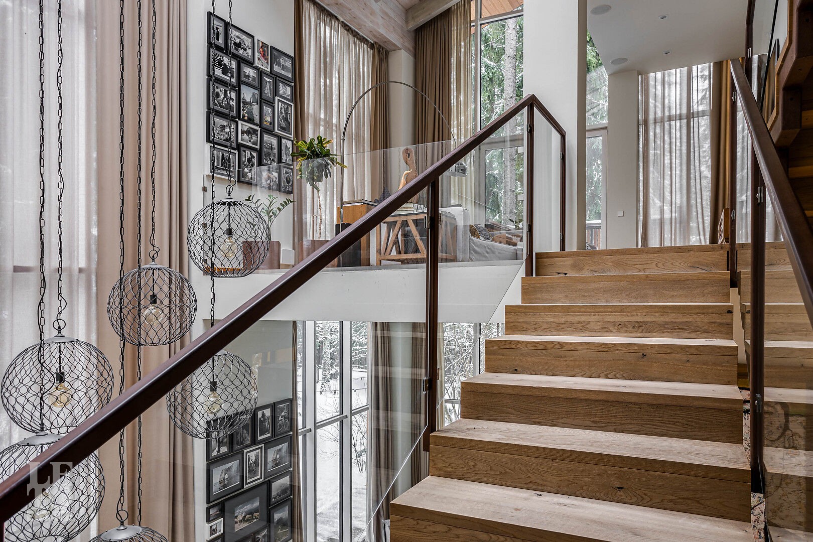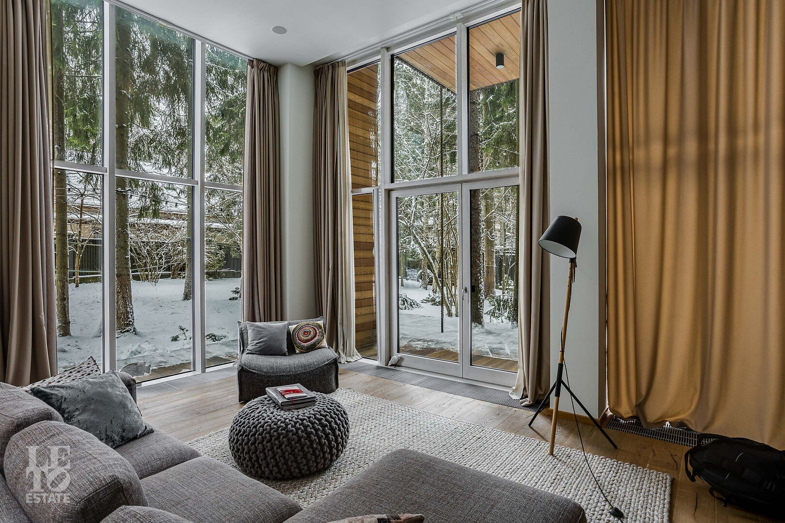 В доме выполнен дизайнерский ремонт. Панорамное остекление наполняет внутреннее пространство естественным светом и ощущением единства с природой. Интерьер выполнен в современном стиле, в светлых, мягких пастельных тонах.