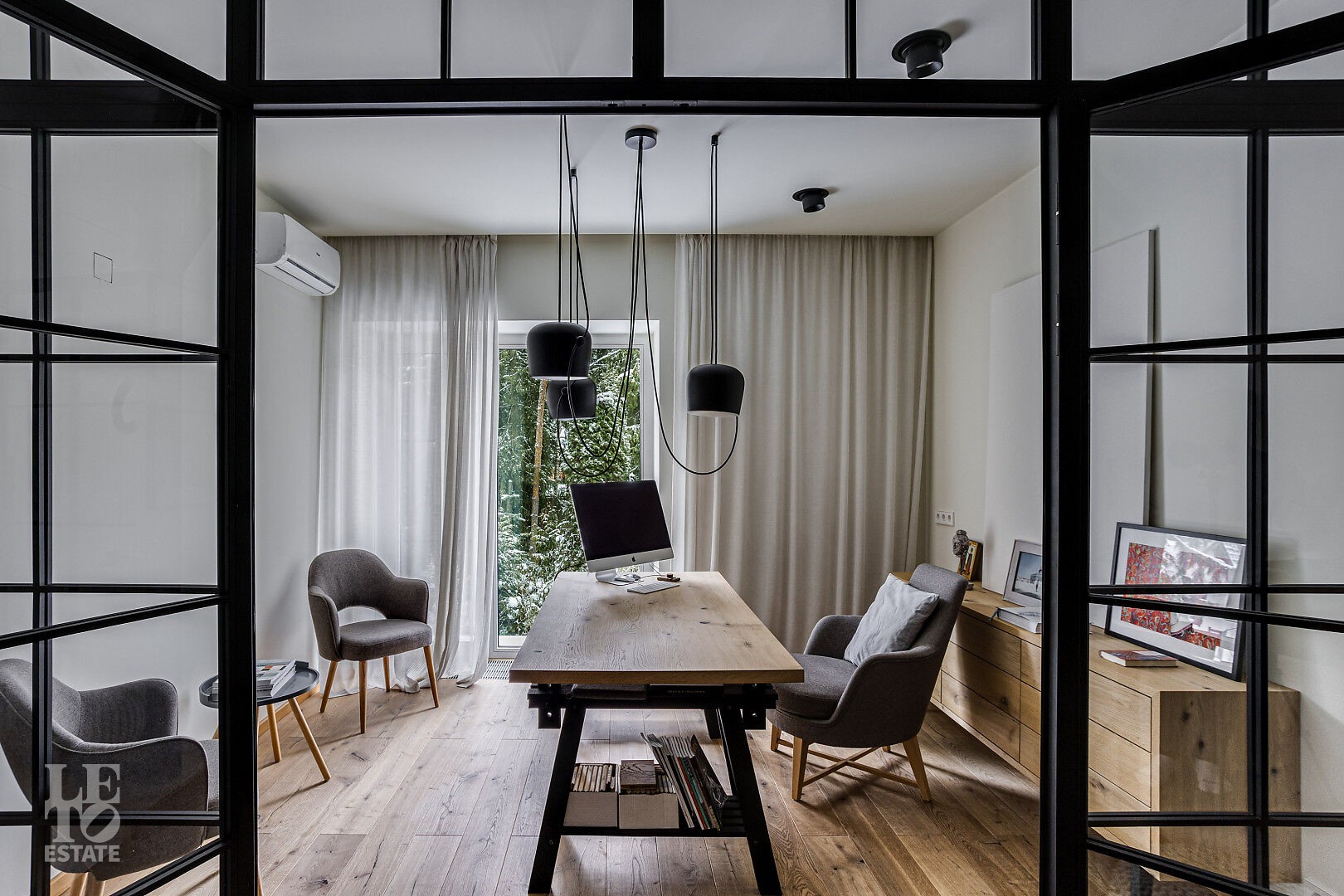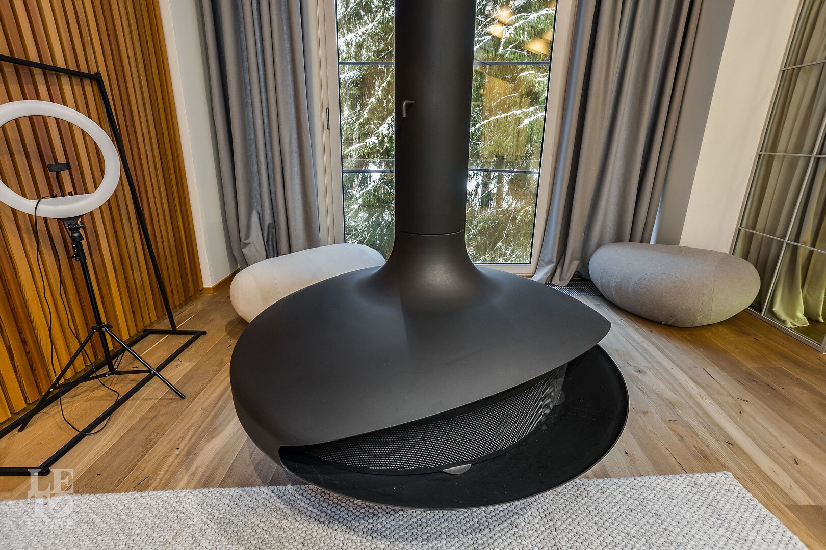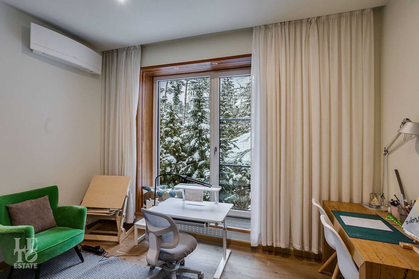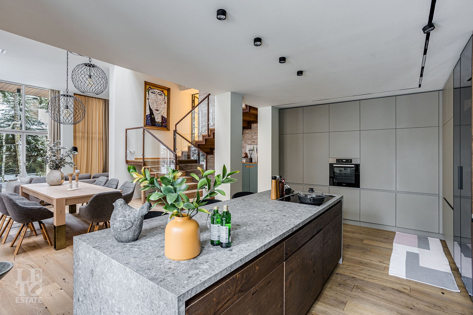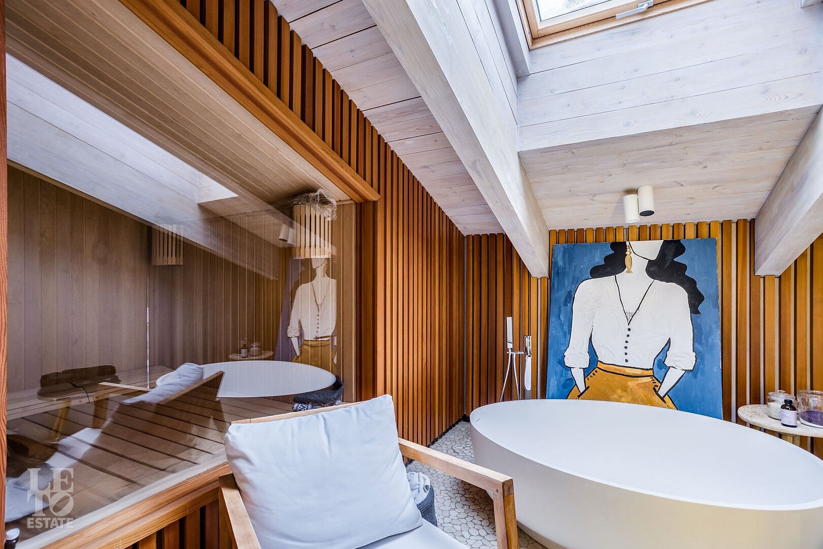 В доме выполнен дизайнерский ремонт. Панорамное остекление наполняет внутреннее пространство естественным светом и ощущением единства с природой. Интерьер выполнен в современном стиле, в светлых, мягких пастельных тонах.