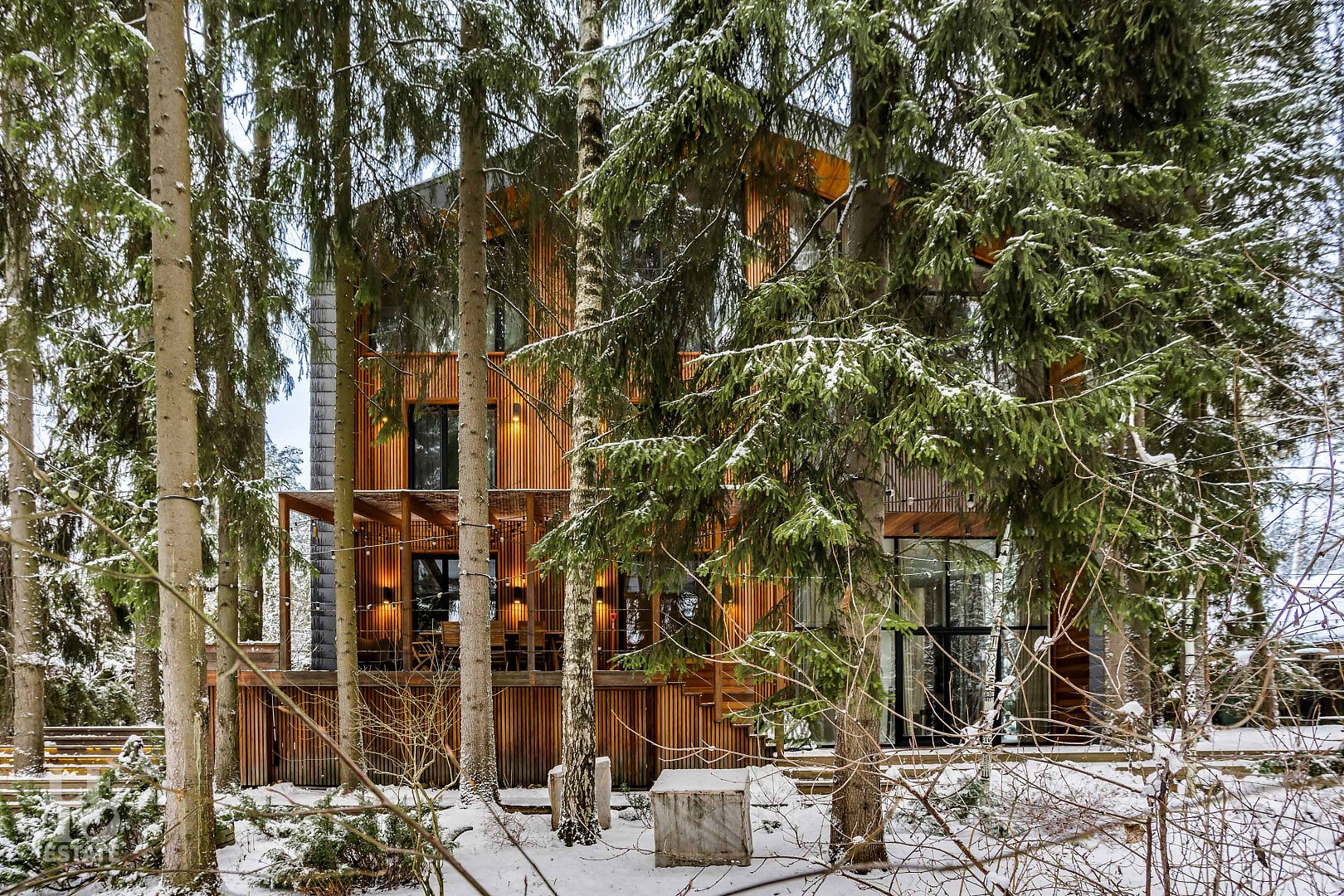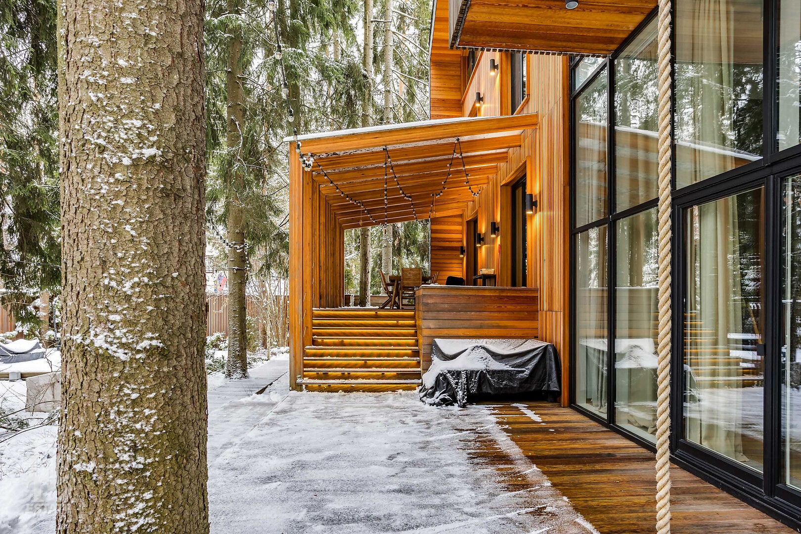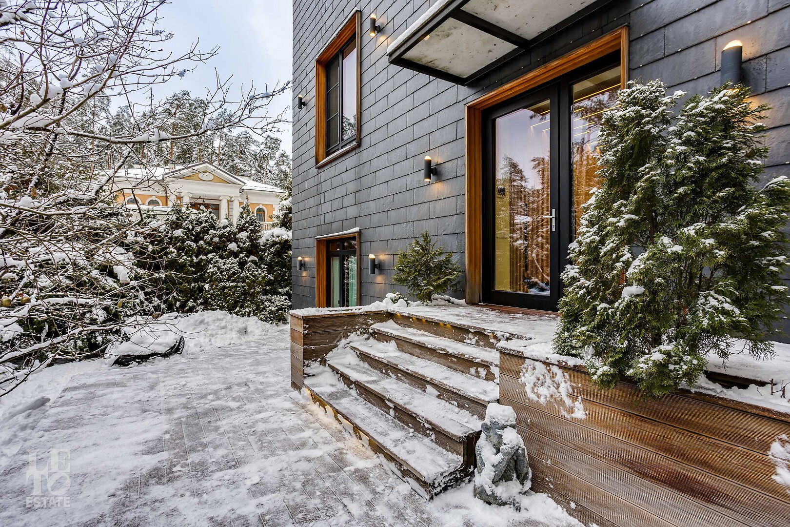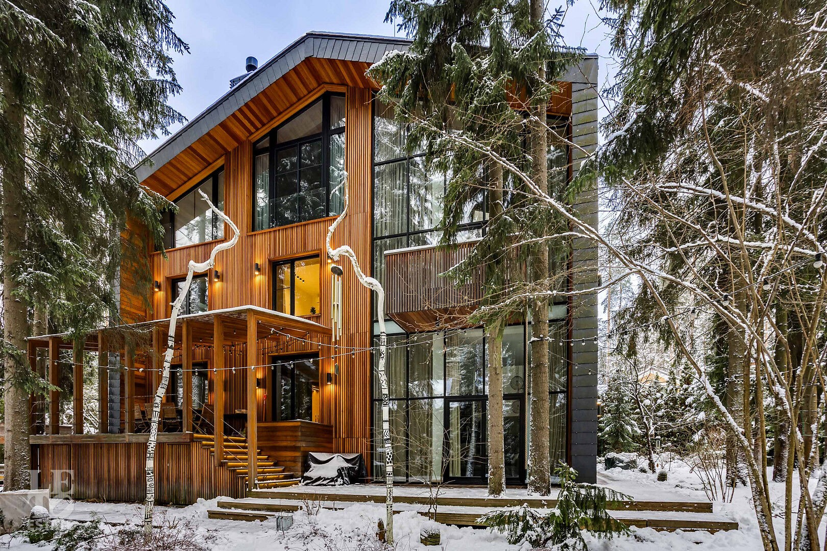 Представляем вашему вниманию дом “под ключ” площадью 519 кв. м в охраняемом коттеджном поселке “Липка ССПК”, расположенном в 9 км от МКАД по Новорижскому шоссе. Дом величественно стоит в окружении реликтовых сосен.