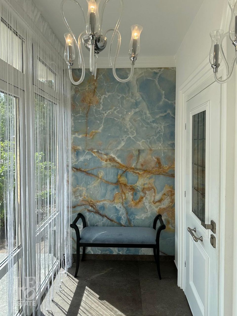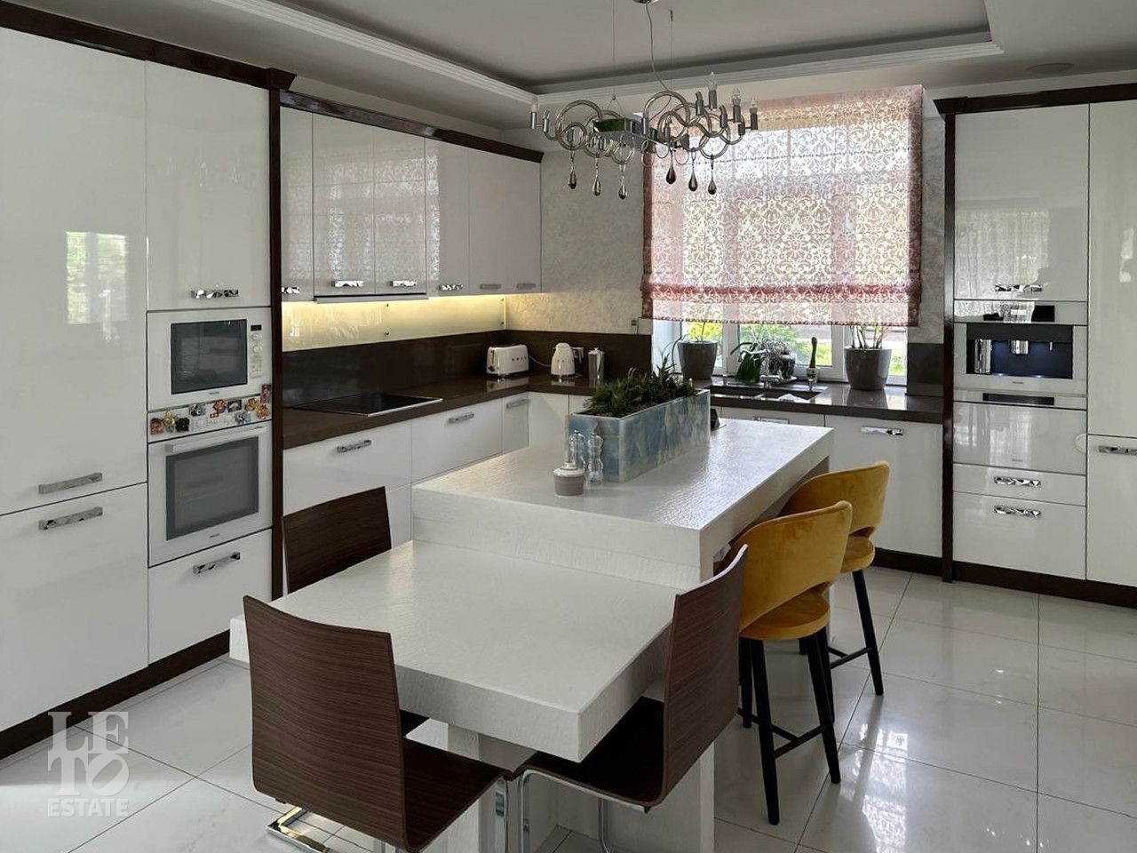 Загородный дом построен из керамического кирпича на надежном фундаменте — монолитной плите, кровля выполнена из мягкой черепицы, вокруг дома обустроена отмостка, а дорожки вымощены брусчаткой, что подчеркивает ухоженность территории. Внутренняя отделка и наполнение интерьера выполнены в современном стиле с использованием спокойных цветовых гамм, создающих атмосферу умиротворения. В зоне гостиной проектом предусмотрен эффектный «второй свет», который в сочетании с широкоформатными оконными проемами наполняет дом воздухом и светом, визуально расширяя пространство. Во всех помещениях с плиточным покрытием смонтирована система «теплого пола», обеспечивающая комфортный микроклимат в любое время года. Центральным украшением гостиной стал двухсторонний дровяной камин, который изящно разделяет функциональные зоны столовой и гостиной, создавая неповторимую атмосферу уюта и становясь сердцем дома. В доме установлена мебель и бытовая техника премиальных брендов, что позволяет начать комфортную жизнь без дополнительных вложений.