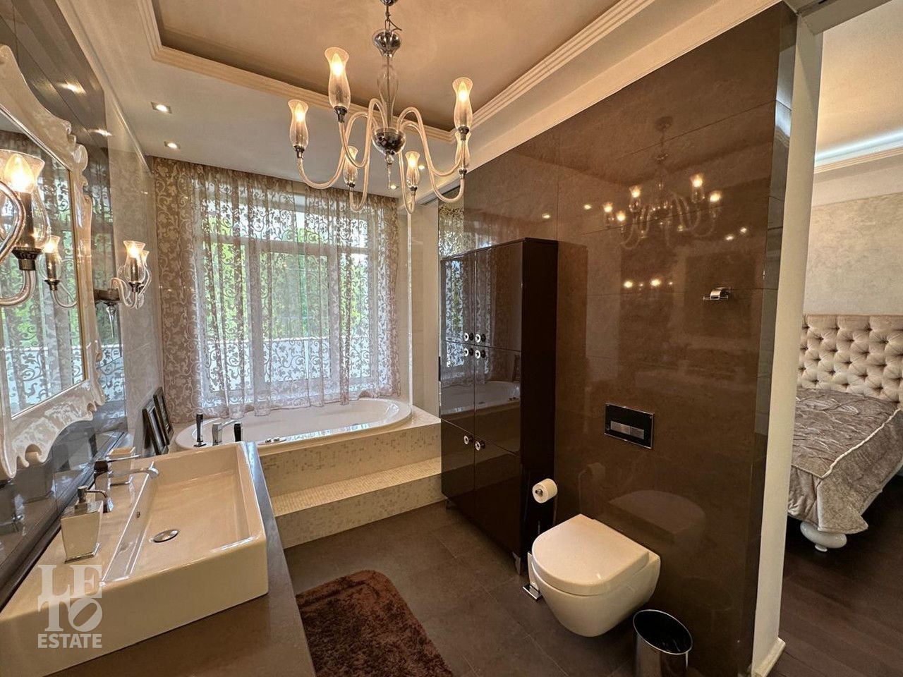 Земельный участок площадью 13 соток благоустроен: выполнен ландшафтный дизайн, дорожки вымощены тротуарной плиткой, высажены декоративные кустарники, организован автополив и уличное освещение. На участке вас ждет полноценная инфраструктура для отдыха: гостевой дом с баней и ванной-джакузи, зоной барбекю и обогреваемой верандой, на которой можно с удовольствием проводить время не только летом, но и в трескучие морозы. Здание гостевого дома построено в едином стиле с жилым домом, образуя целостный архитектурный ансамбль, а центральные коммуникации, включая ливневую канализацию, обеспечивают высочайший уровень комфорта и надежности.