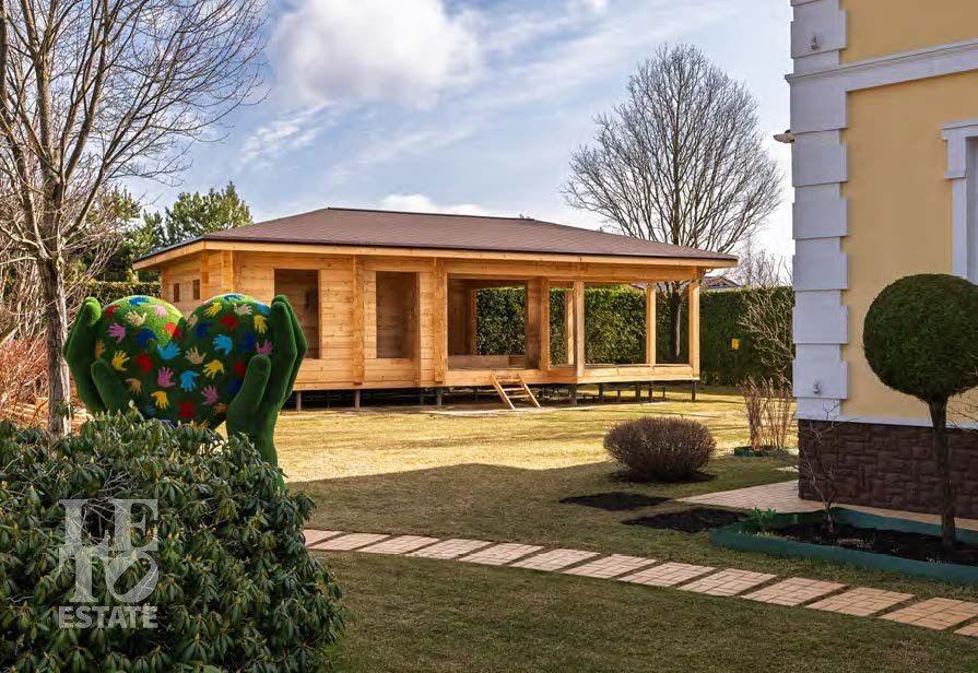 На участке площадью 17,4 соток расположены: дом (200 кв.м) с 5-тью спальнями и дом персонала (250 кв.м) с тремя комнатами, 2-мя гаражами- мойками и цоколем.
