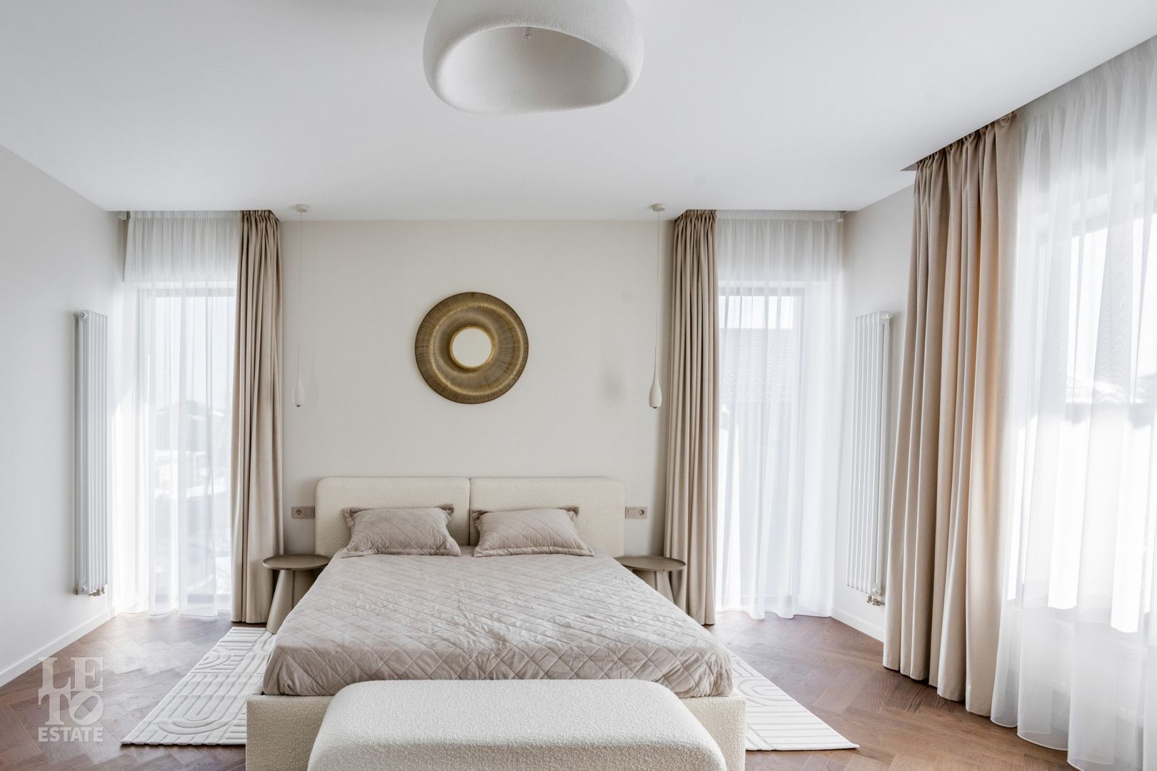 Второй этаж: холл, мастер-спальня со своей гардеробной и ванной комнатой, две спальни, санузел, постирочная.