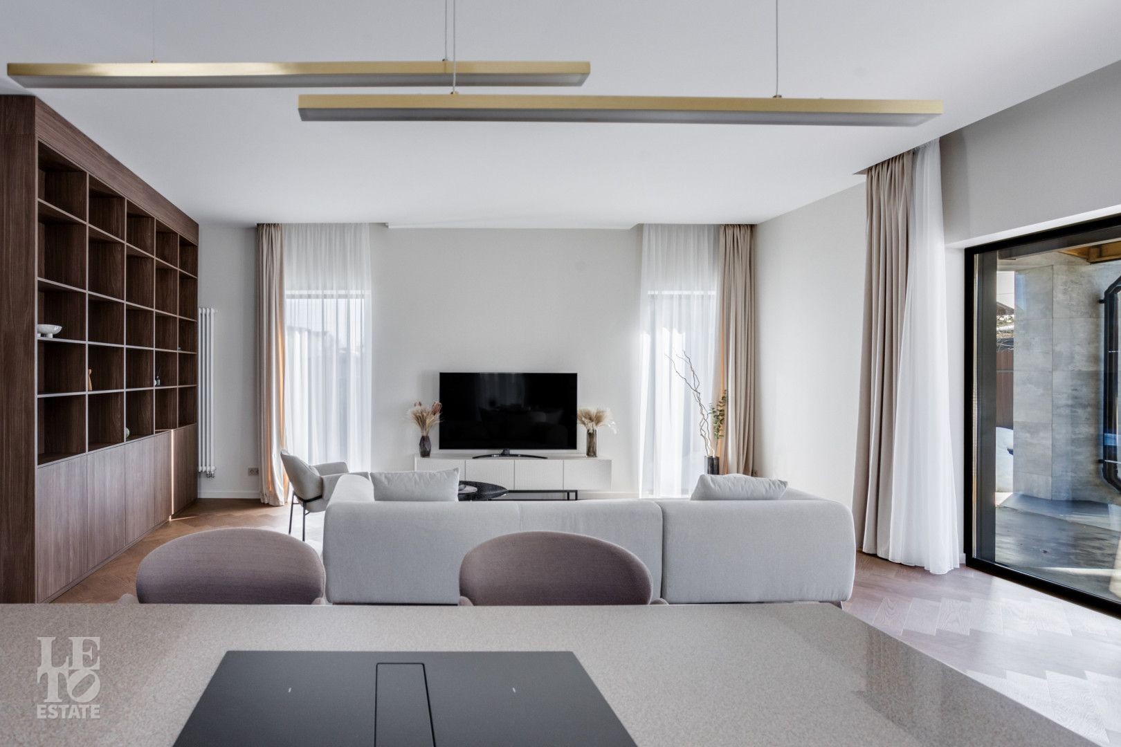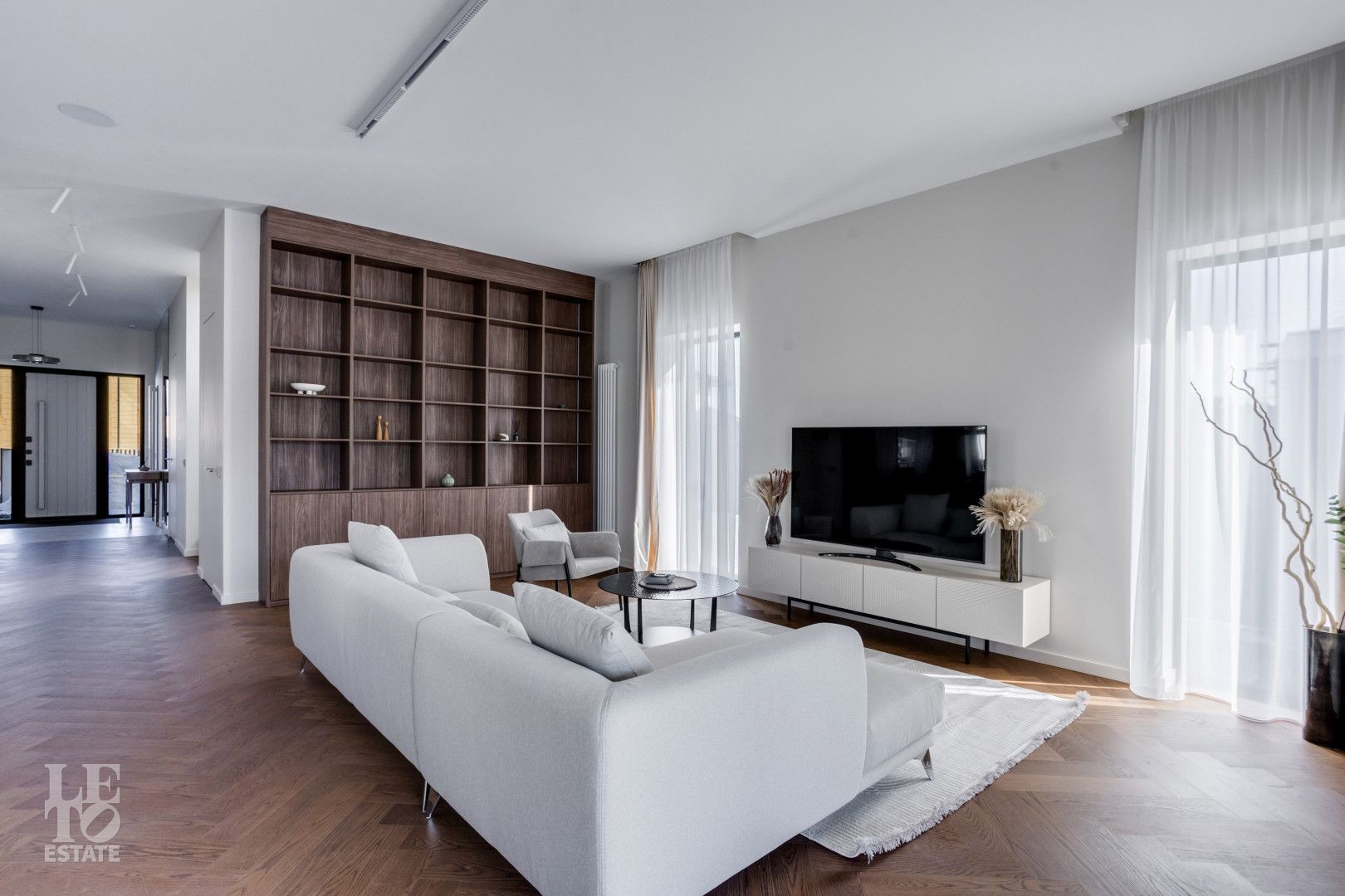 Отделка выполнена в современном стиле, по индивидуальному проекту, использовались дорогие, качественные материалы.