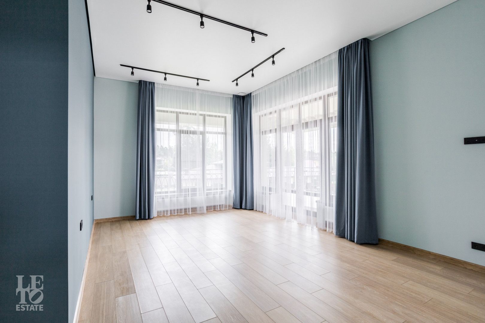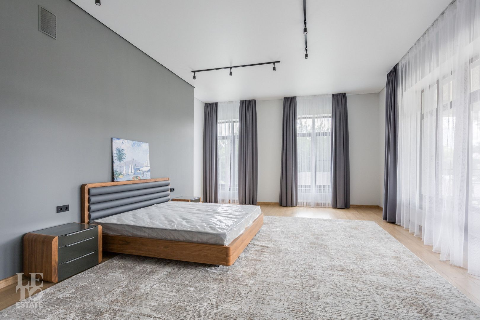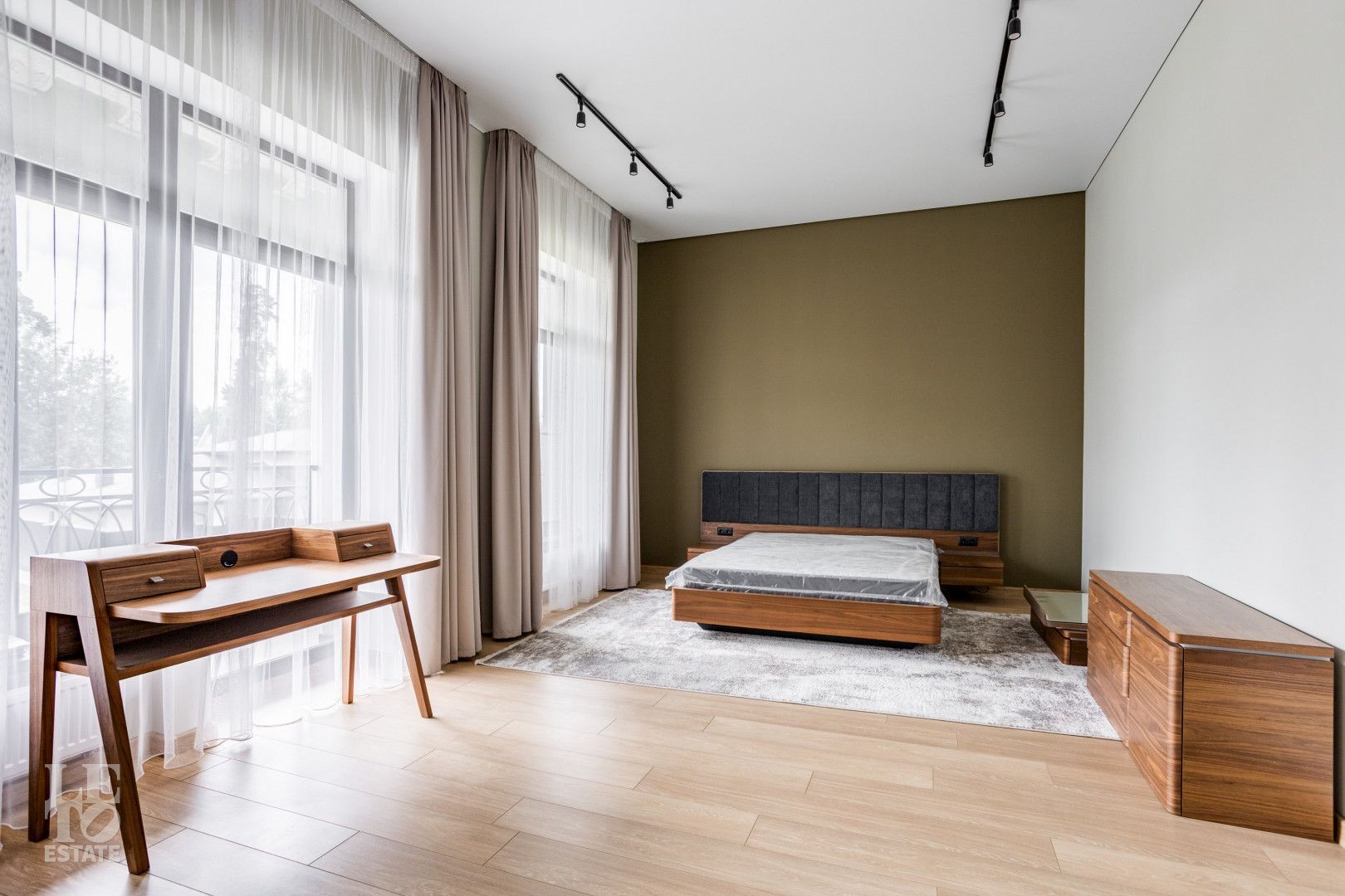 Второй этаж - мастер-спальня с санузлом и гардеробной, четыре спальни со своими гардеробными и санузлами, три балкона по всему периметру.