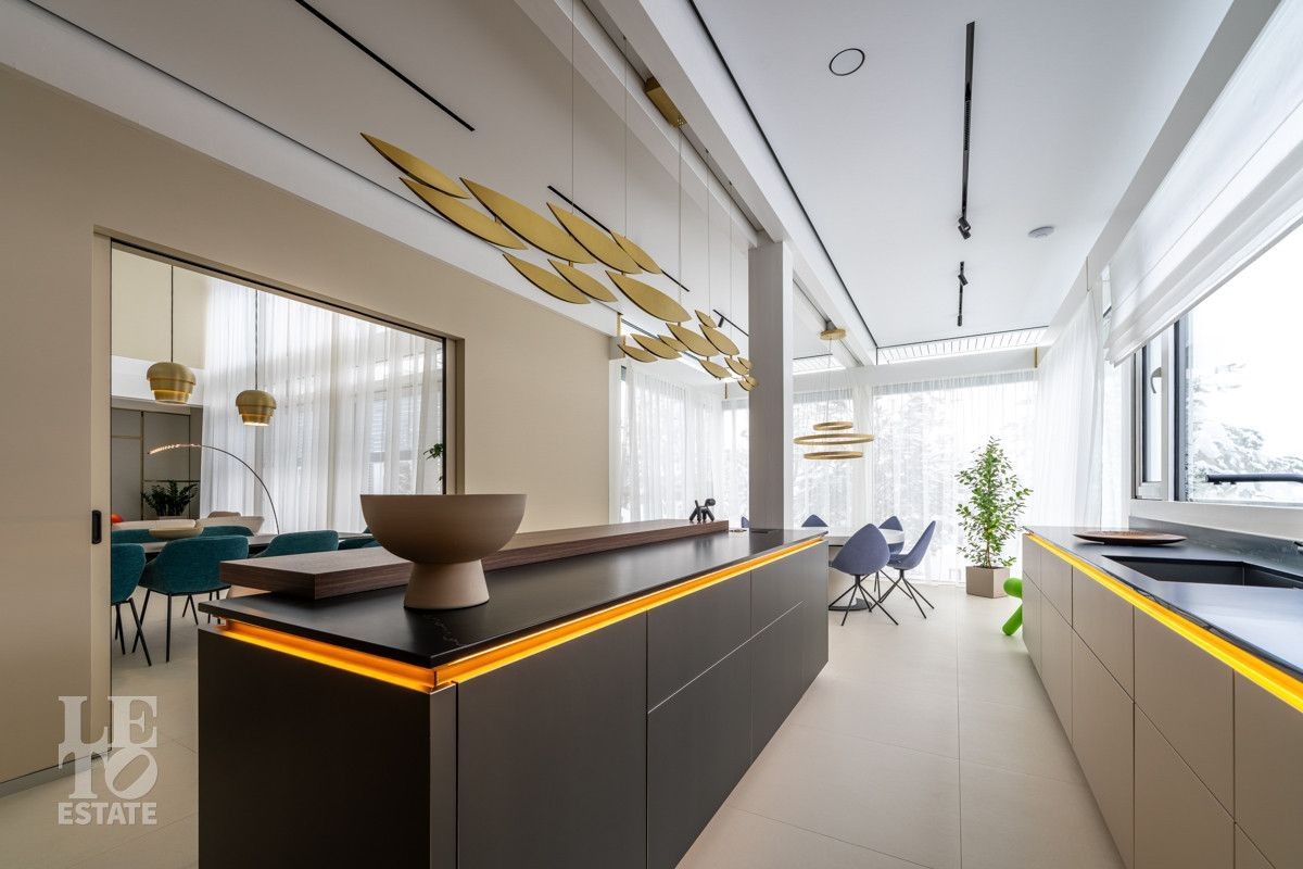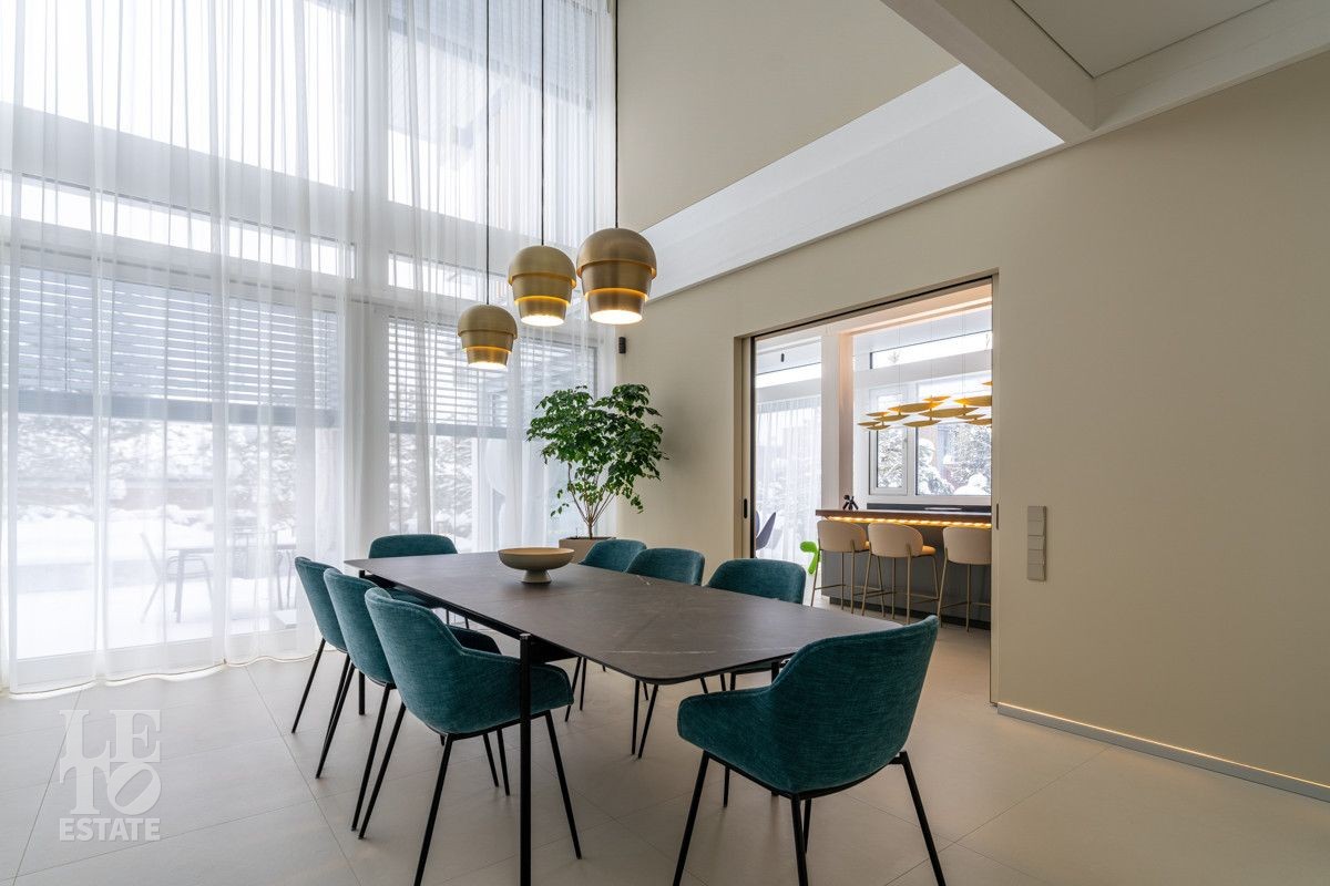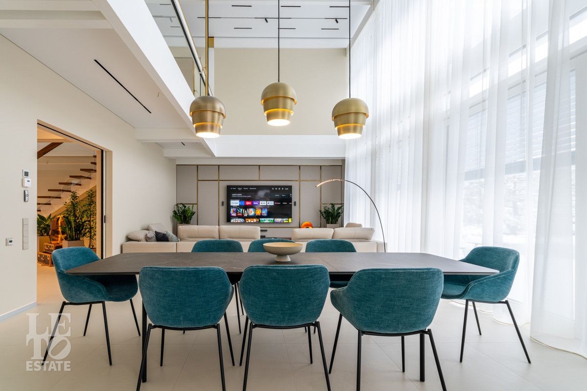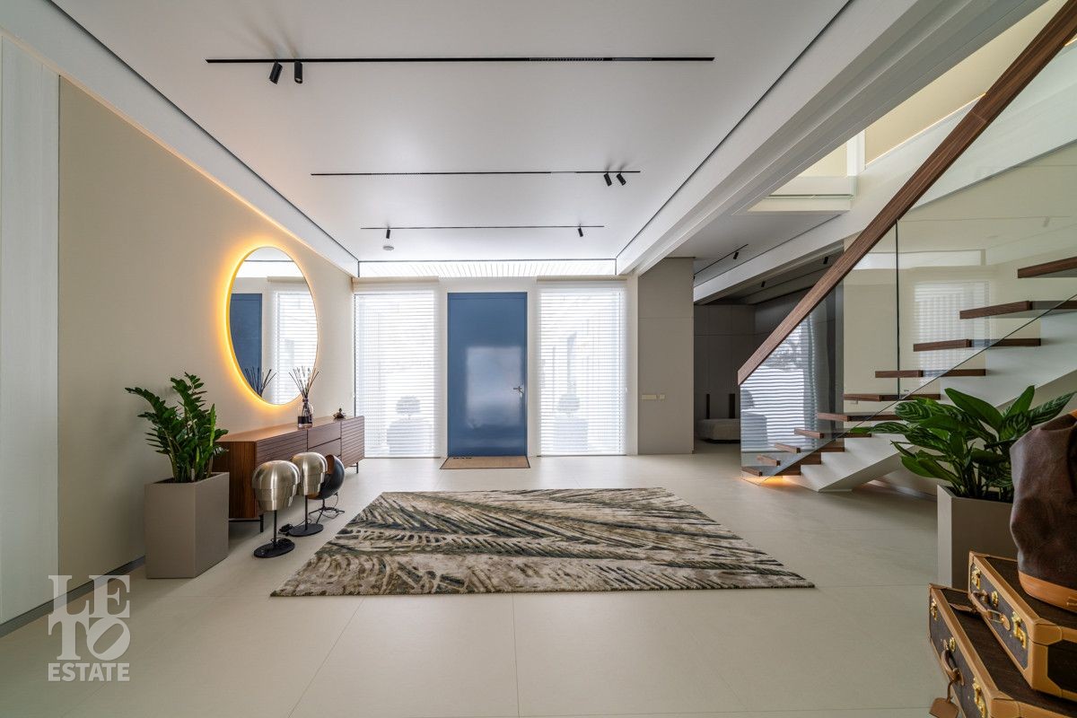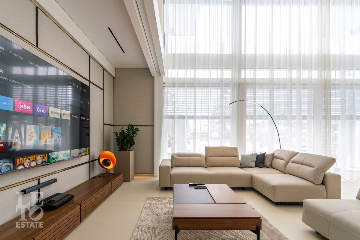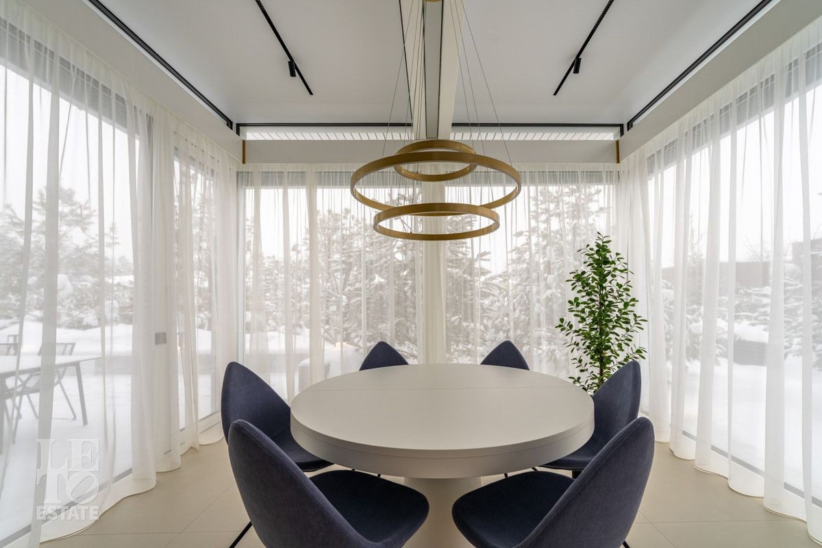 В доме выполнен дизайнерский современный ремонт, использованы европейские дорогостоящие материалы, кухня с мебелью от немецкой компании Leicht полностью оснащена техникой Miele (включая встроенную кофемашину), установлен холодильник и морозильник Liebherr. Во всех комнатах функциональная и современная мебель BoConcept. В ванных комнатах сантехника Hansgrohe и TECE ONE. Современное канальное кондиционирование по всему дому, а также индивидуальное кондиционирование в каждой комнате - решение, которое позволяет создать свой уникальный климат. Установлены увлажнение и очистка воздуха. Немецкая система Bizzard с коллекторными группами, работающая совместно с TECE, обеспечивает эффективное распределение воздуха по всему дому, включая санузлы. Установлена интегрированная система пылеудаления Bizzard со встроенными шлангами для удобства уборки всего дома.