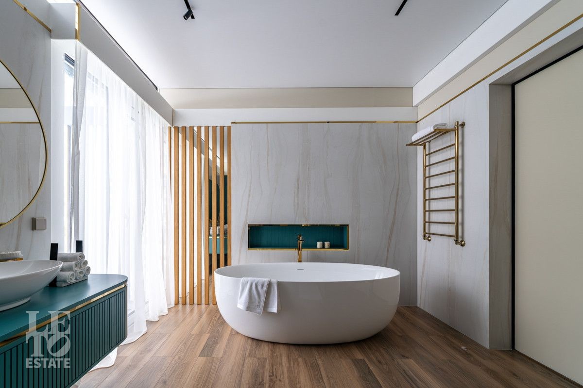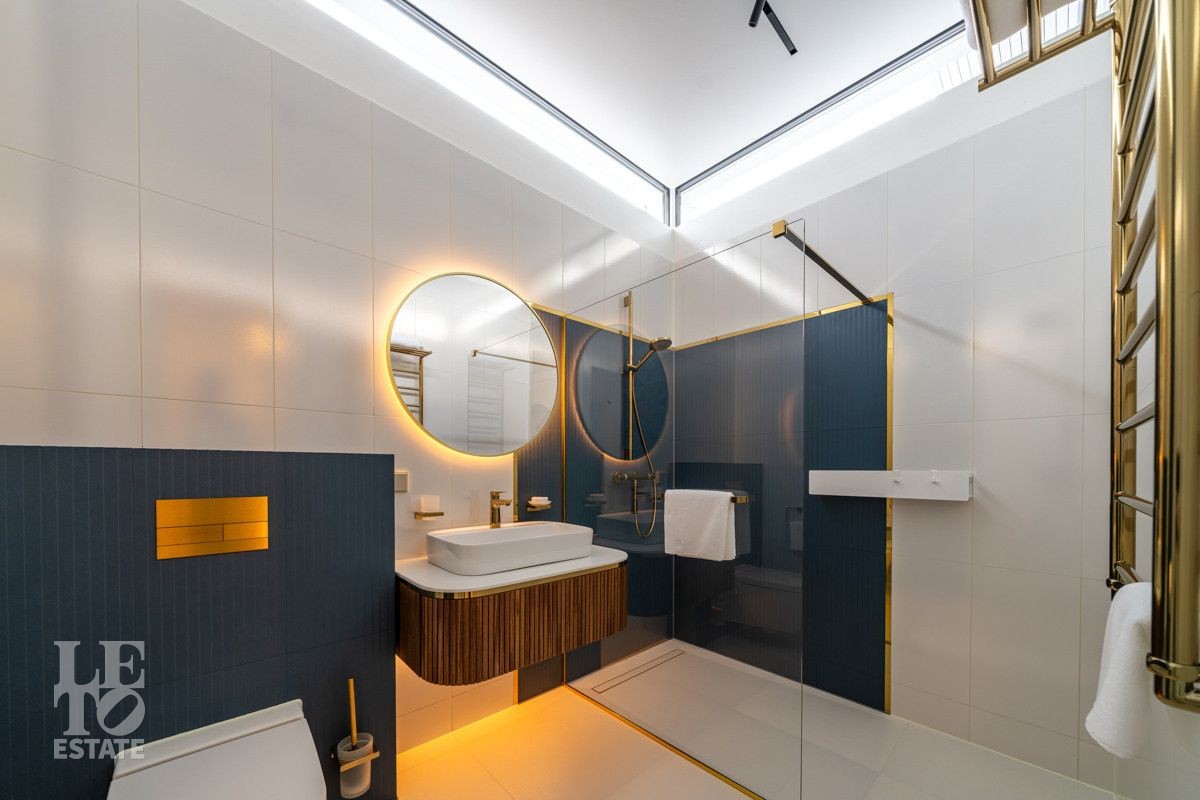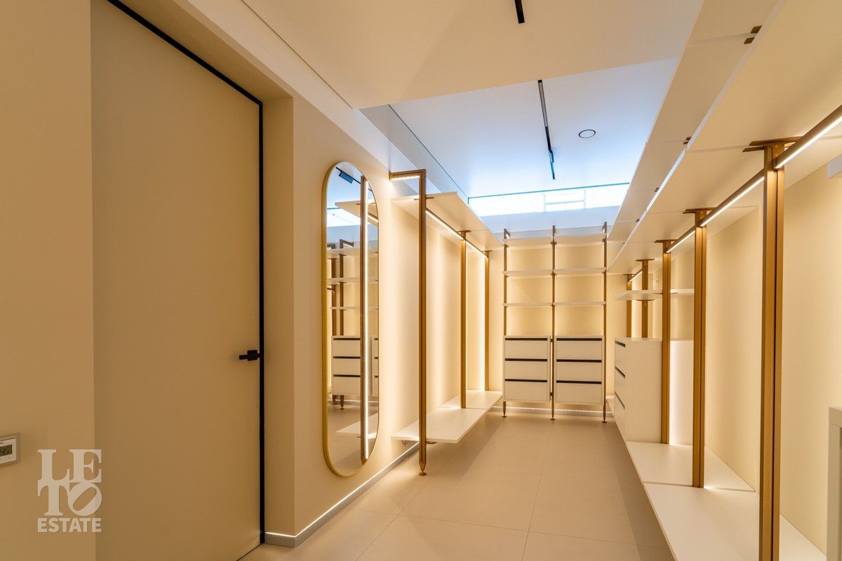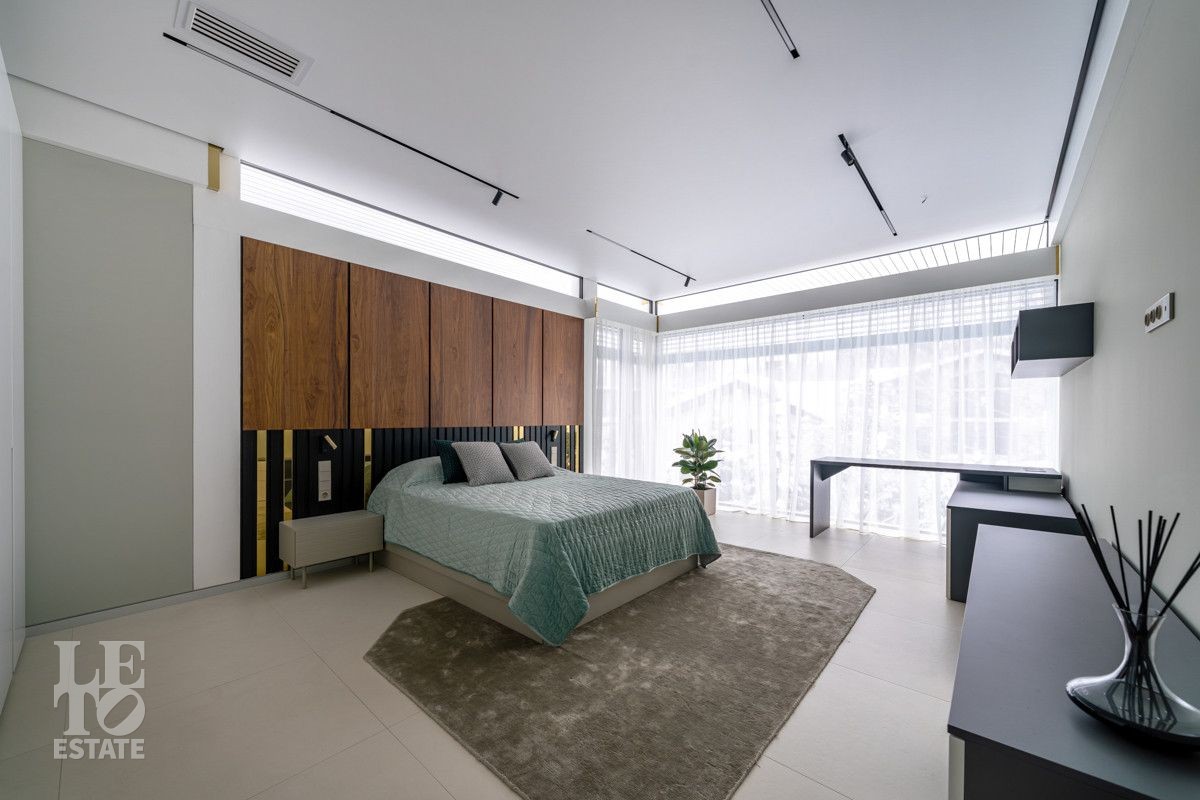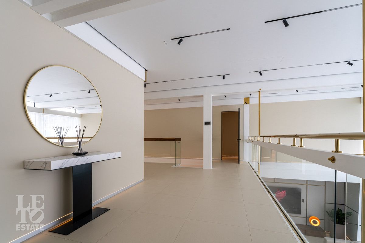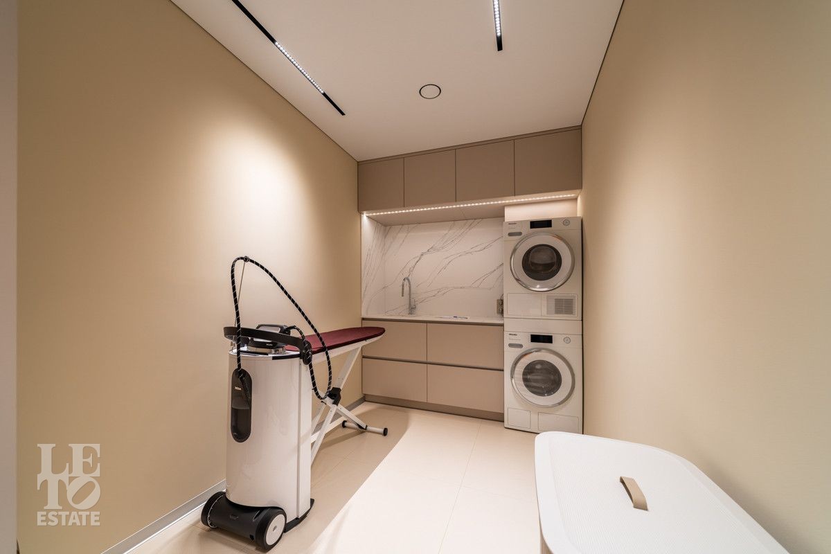 В доме выполнен дизайнерский современный ремонт, использованы европейские дорогостоящие материалы, кухня с мебелью от немецкой компании Leicht полностью оснащена техникой Miele (включая встроенную кофемашину), установлен холодильник и морозильник Liebherr. Во всех комнатах функциональная и современная мебель BoConcept. В ванных комнатах сантехника Hansgrohe и TECE ONE. Современное канальное кондиционирование по всему дому, а также индивидуальное кондиционирование в каждой комнате - решение, которое позволяет создать свой уникальный климат. Установлены увлажнение и очистка воздуха. Немецкая система Bizzard с коллекторными группами, работающая совместно с TECE, обеспечивает эффективное распределение воздуха по всему дому, включая санузлы. Установлена интегрированная система пылеудаления Bizzard со встроенными шлангами для удобства уборки всего дома.