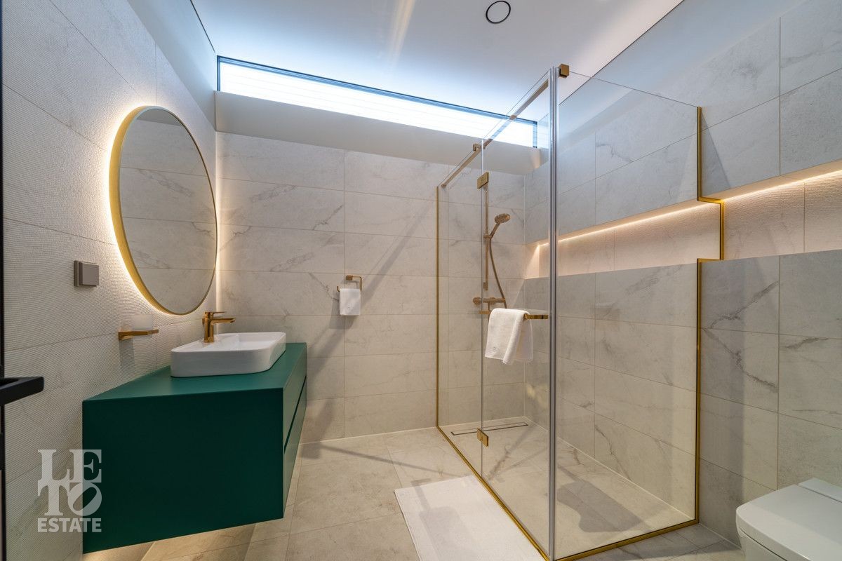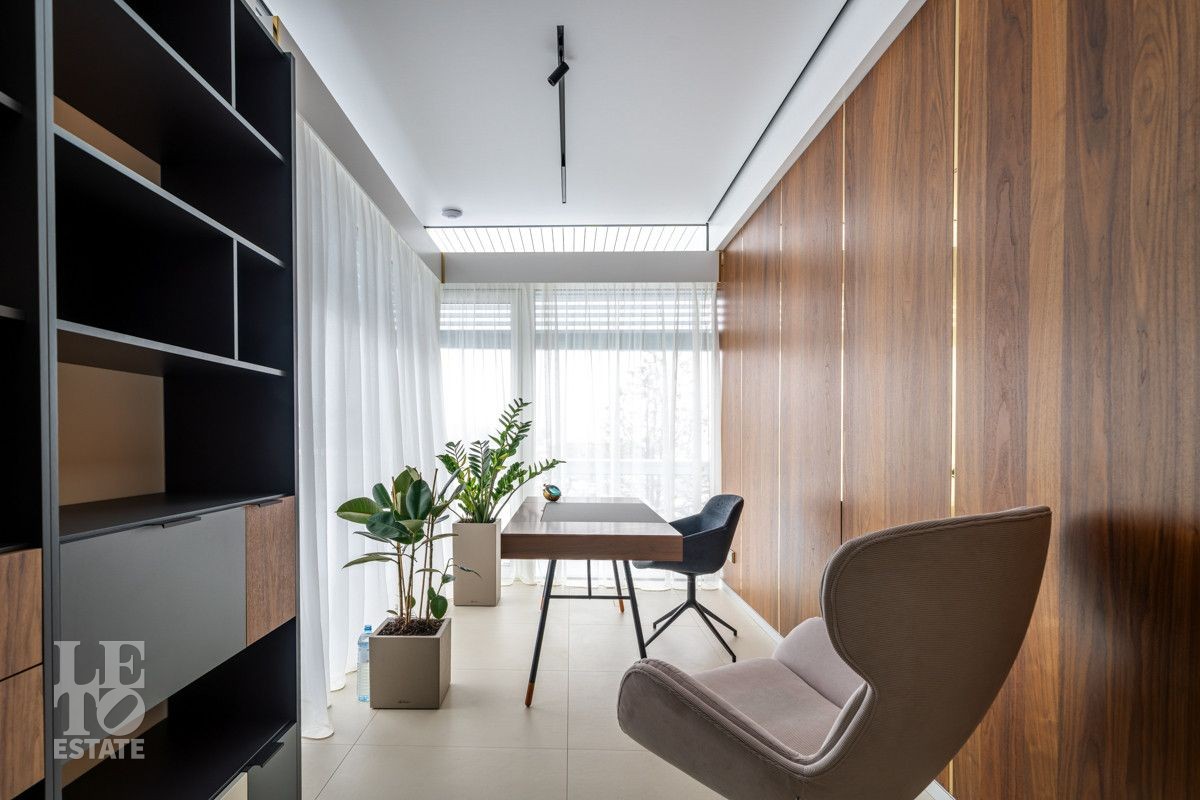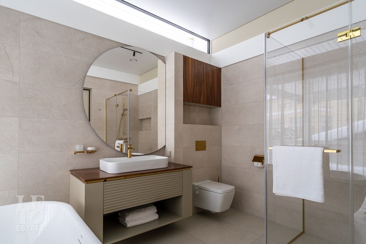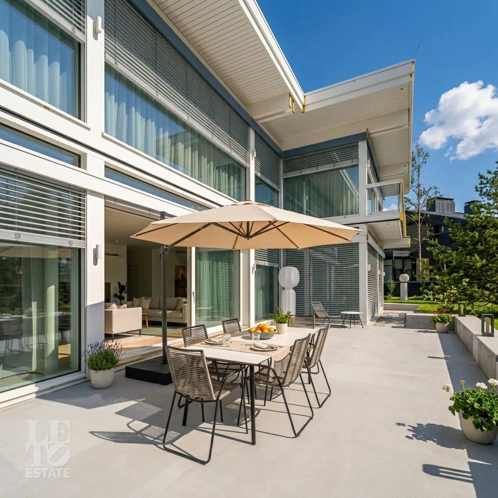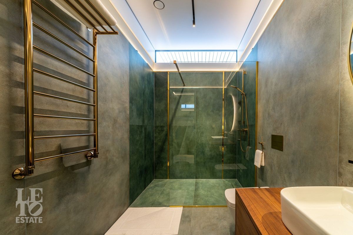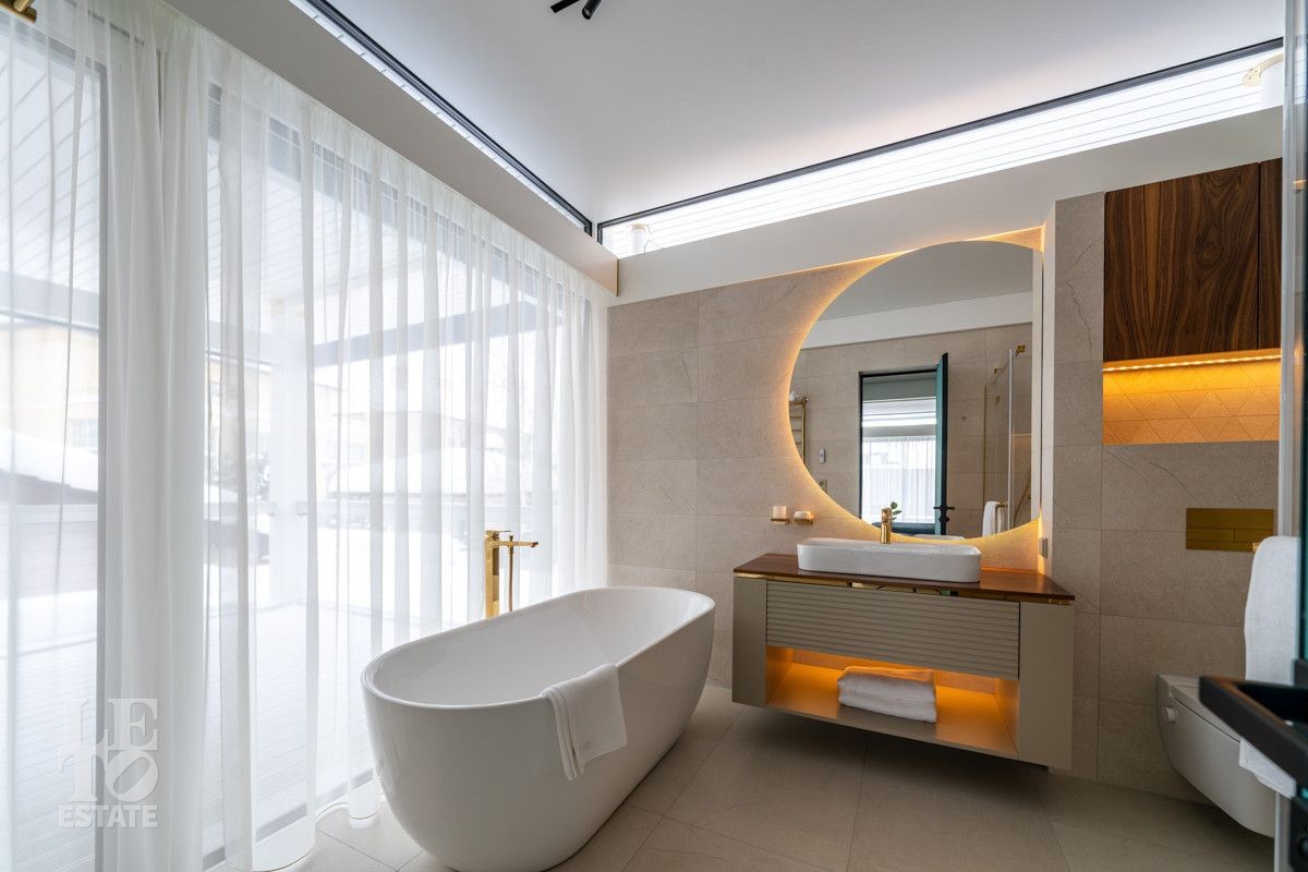 В доме выполнен дизайнерский современный ремонт, использованы европейские дорогостоящие материалы, кухня с мебелью от немецкой компании Leicht полностью оснащена техникой Miele (включая встроенную кофемашину), установлен холодильник и морозильник Liebherr. Во всех комнатах функциональная и современная мебель BoConcept. В ванных комнатах сантехника Hansgrohe и TECE ONE. Современное канальное кондиционирование по всему дому, а также индивидуальное кондиционирование в каждой комнате - решение, которое позволяет создать свой уникальный климат. Установлены увлажнение и очистка воздуха. Немецкая система Bizzard с коллекторными группами, работающая совместно с TECE, обеспечивает эффективное распределение воздуха по всему дому, включая санузлы. Установлена интегрированная система пылеудаления Bizzard со встроенными шлангами для удобства уборки всего дома.