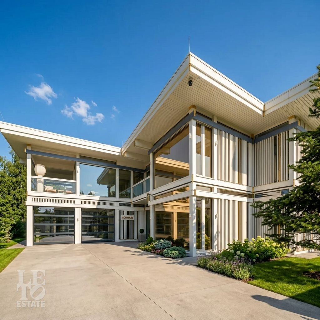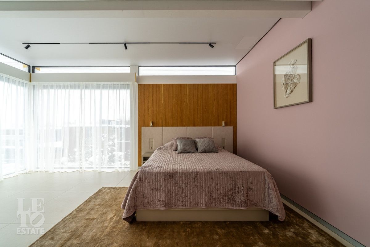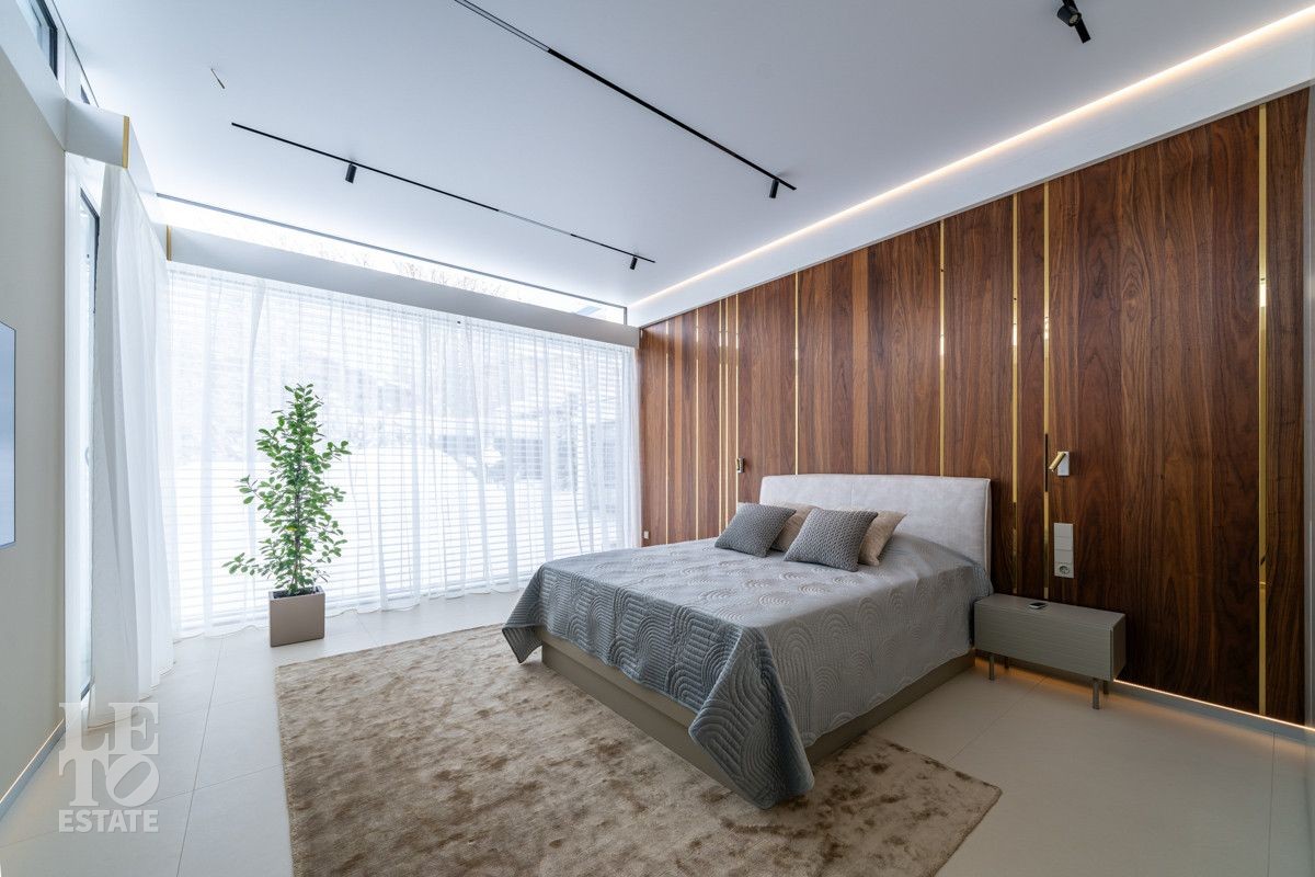 Этот дом – воплощение стиля: необычная современная архитектура сочетается с живописным участком. Дом выполнен по фахверковой технологии с использованием конструкционного клеенного бруса. Безрамные двухкамерные стеклопакеты с аргоном и энергосберегающими рамками обеспечивают отличную теплоизоляцию. Панорамные окна в пол создает ощущение дополнительного пространства и света. Автоматические шторы Somfy с индивидуальными пультами управления защищают от перегрева и создают комфортную атмосферу в любое время суток.