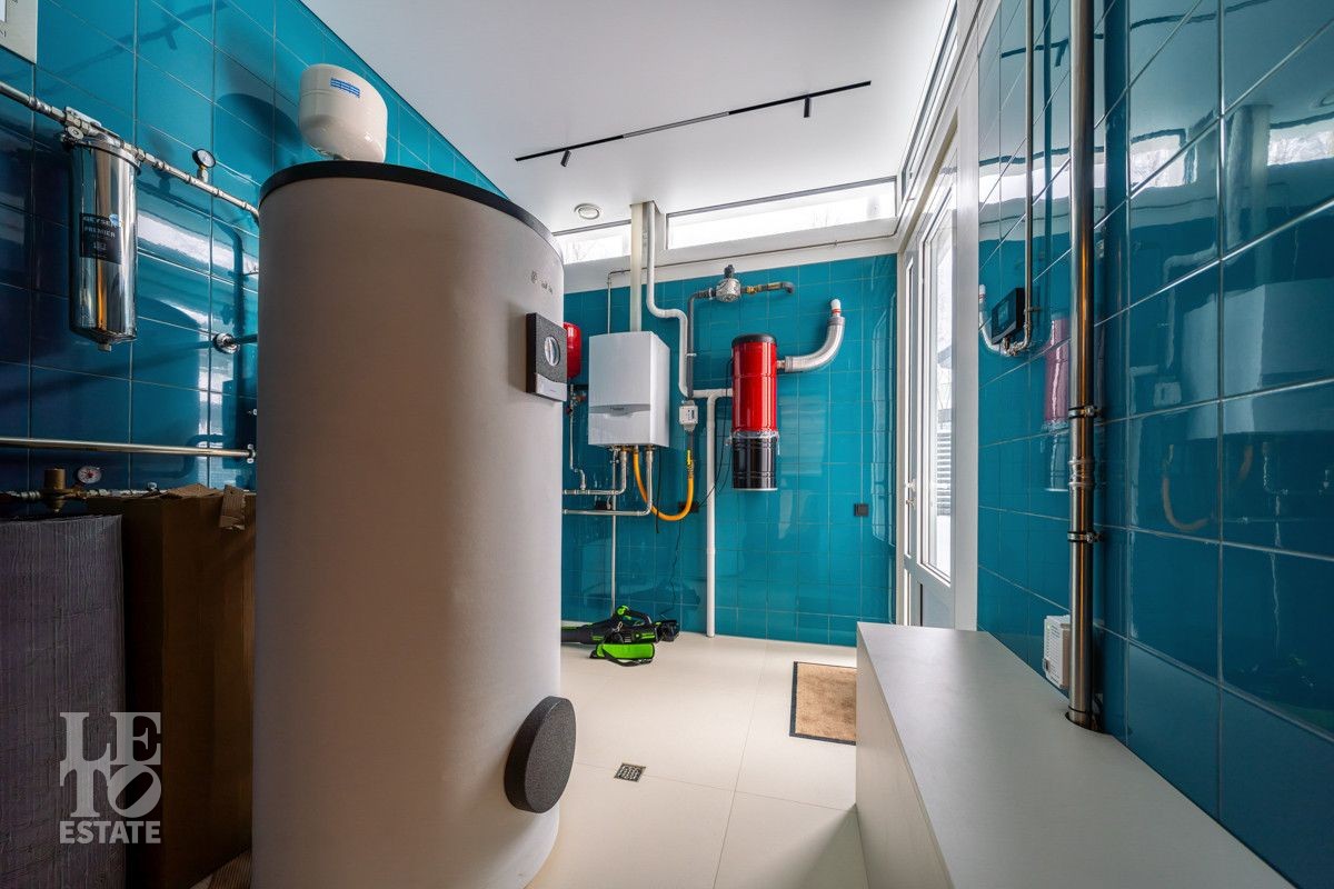 В доме все центральные коммуникации: газоснабжение, электричество, водопровод, канализация. Оборудована котельная, установлено оборудование Vailant. Полная автоматизация управления.