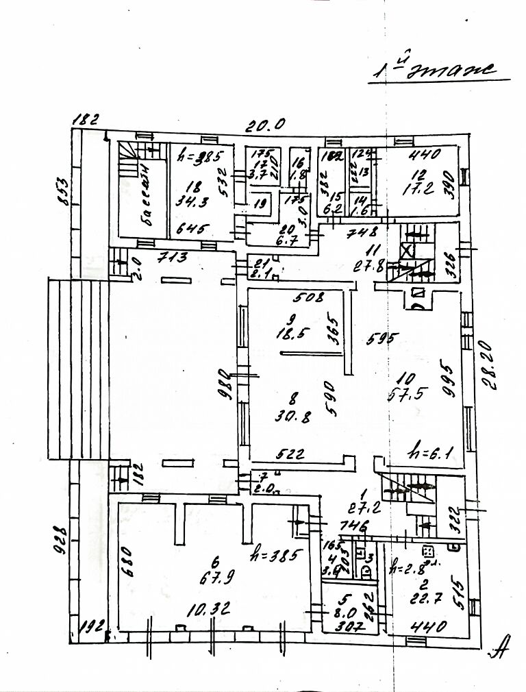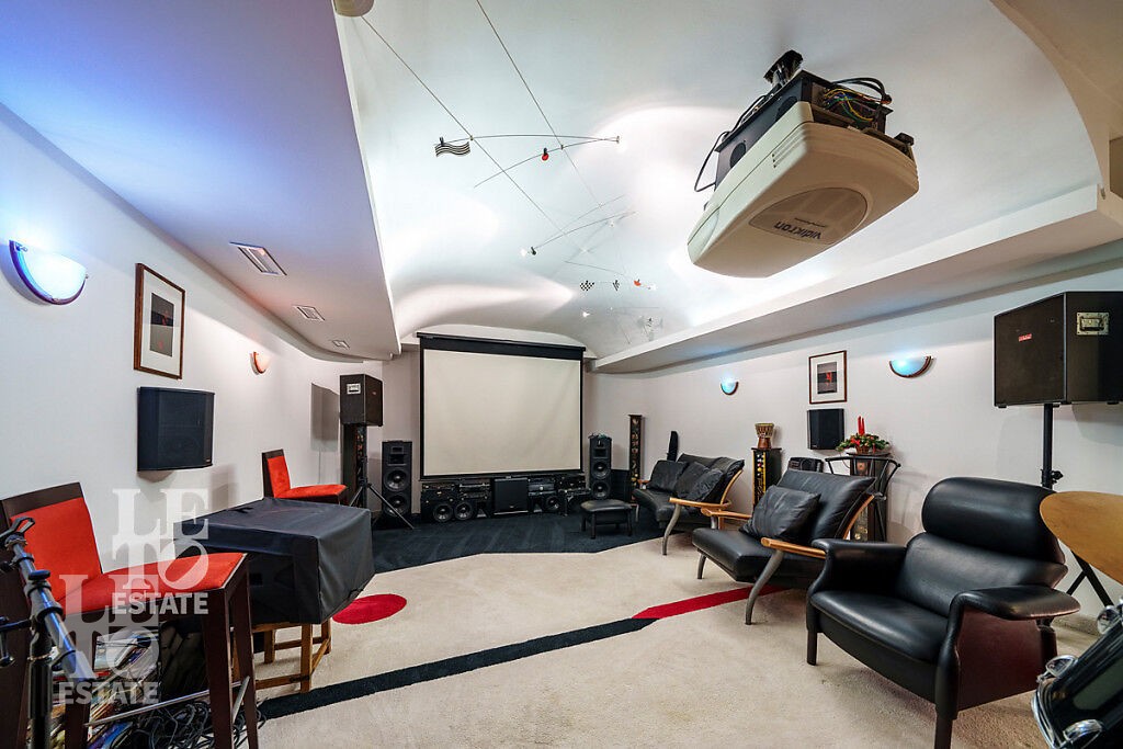 Цокольный этаж: кинотеатр/киностудия, гардеробная, склад, бойлерная, технические помещения
