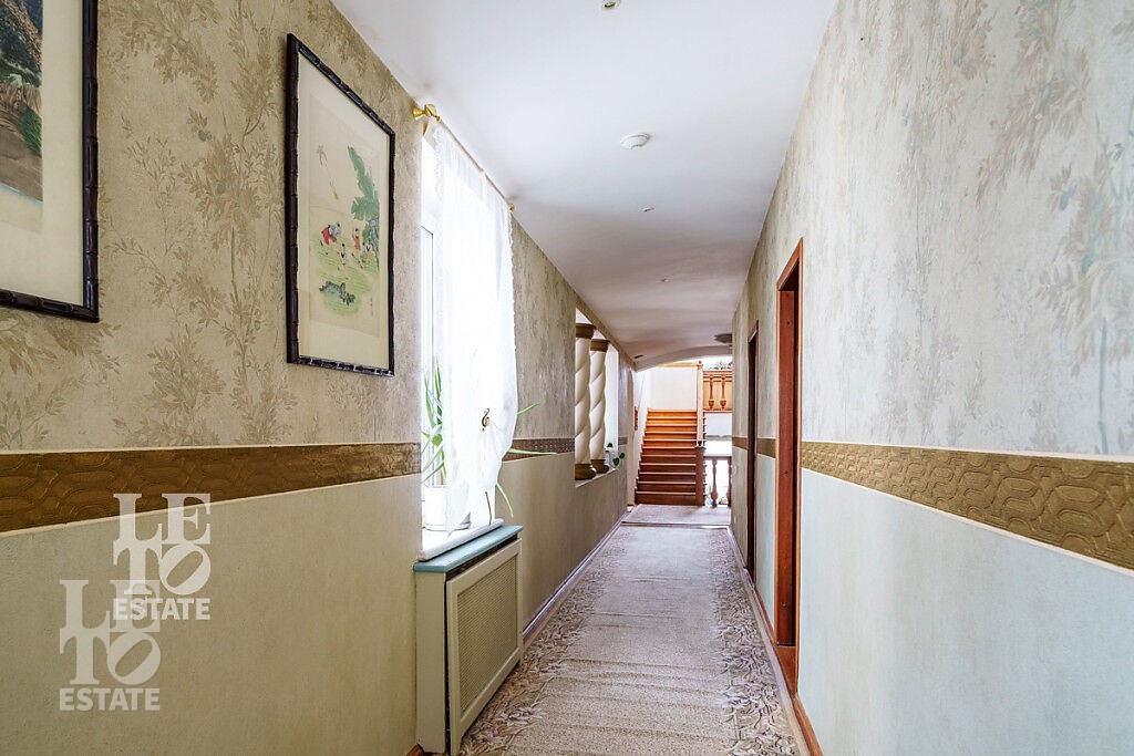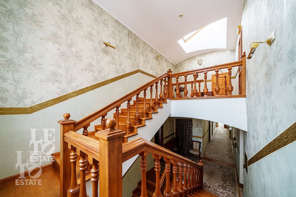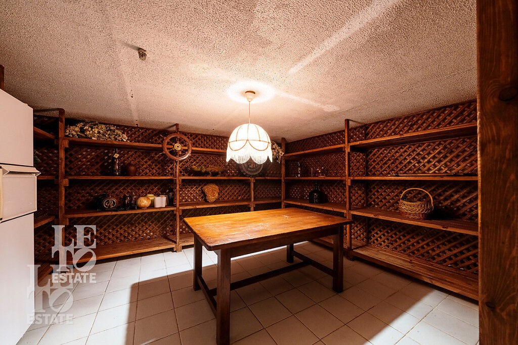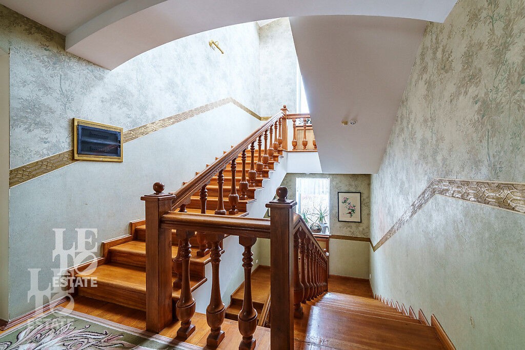 Внутри дома сделан ремонт с использованием самых высококачественных материалов: лестница, перила, двери и полы выполнены из массива дуба, стены гостиной отделаны мрамором, а на полу выложен двуцветный паркет из массива дуба, в зоне отдыха расположена барная стойка, выполненная из оникса.