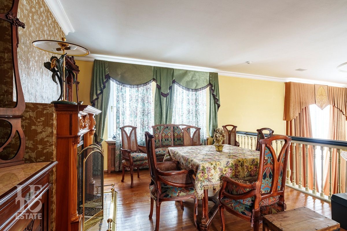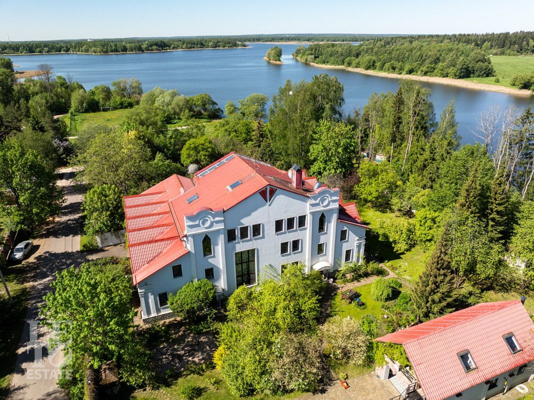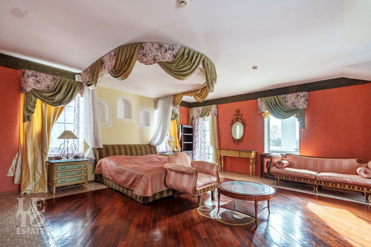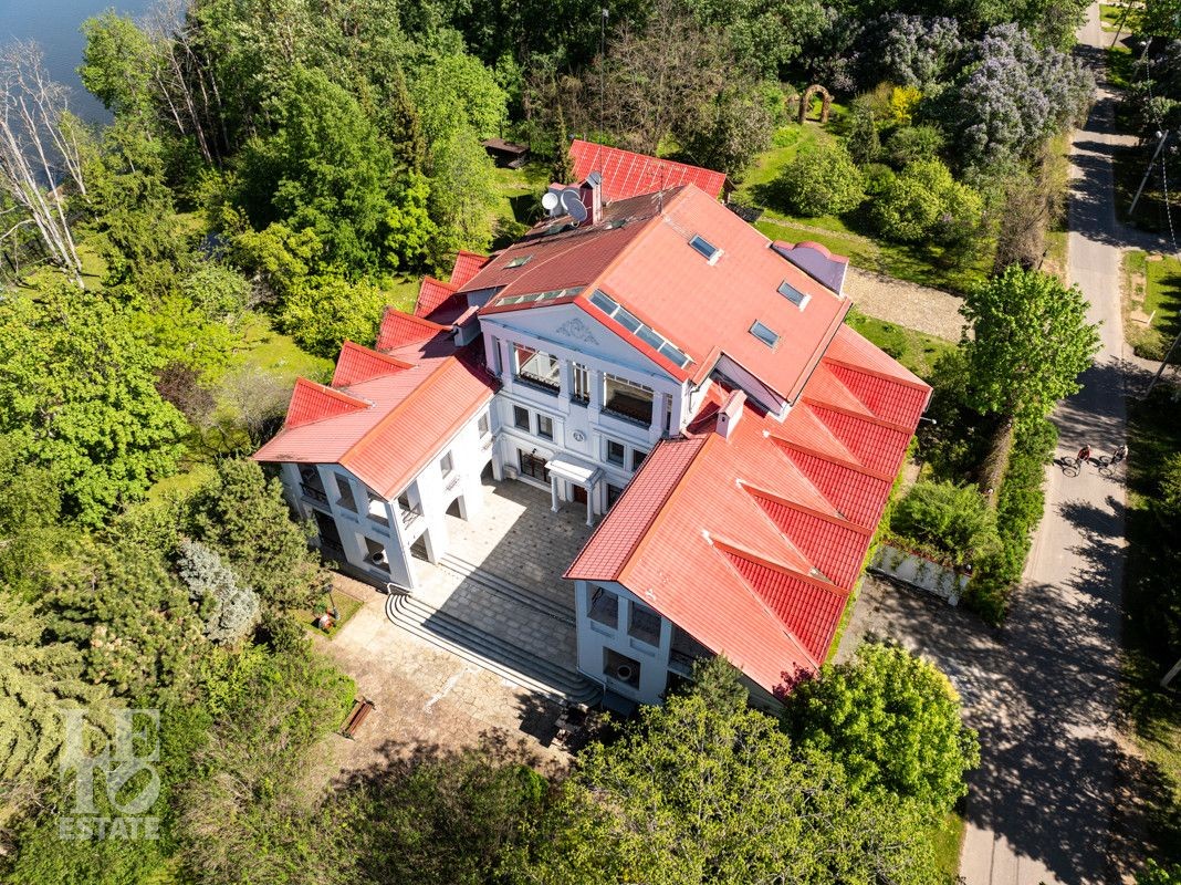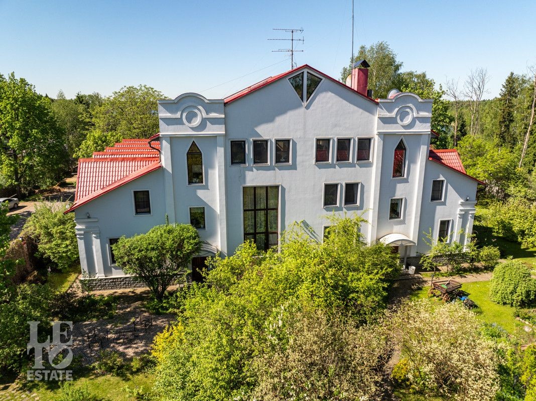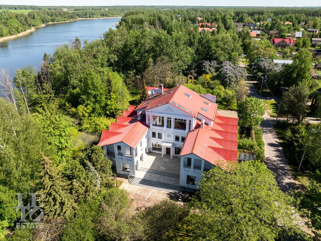 Вашему вниманию представляется шикарная усадьба на первой линии Истpинскoго водохранилища с собственным пирсом, расположенная в 45 км от МКАД по Ленинградскому шоссе. Четырех-этажный дом построен из кирпича на монолитном фундаменте с монолитными перекрытиями в 1999 году, светлый фасад здания облицован штукатуркой и декорирован коваными элементами и лепниной. Дом имеет симметричную архитектуру и имеет 2 зеркальных крыла. Имеется пять входов в дом: центральный с центральной фасадной части здания, два входа из разных крыльев с фасадной части, два симметричных с тыльной части и один через гараж. В 2020 был завершен капитальный ремонт.