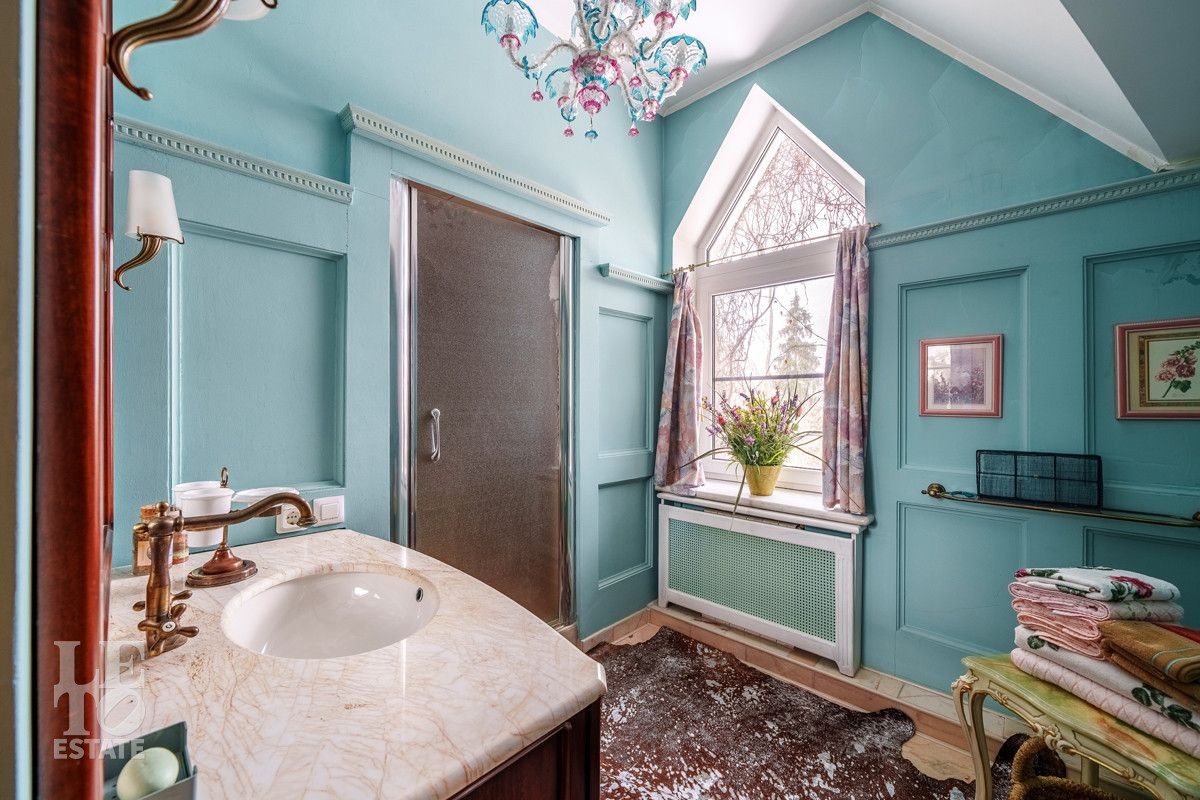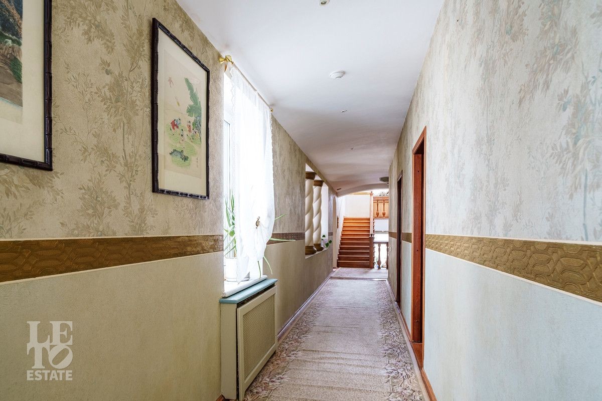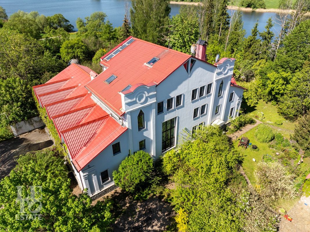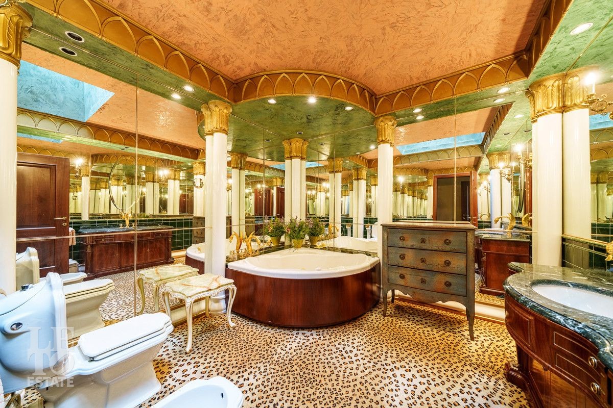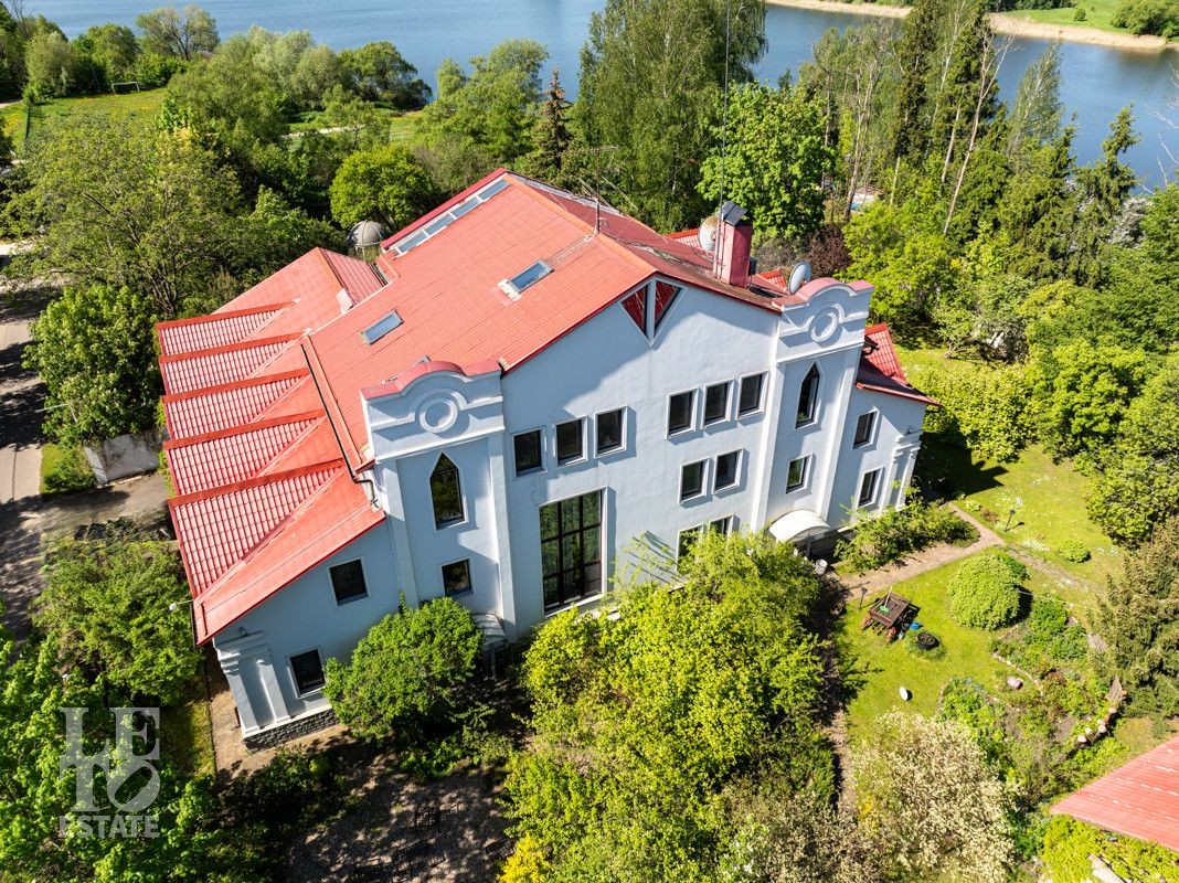Вашему вниманию представляется шикарная усадьба на первой линии Истpинскoго водохранилища с собственным пирсом, расположенная в 45 км от МКАД по Ленинградскому шоссе. Четырех-этажный дом построен из кирпича на монолитном фундаменте с монолитными перекрытиями в 1999 году, светлый фасад здания облицован штукатуркой и декорирован коваными элементами и лепниной. Дом имеет симметричную архитектуру и имеет 2 зеркальных крыла. Имеется пять входов в дом: центральный с центральной фасадной части здания, два входа из разных крыльев с фасадной части, два симметричных с тыльной части и один через гараж. В 2020 был завершен капитальный ремонт.