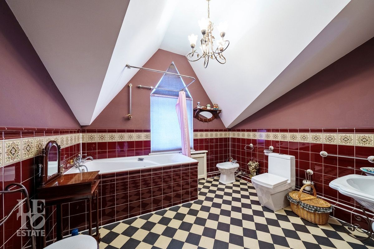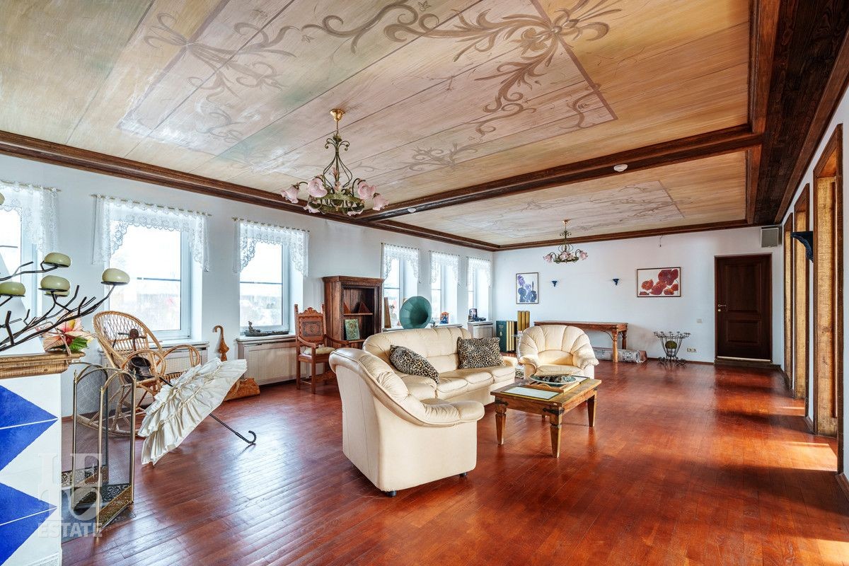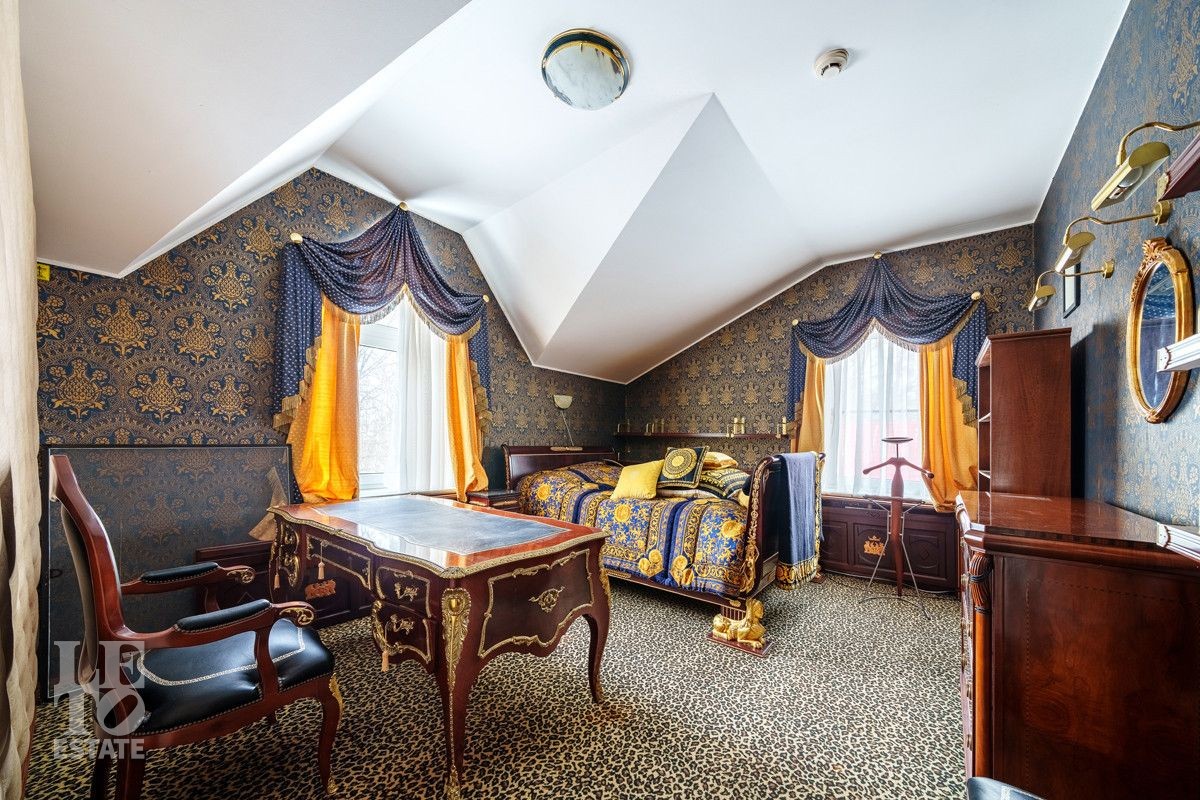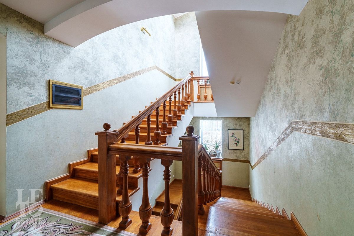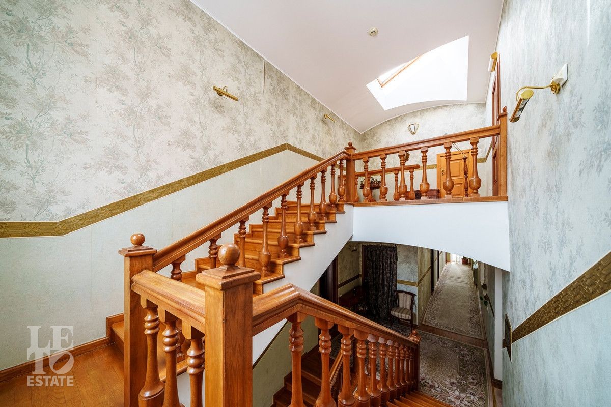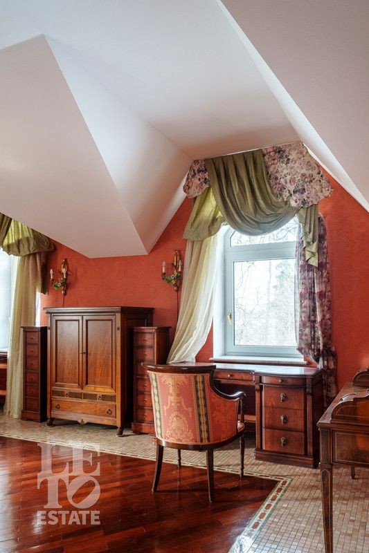 Вашему вниманию представляется шикарная усадьба на первой линии Истpинскoго водохранилища с собственным пирсом, расположенная в 45 км от МКАД по Ленинградскому шоссе. Четырех-этажный дом построен из кирпича на монолитном фундаменте с монолитными перекрытиями в 1999 году, светлый фасад здания облицован штукатуркой и декорирован коваными элементами и лепниной. Дом имеет симметричную архитектуру и имеет 2 зеркальных крыла. Имеется пять входов в дом: центральный с центральной фасадной части здания, два входа из разных крыльев с фасадной части, два симметричных с тыльной части и один через гараж. В 2020 был завершен капитальный ремонт.
