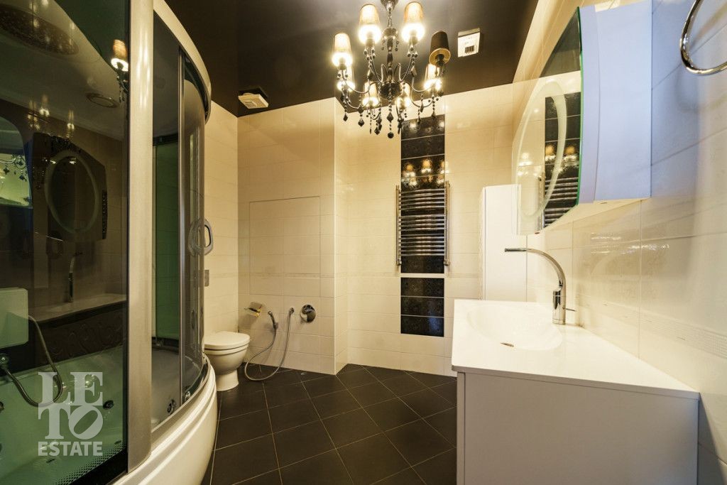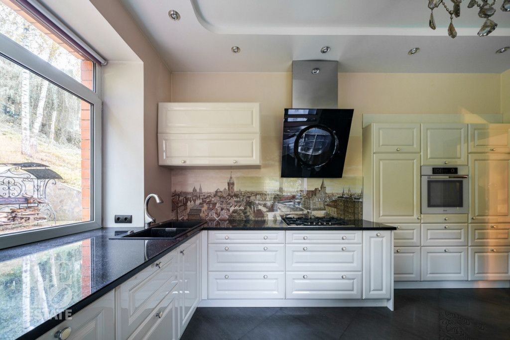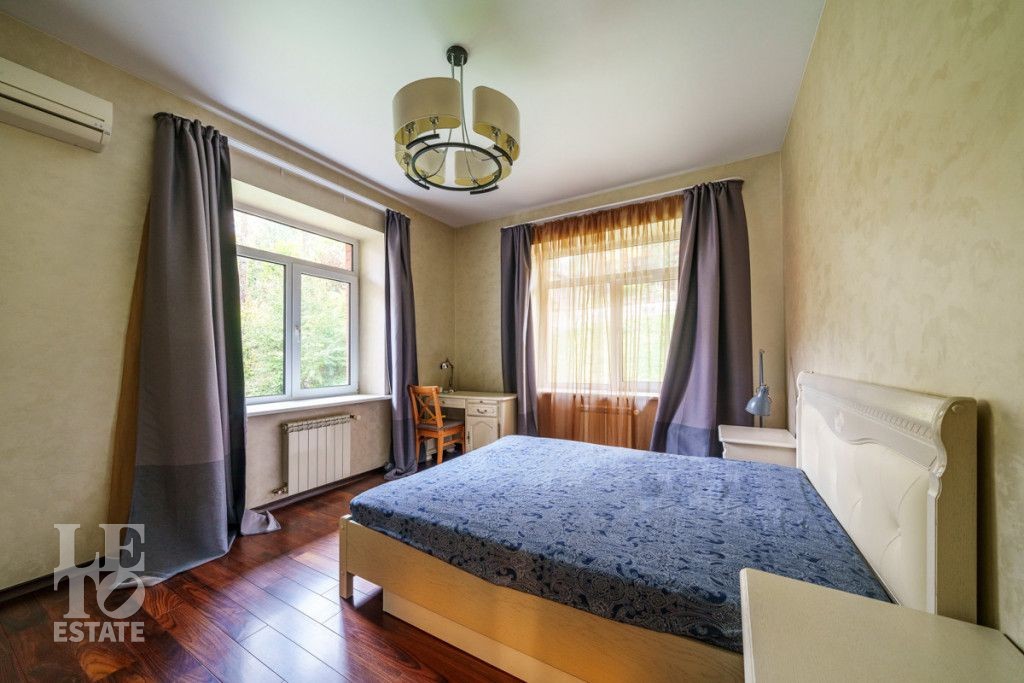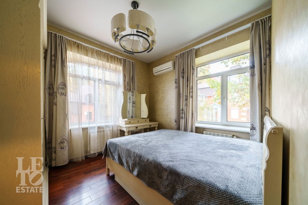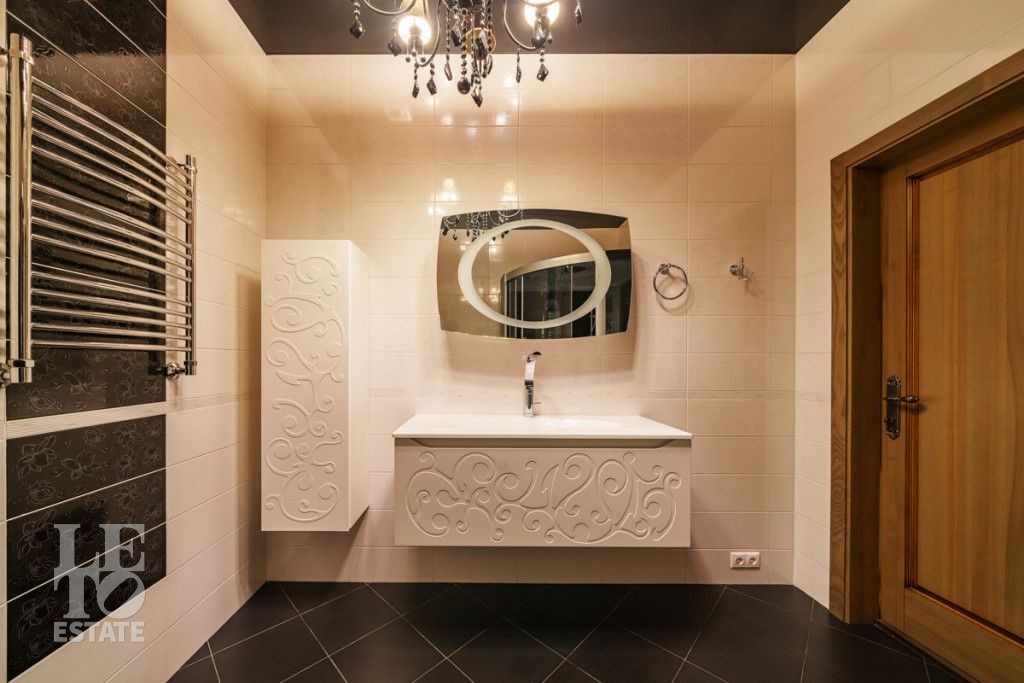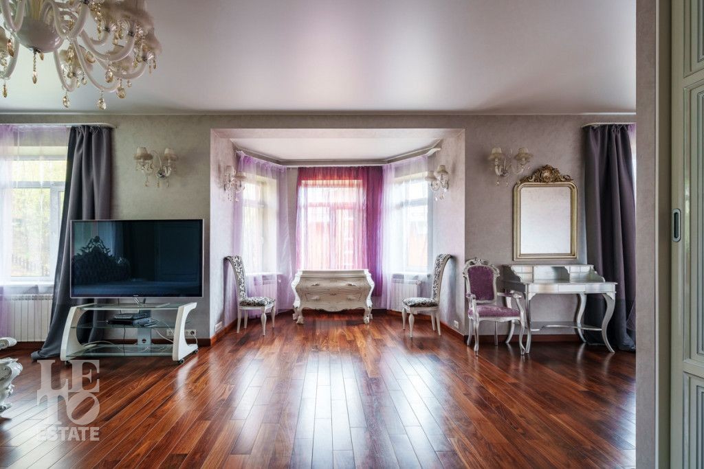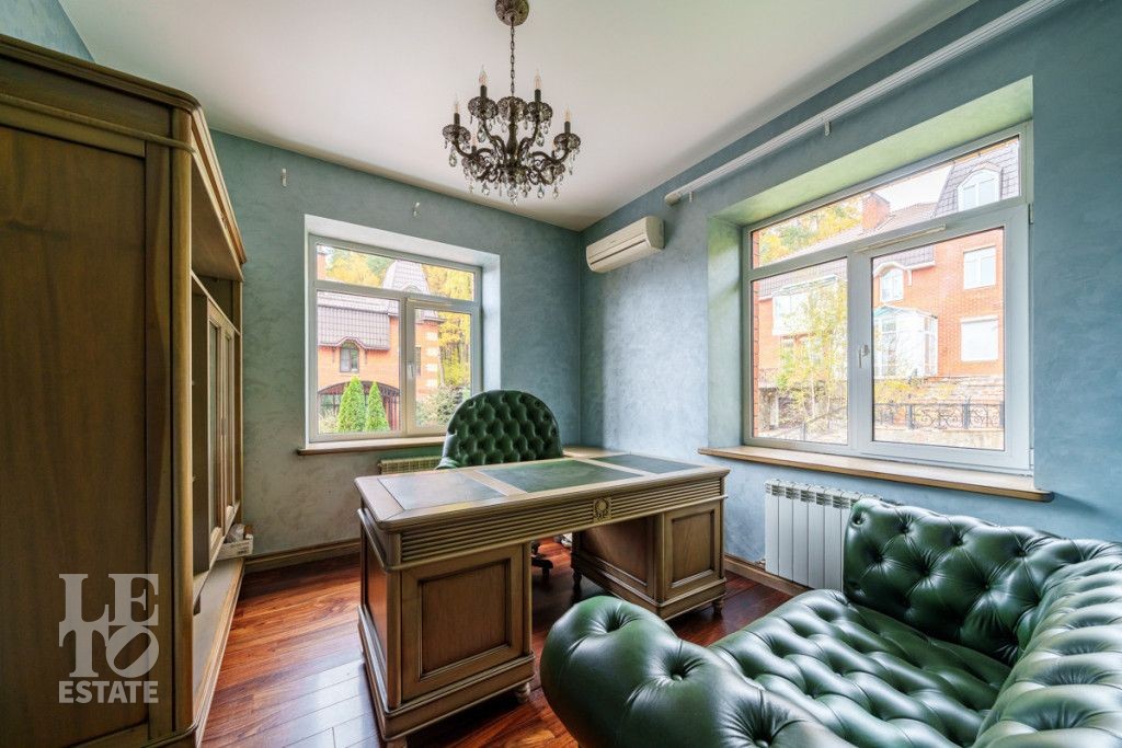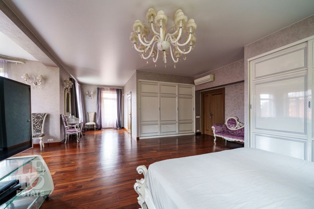 В доме выполнена дорогостоящая отделка: венецианская штукатурка, итальянская плитка, элементы мебели с золочением из сусального золота. На стенах прихожей и гостиной, расписанных вручную, изображены европейские городские пейзажи. Вся мебель итальянская, выполнена на заказ. Установлена техника ведущих немецких брендов Neff, Miele, сантехника Grohe. Чугунный английский камин в гостиной в стиле XVIII века. Великолепные люстры из немецкого и египетского горного хрусталя не просто дополняют интерьер, но и создают чувство завершенности дизайна. Лестница и двери изготовлены из дуба. Полы в кабинете и на втором этаже - из палисандра. На первом этаже, в местах, где плитка, разведены теплые полы. На каждом этаже установлено кондиционирование.