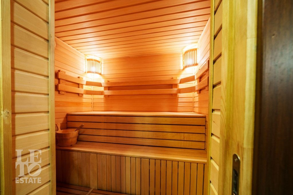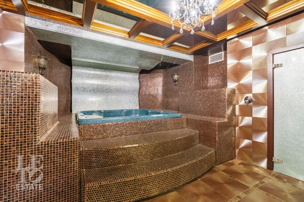На цокольном этаже оборудована спа-зона с гидромассажным бассейном, сауной и купелью.