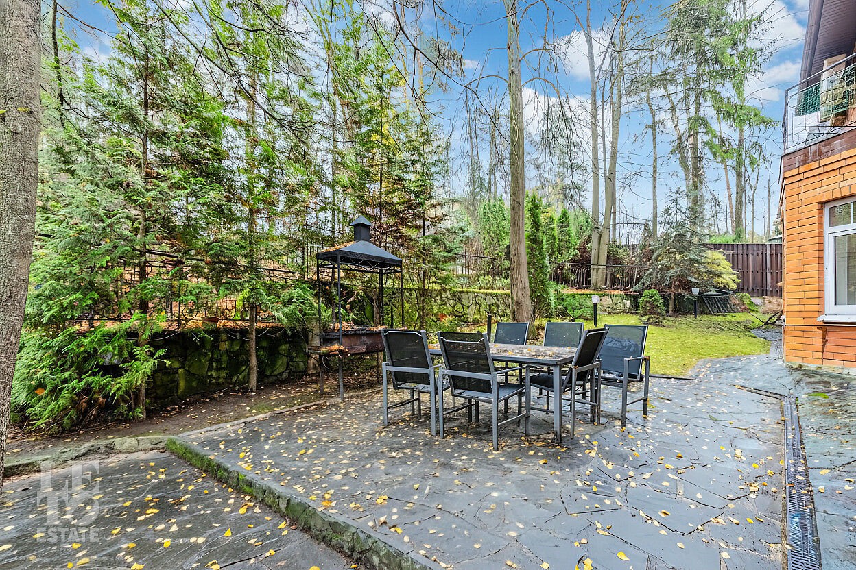 Многоуровневый участок площадью 8 соток, позволяет создать уникальный ландшафтный дизайн. Дополнительно сделана мангальная зона.