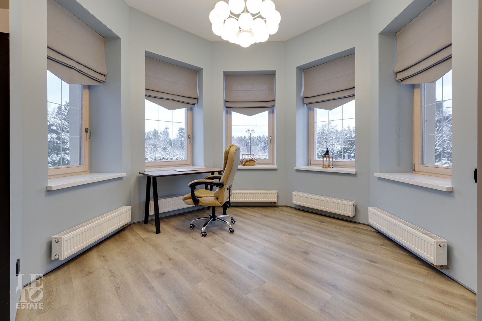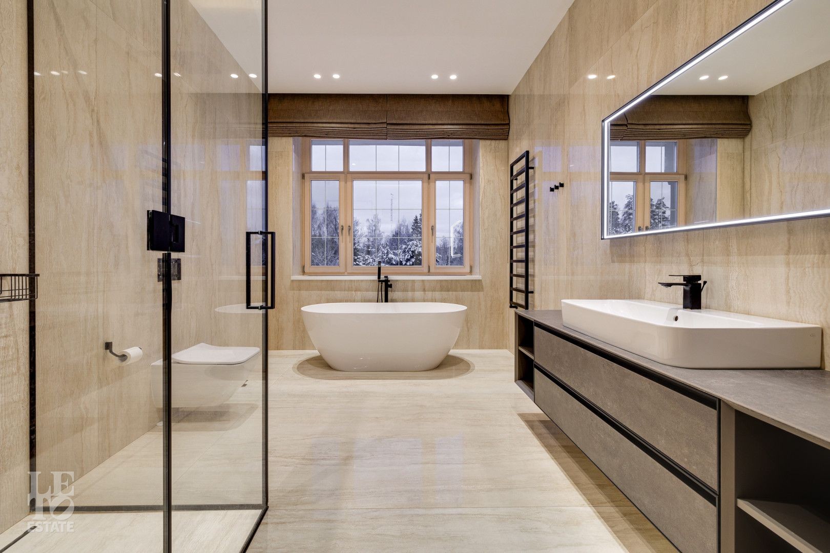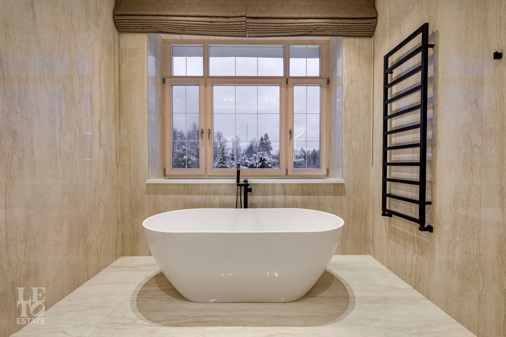Дом полностью отделан и меблирован, готов к постоянному проживанию. Интерьер выполнен в современном стиле, в светлых, мягких пастельных тонах, с использованием декоративных элементов из дерева.